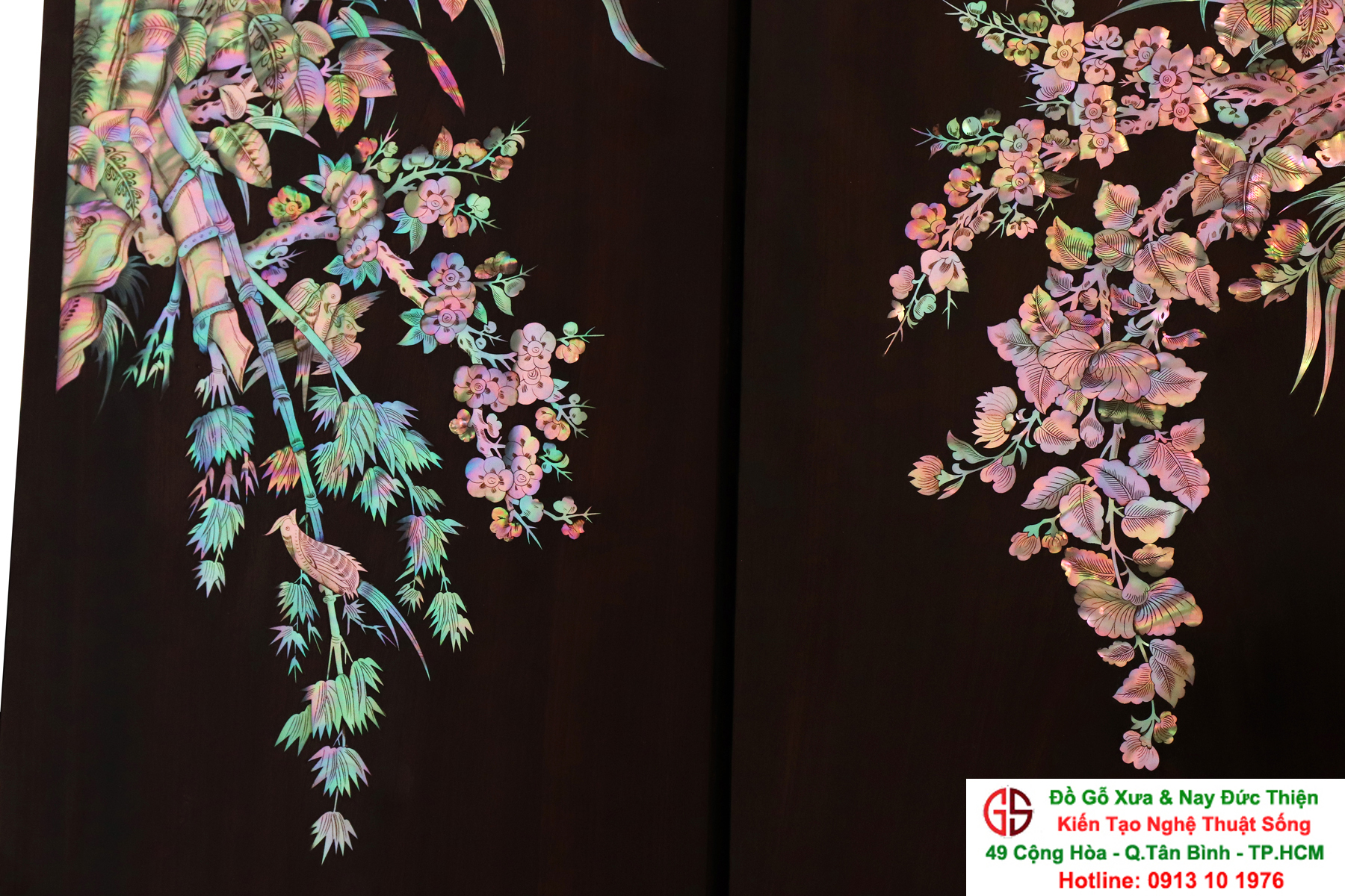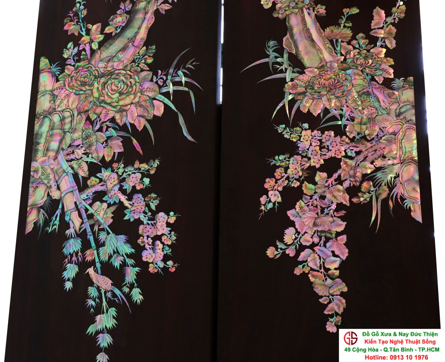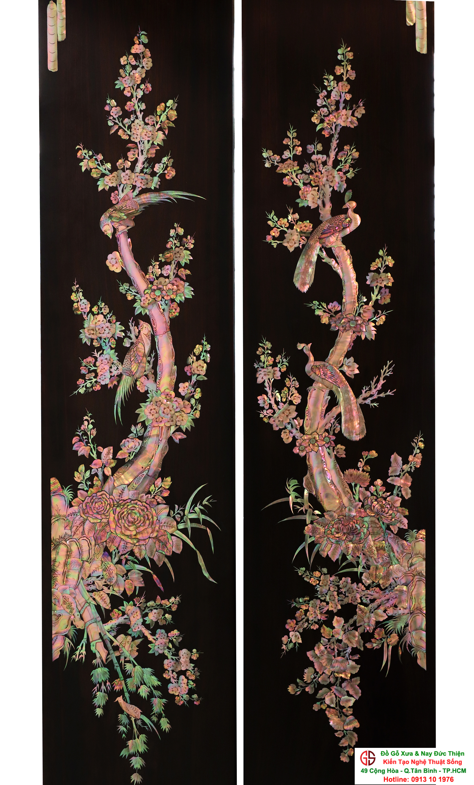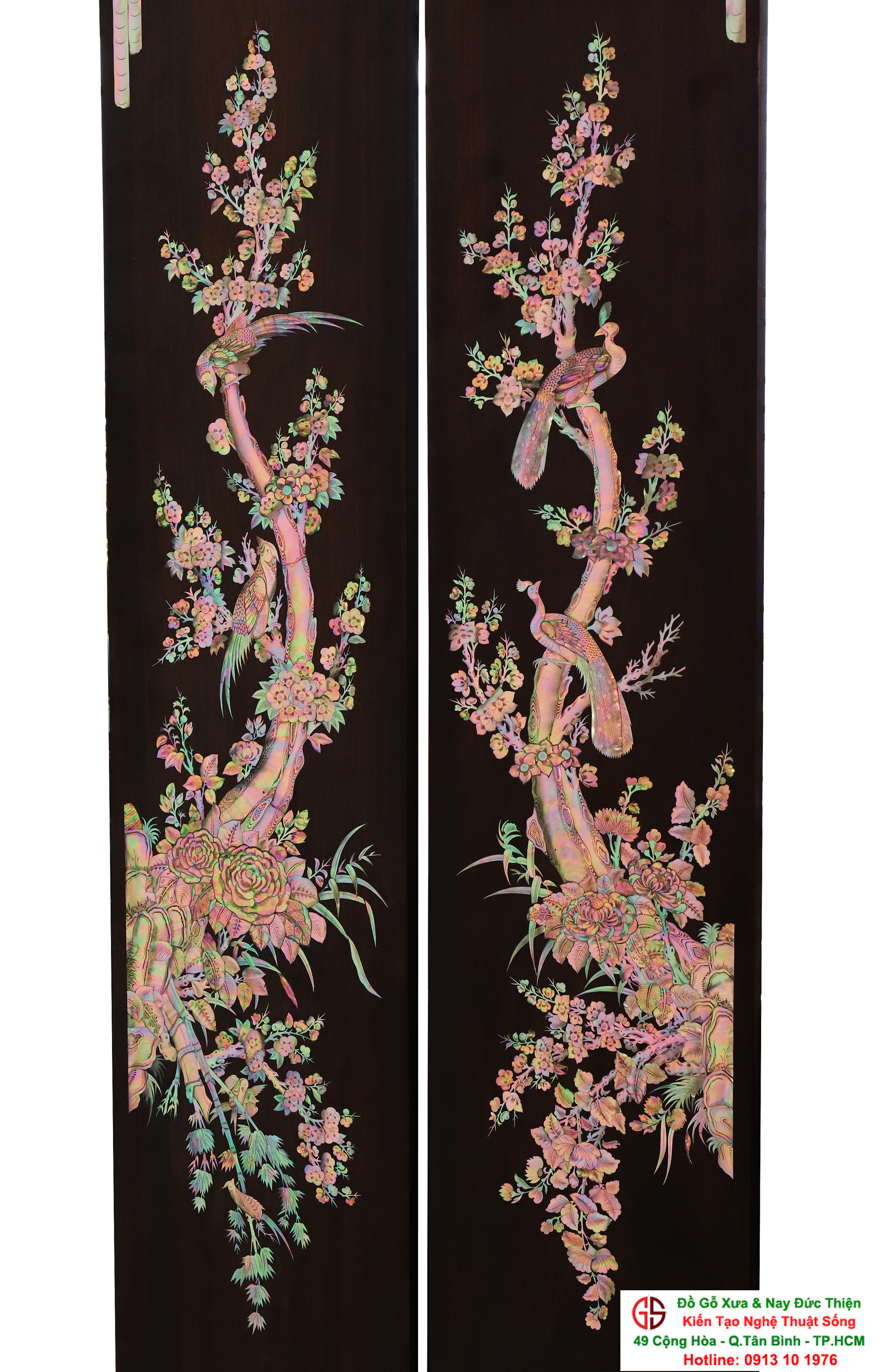 Với những người yêu nghệ thuật chạm khảm xà cừ thì việc sưu tầm được một đôi câu đối khảm ốc đẹp luôn là mong ước cháy bỏng. Đồ Gỗ Xưa & Nay Đức Thiện xin giới thiệu tới quý khách hàng một trân phẩm đỉnh cao của nghệ thuật khảm ốc xà cừ : Đôi câu đối khảm ốc đỏ lửa vàng chanh, xanh ngọc tích hồng công, mai điểu.