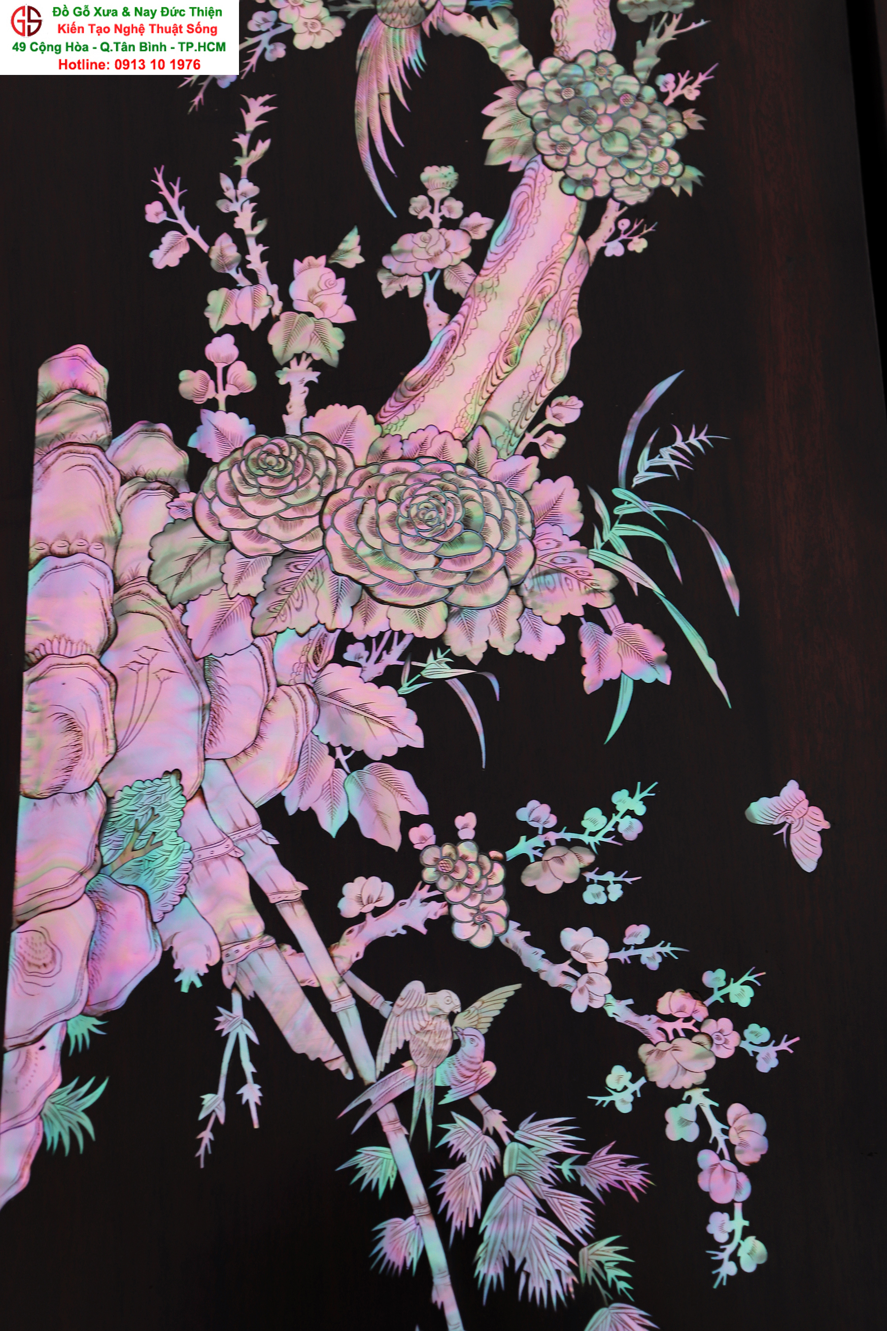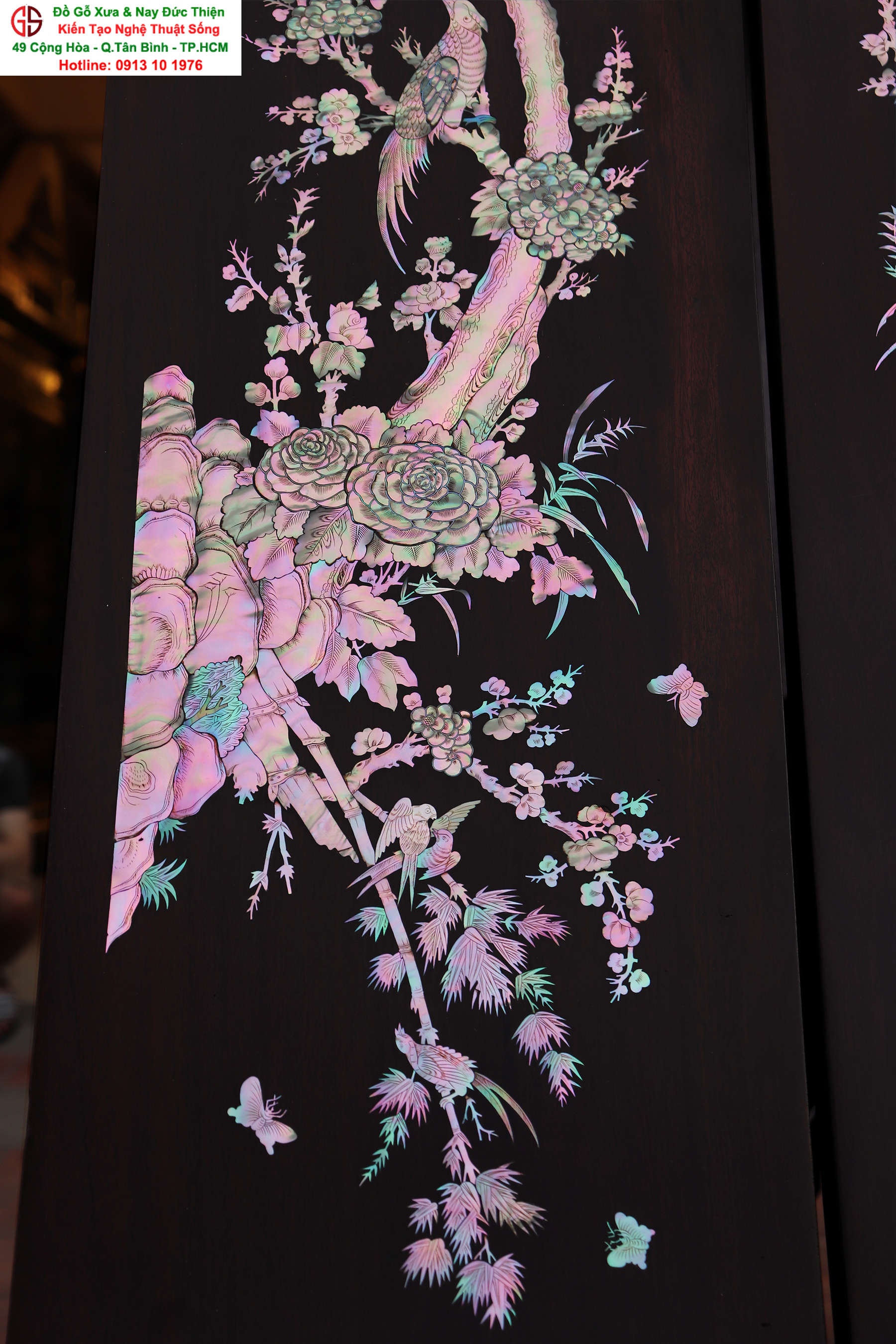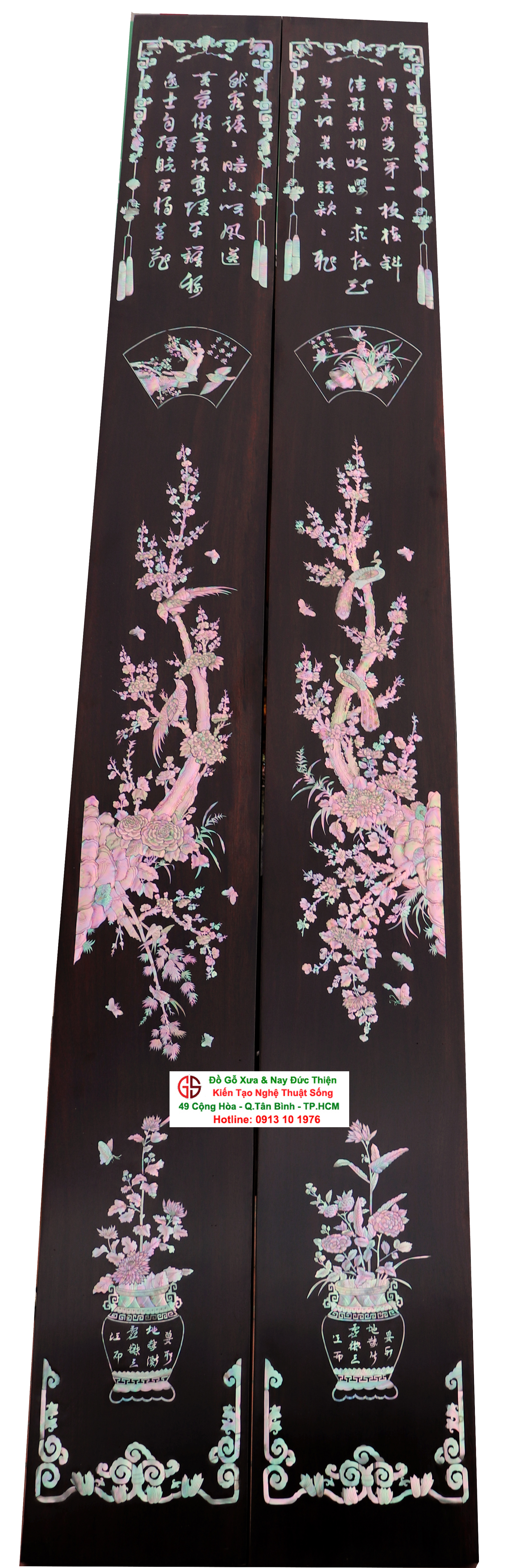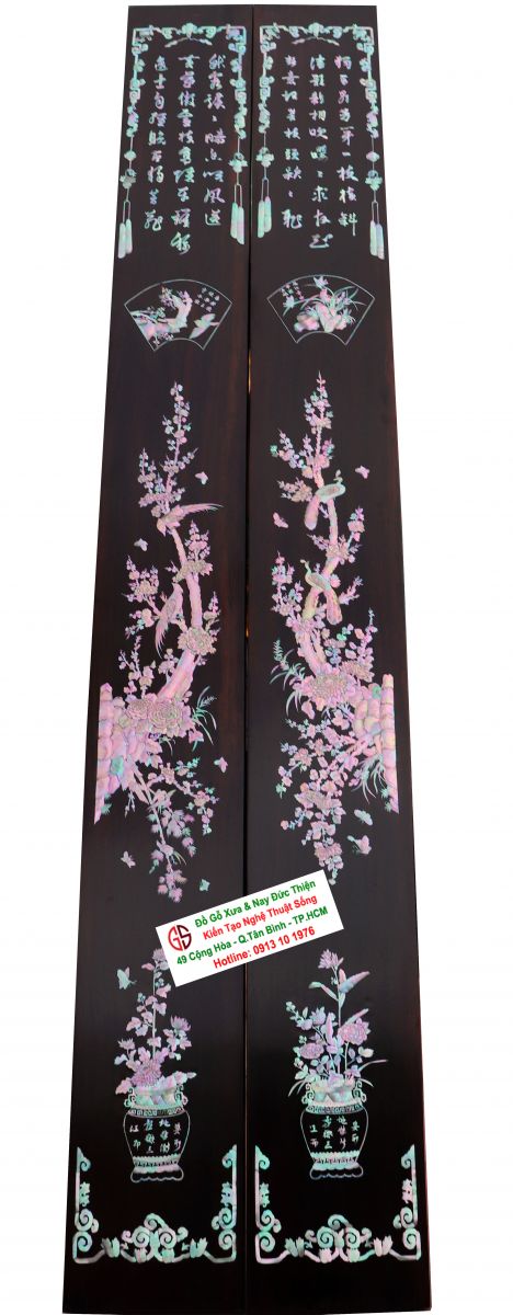 Hoành phi câu đối là thú chơi của các bậc vương giả từ xưa tới nay. Với những người yêu nghệ thuật chạm khảm xà cừ thì việc sưu tầm được một đôi câu đối khảm ốc đẹp luôn là mong ước cháy bỏng. Đồ Gỗ Xưa & Nay Đức Thiện xin giới thiệu tới quý khách hàng một trân phẩm đỉnh cao của nghệ thuật khảm ốc xà cừ : Đôi câu đối khảm ốc đỏ lửa vàng chanh, xanh ngọc tích hồng công, mai điểu.
