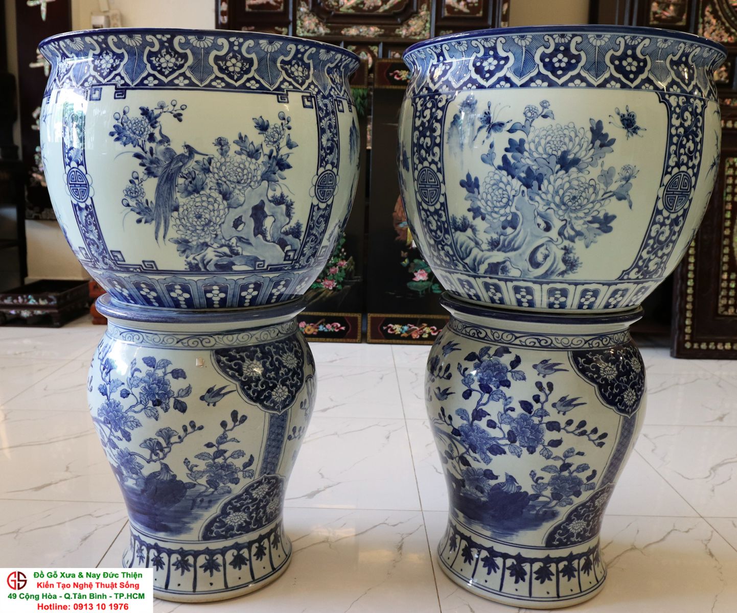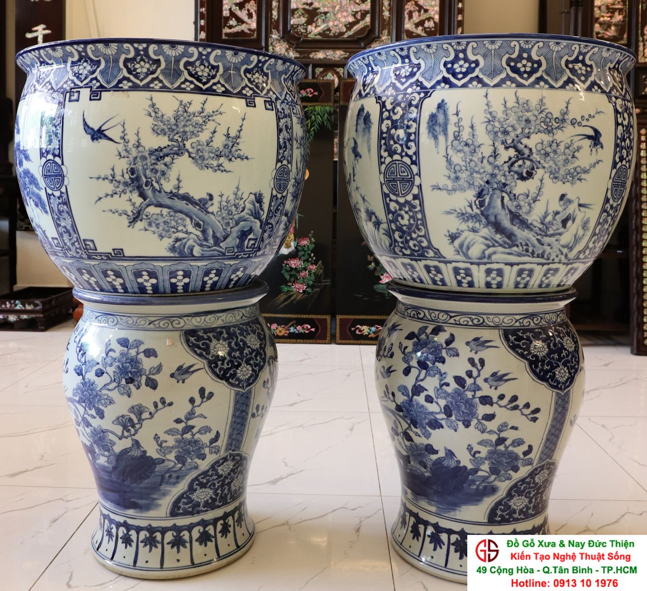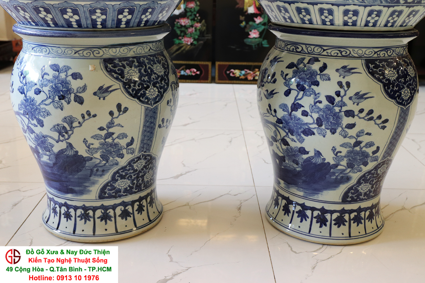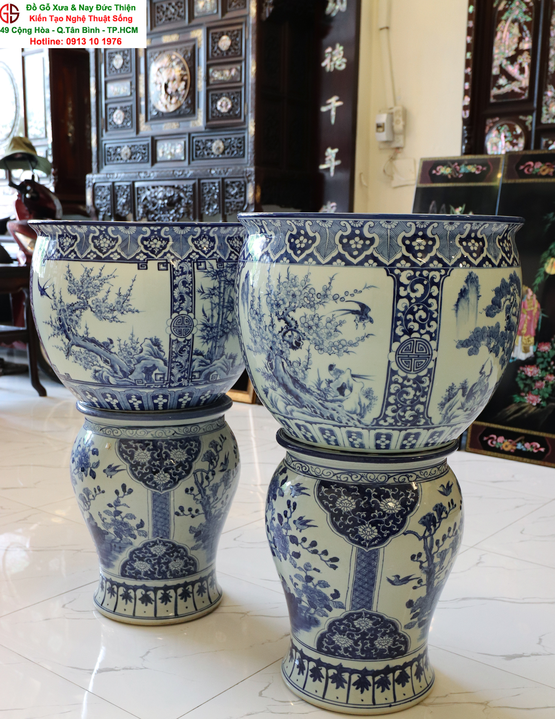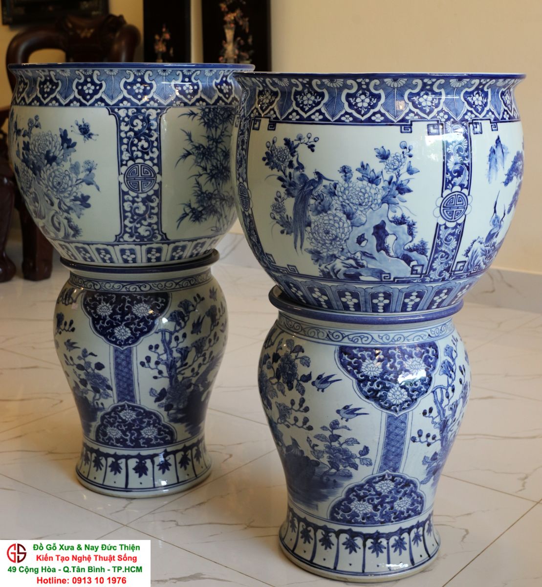 Thông tin sản phẩm: - Kích thước: đôi thống có chiều cao 42 cm x đường kính 50 cm. Đôi đôn có chiều cao 47 cm x đường kính 35 cm. Xuất sứ: Đôi Thống có nguồn gốc Gốm Sứ Bát Tràng. Đôi Đôn thuộc dòng gốm sứ Giang Tây. ________________________________________________________________________________________