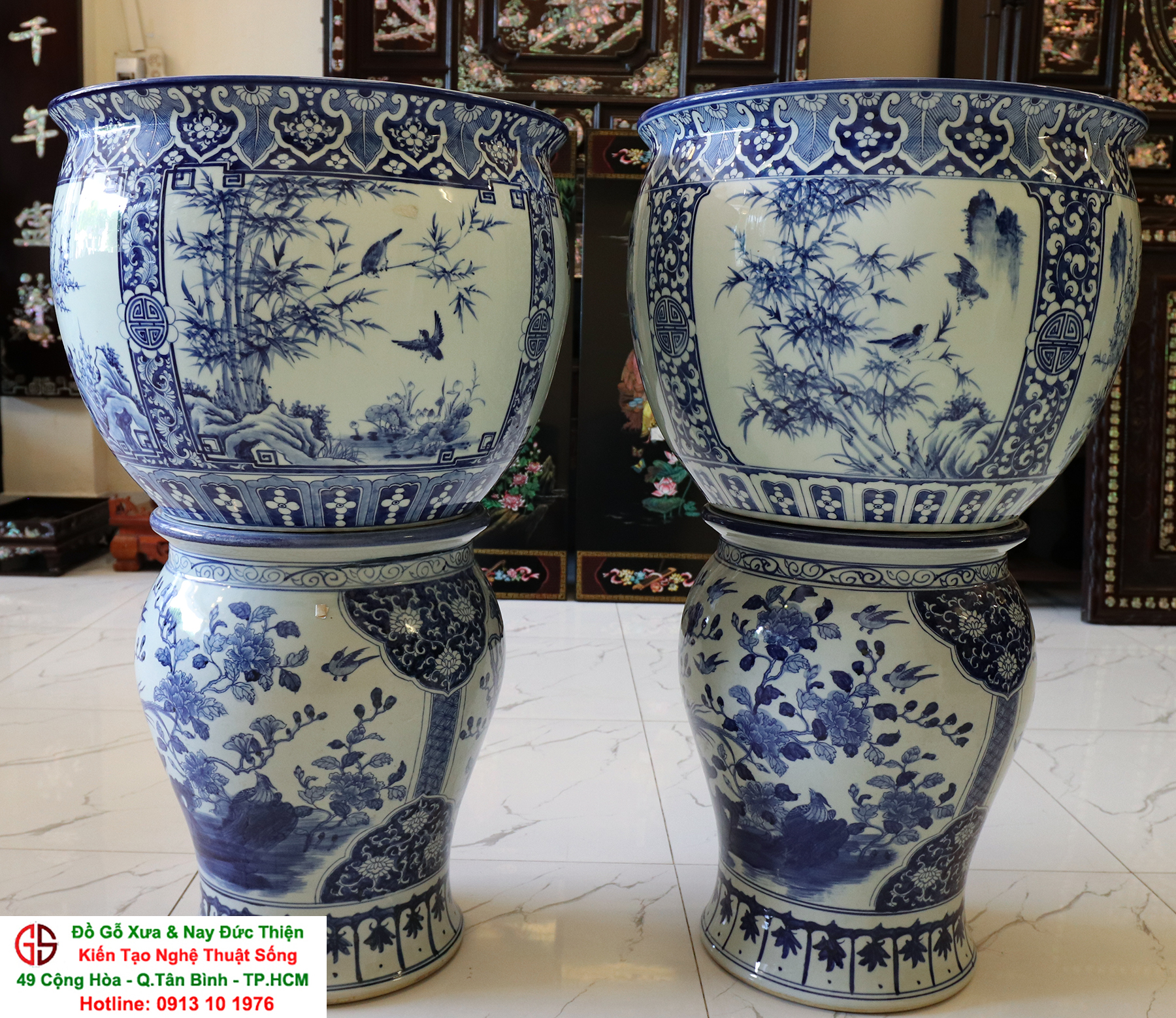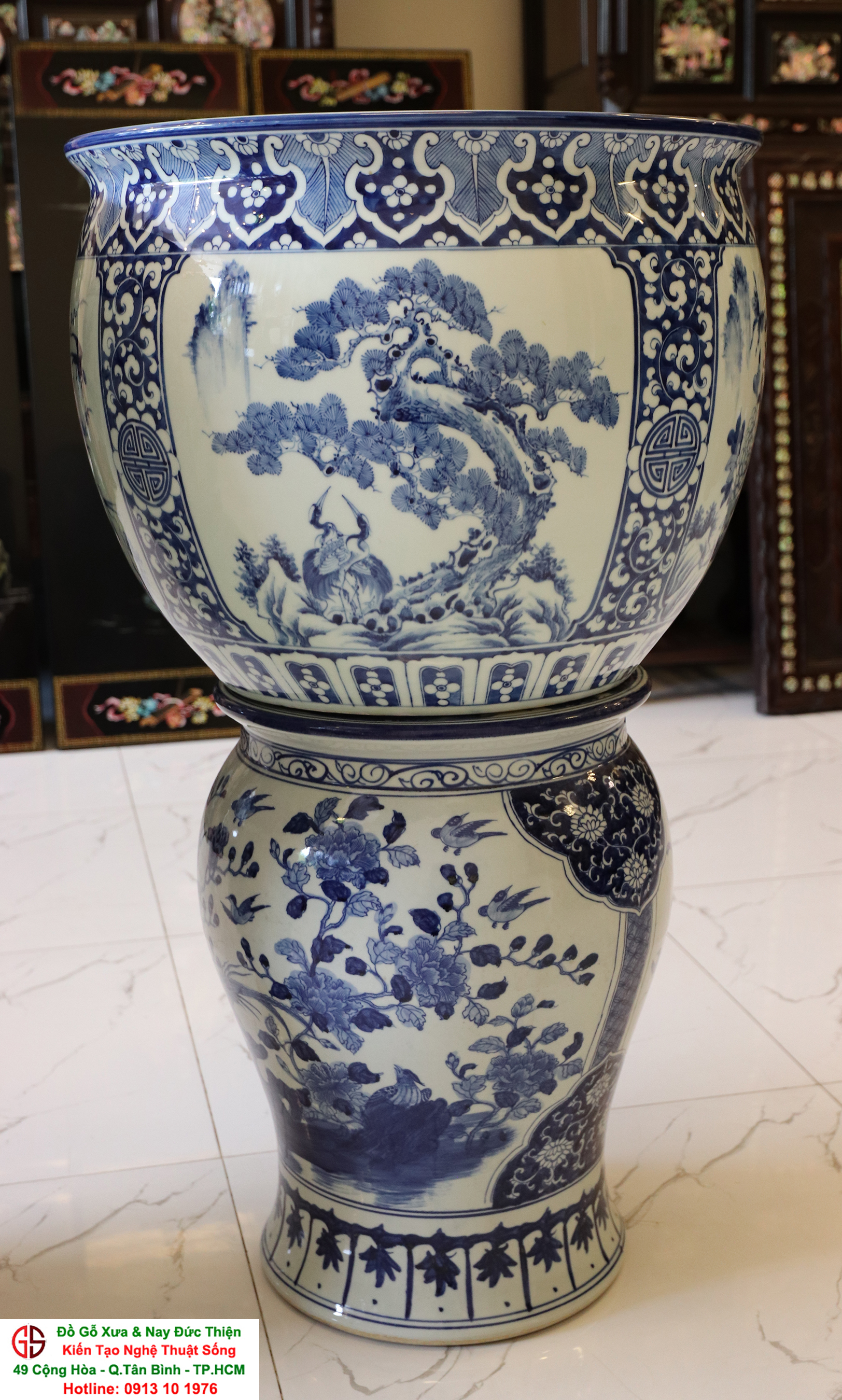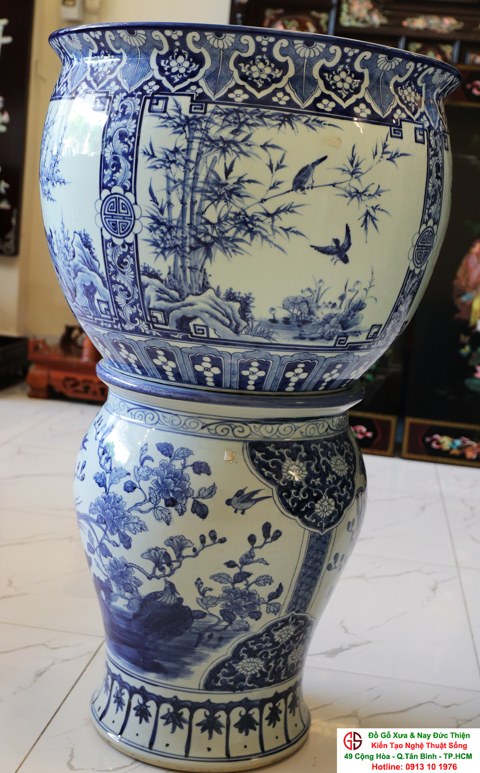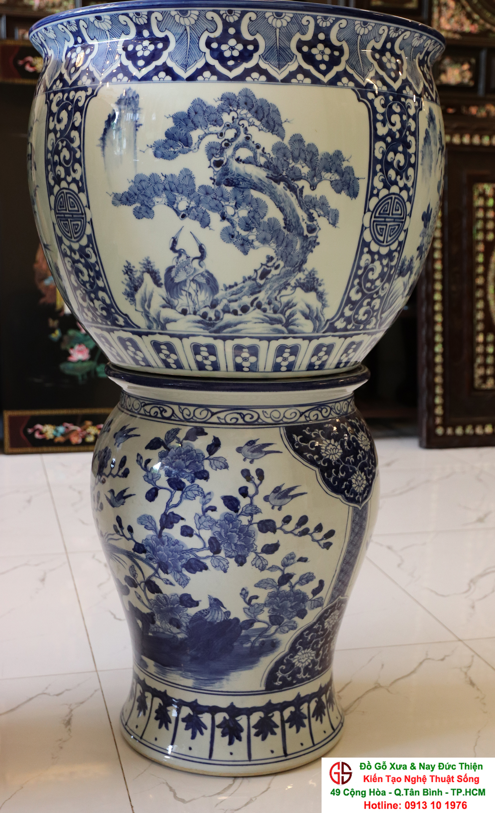 Thông tin sản phẩm: - Kích thước: đôi thống có chiều cao 42 cm x đường kính 50 cm. Đôi đôn có chiều cao 47 cm x đường kính 35 cm. Xuất sứ: Đôi Thống có nguồn gốc Gốm Sứ Bát Tràng. Đôi Đôn thuộc dòng gốm sứ Giang Tây. ________________________________________________________________________________________