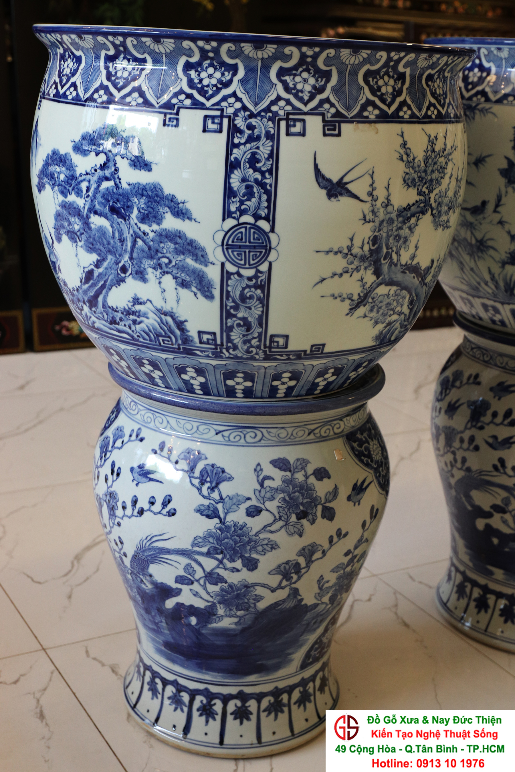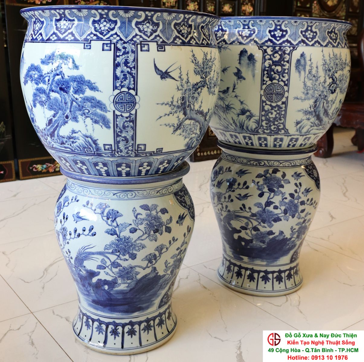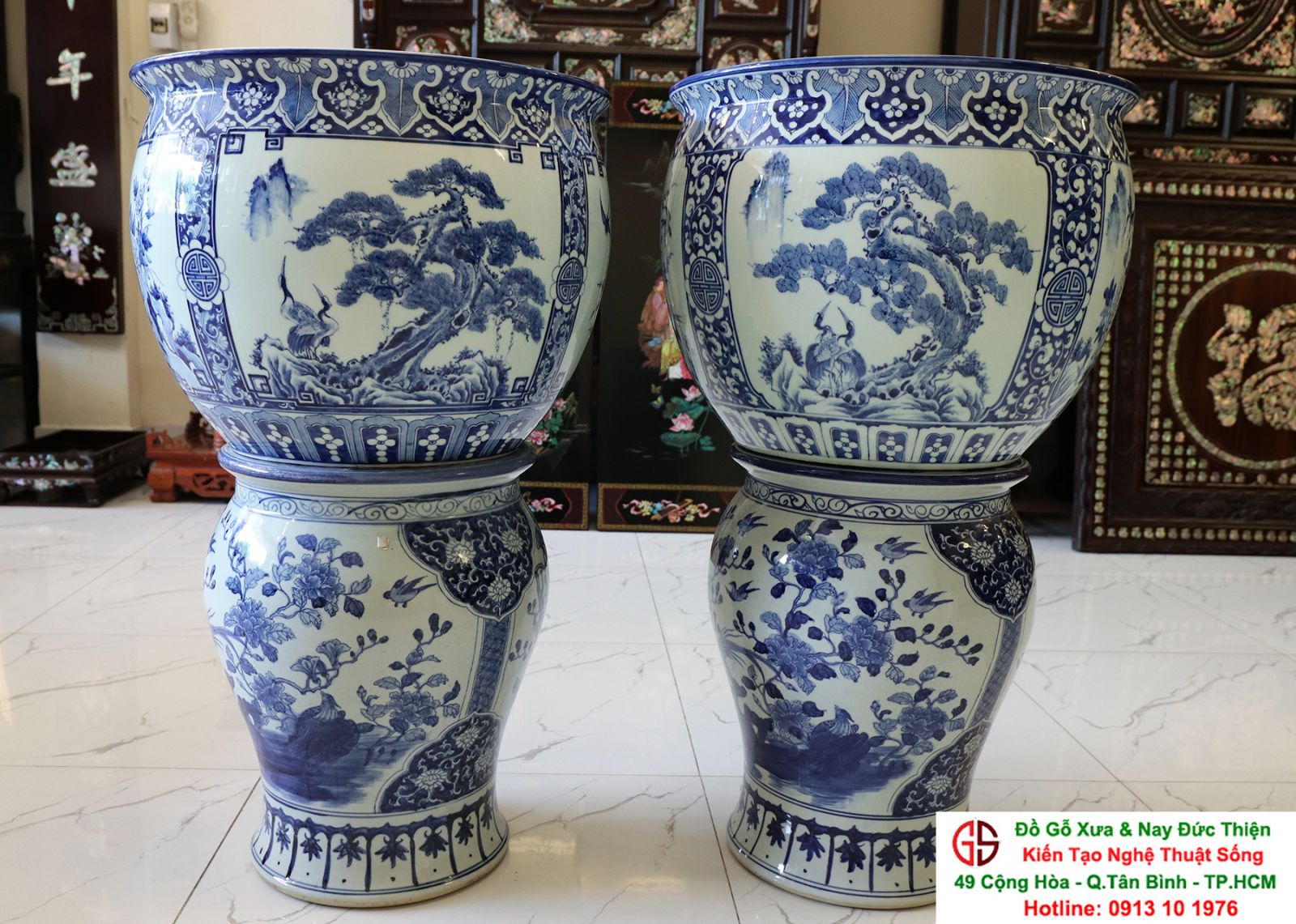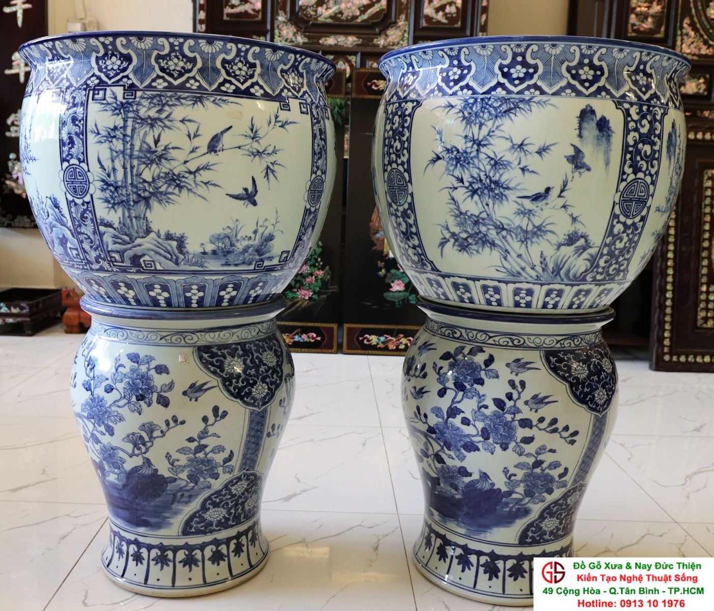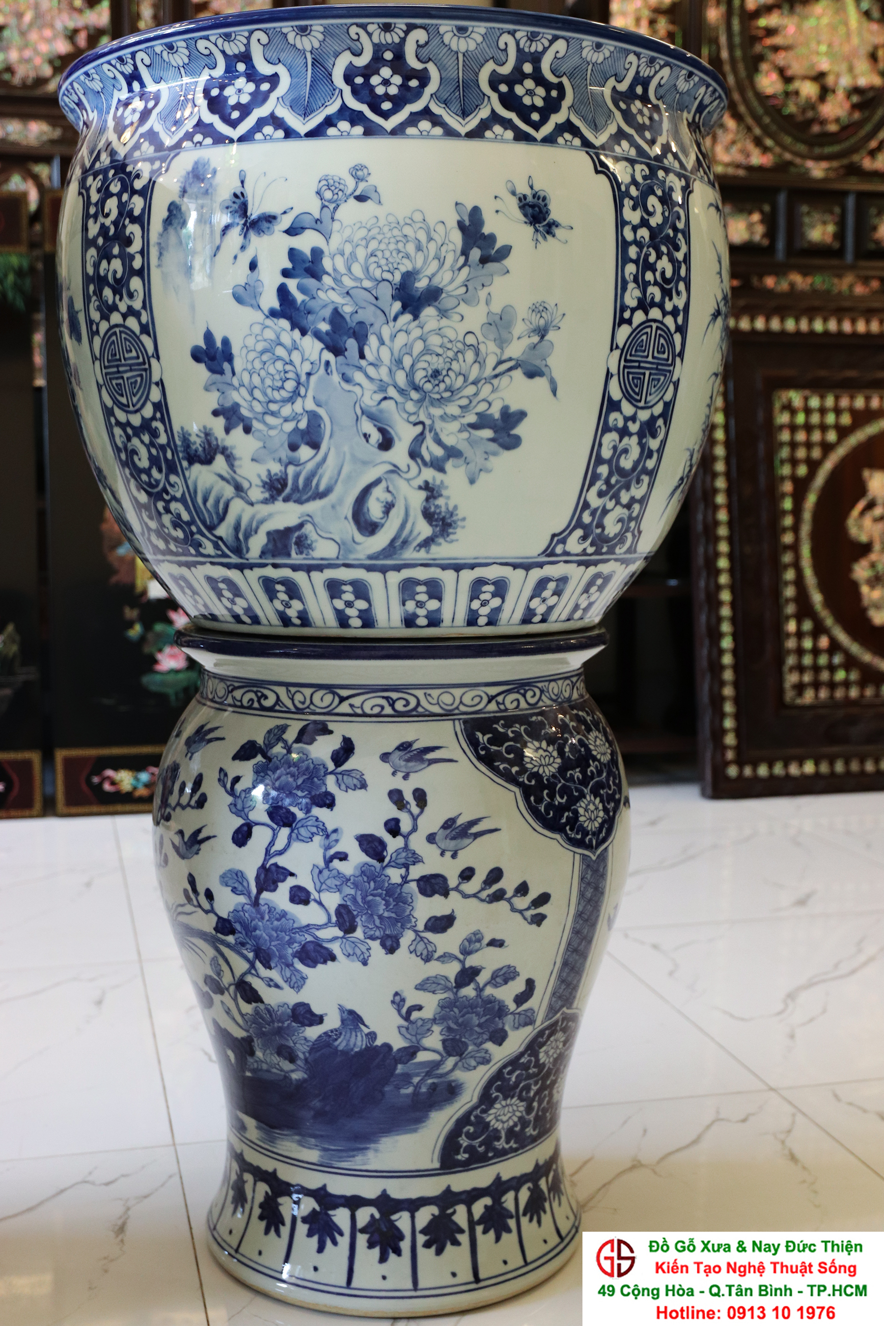 Thông tin sản phẩm: - Kích thước: đôi thống có chiều cao 42 cm x đường kính 50 cm. Đôi đôn có chiều cao 47 cm x đường kính 35 cm. Xuất sứ: Đôi Thống có nguồn gốc Gốm Sứ Bát Tràng. Đôi Đôn thuộc dòng gốm sứ Giang Tây. ________________________________________________________________________________________