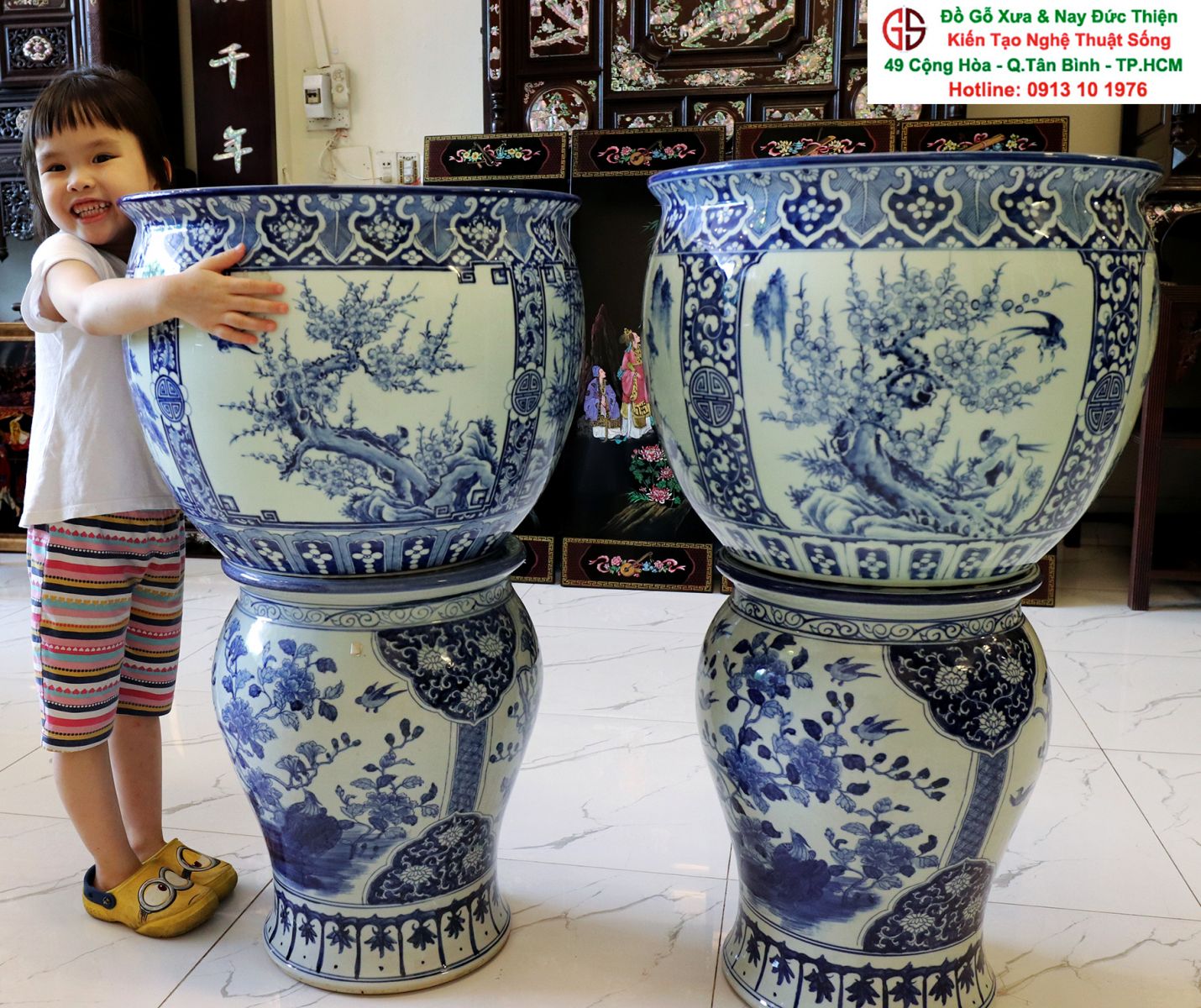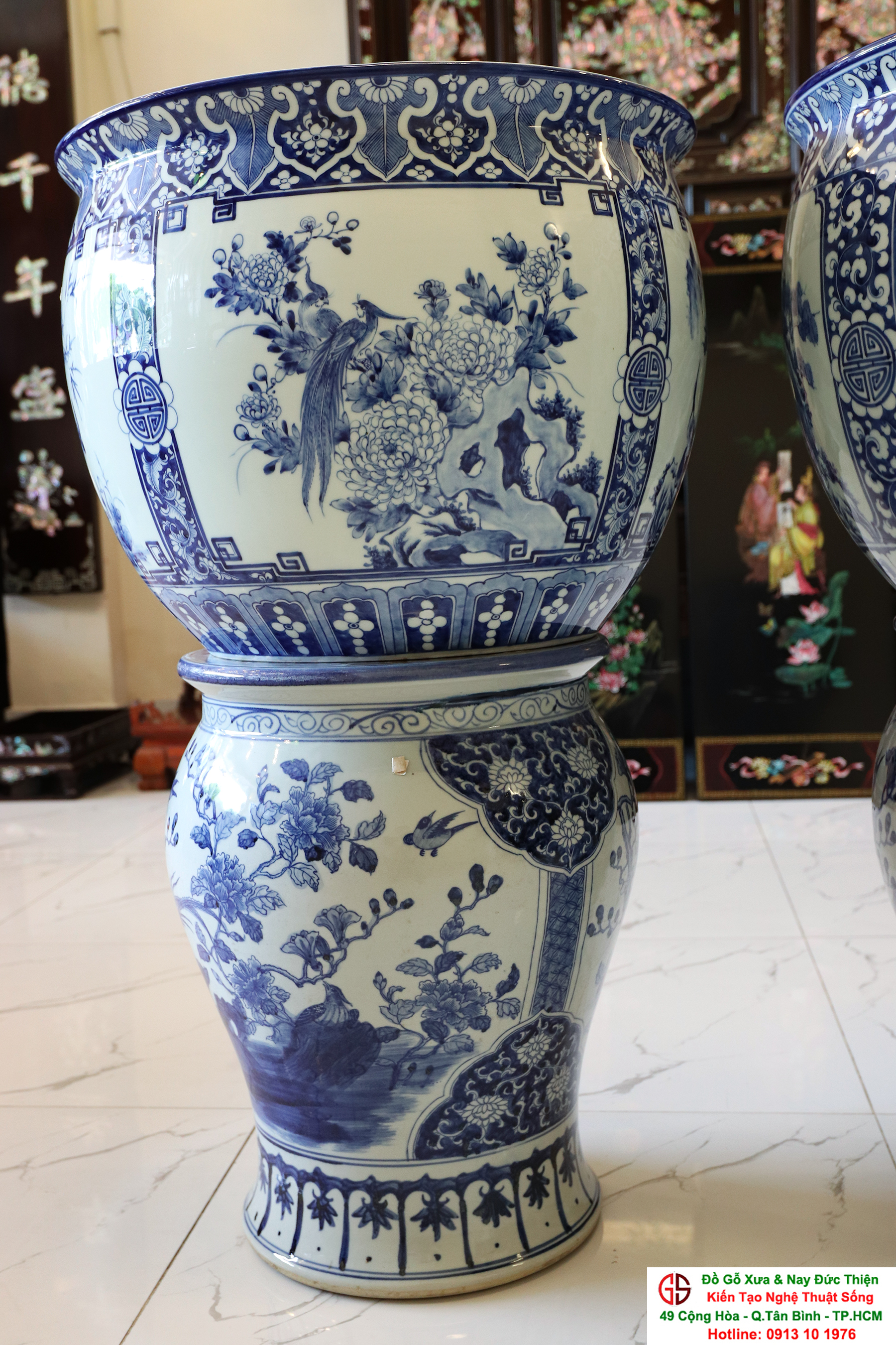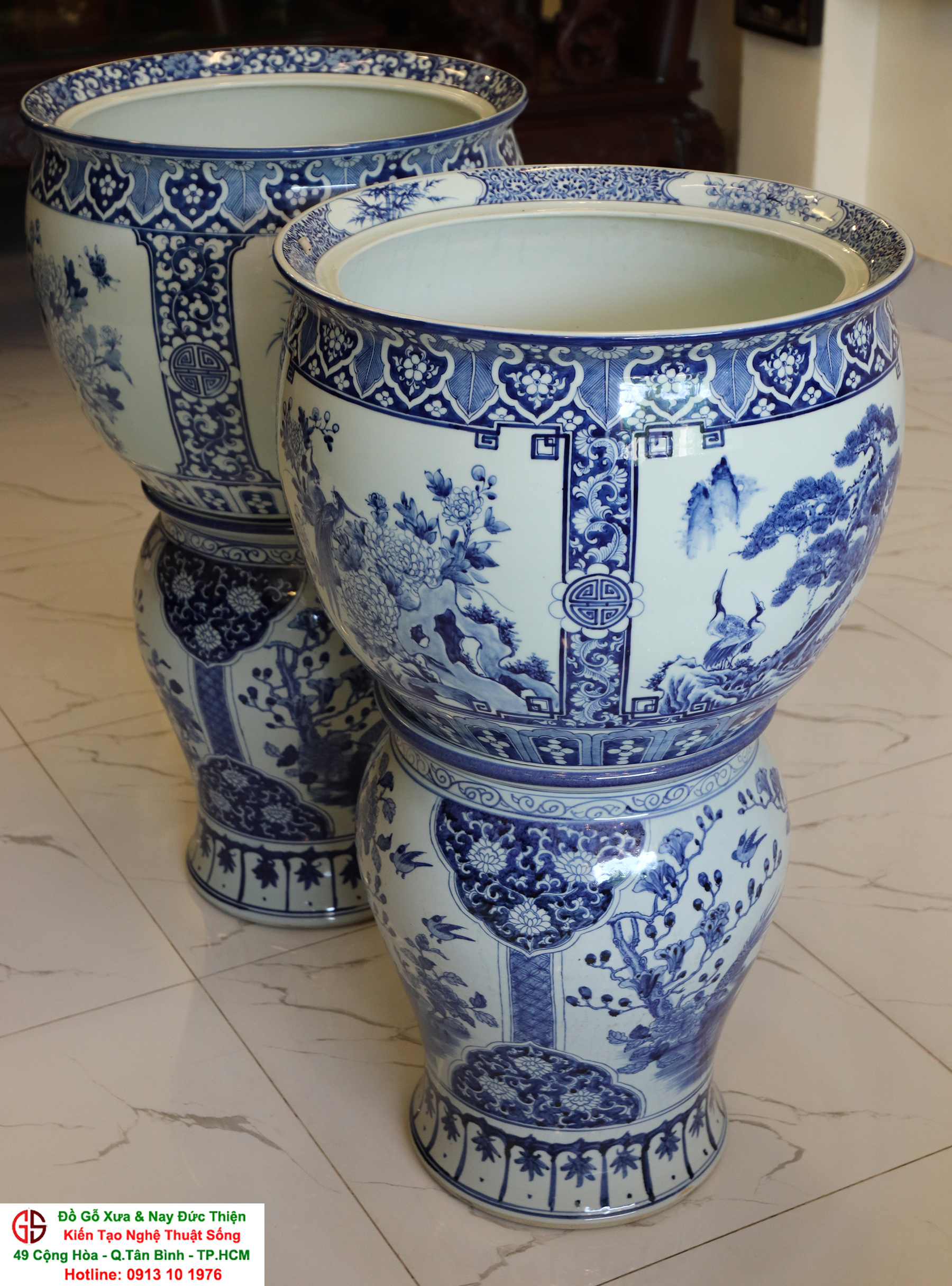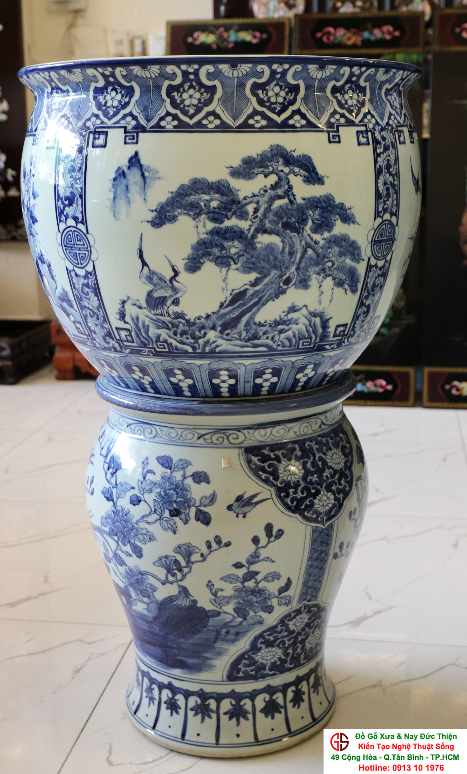 Thông tin sản phẩm: - Kích thước: đôi thống có chiều cao 42 cm x đường kính 50 cm. Đôi đôn có chiều cao 47 cm x đường kính 35 cm. Xuất sứ: Đôi Thống có nguồn gốc Gốm Sứ Bát Tràng. Đôi Đôn thuộc dòng gốm sứ Giang Tây. ________________________________________________________________________________________