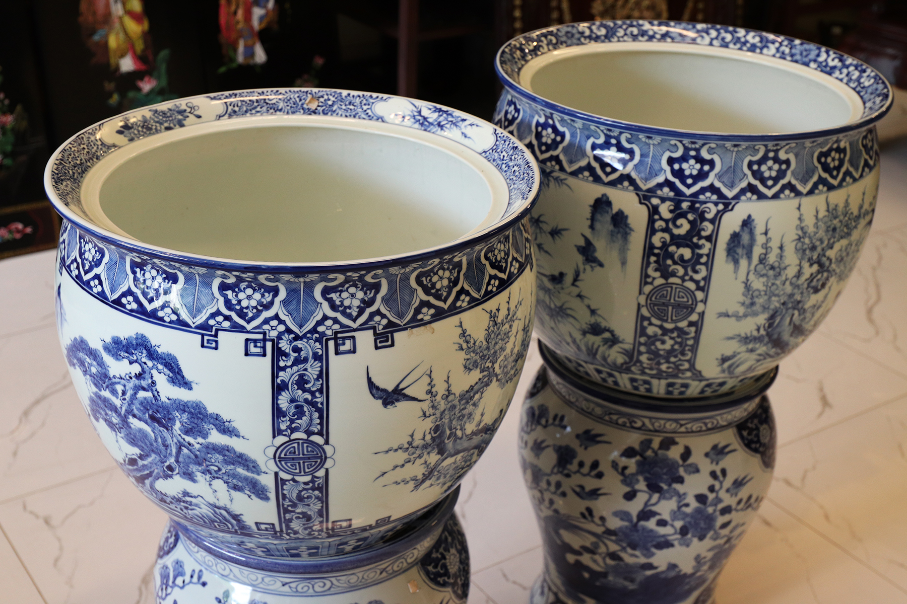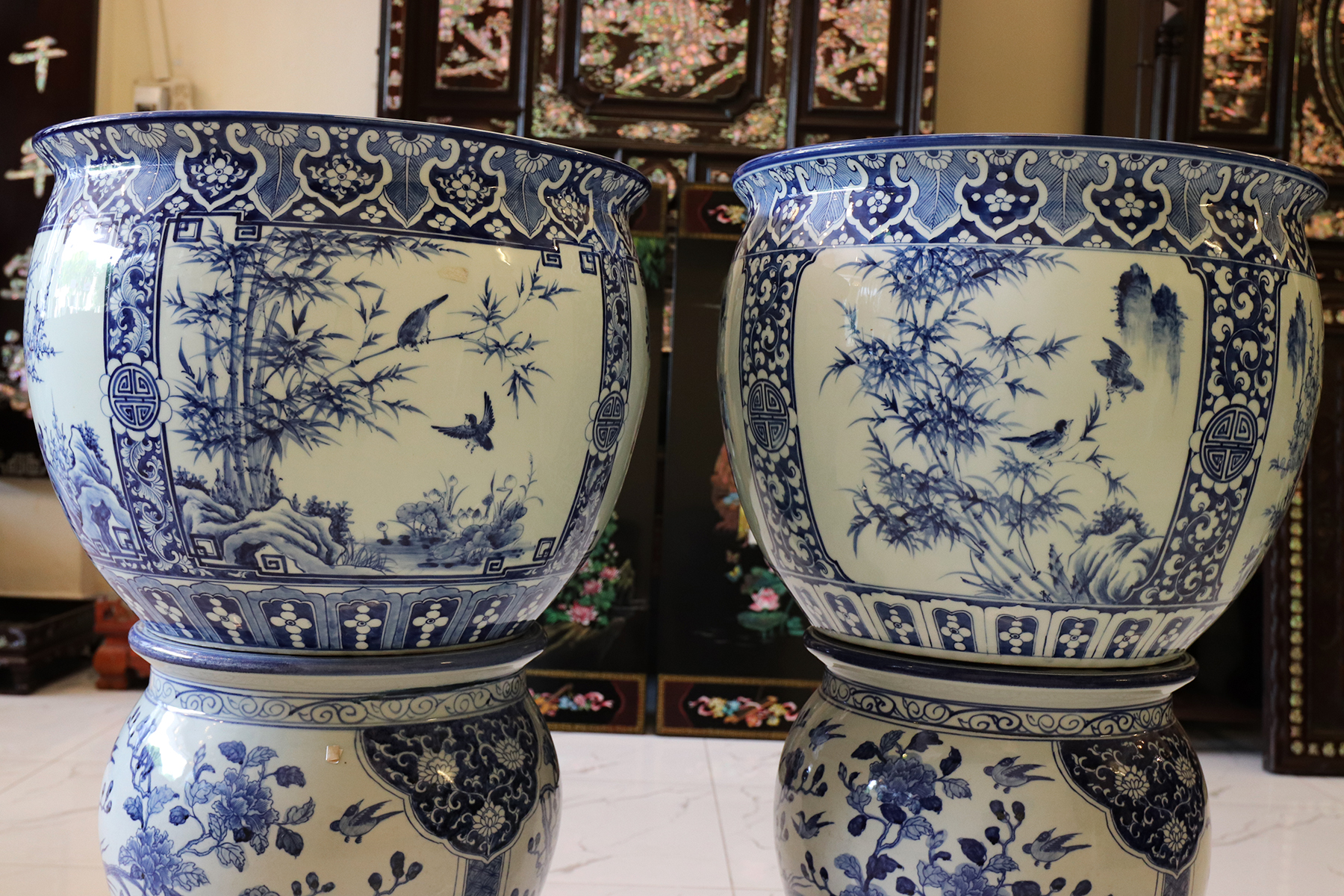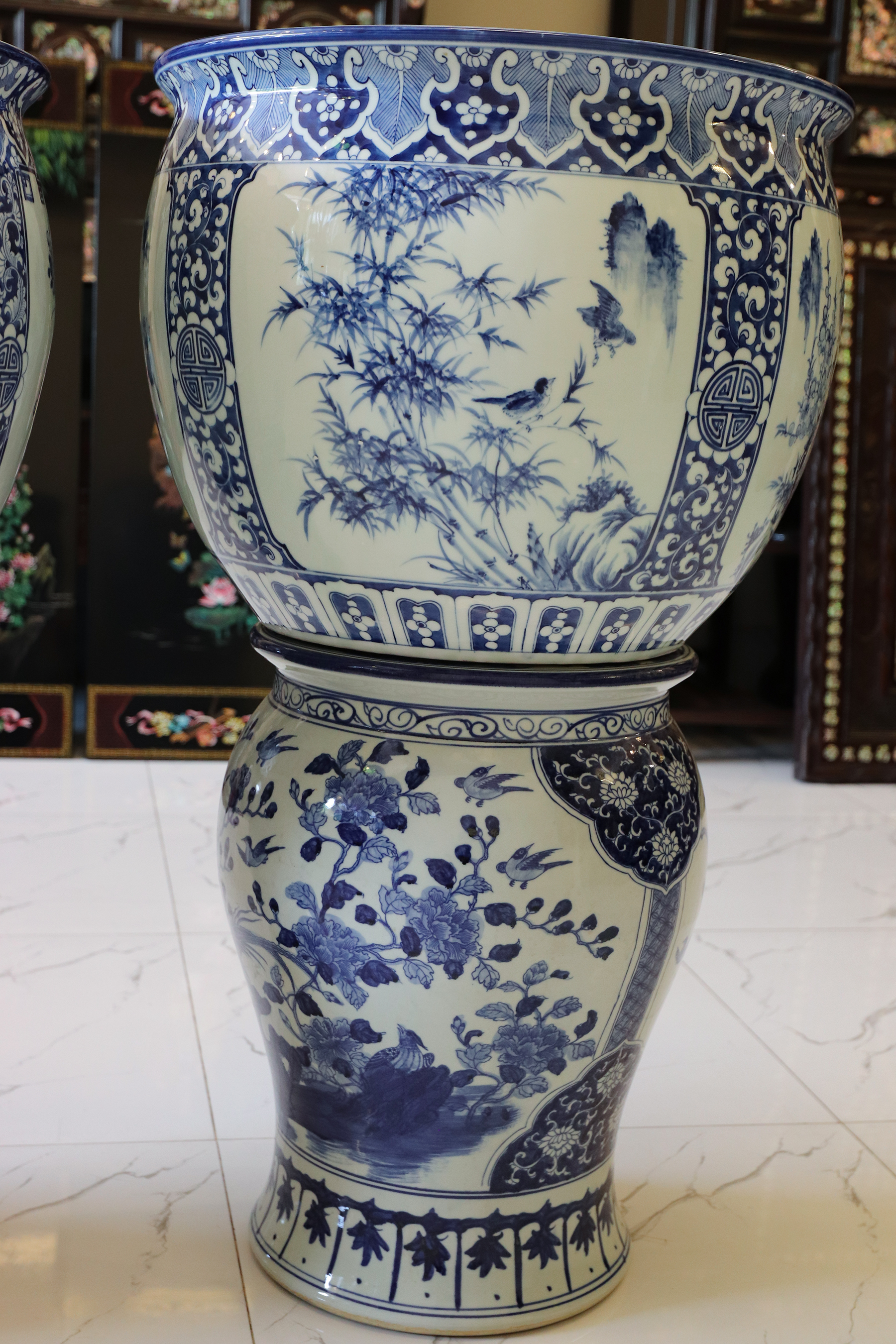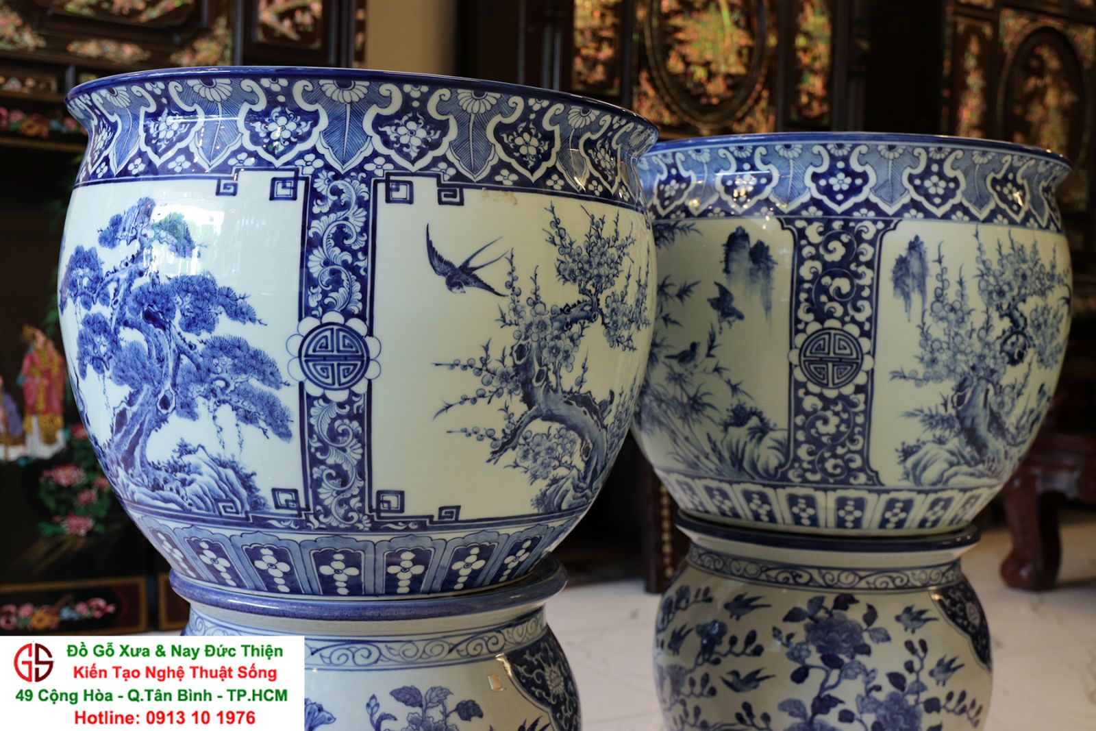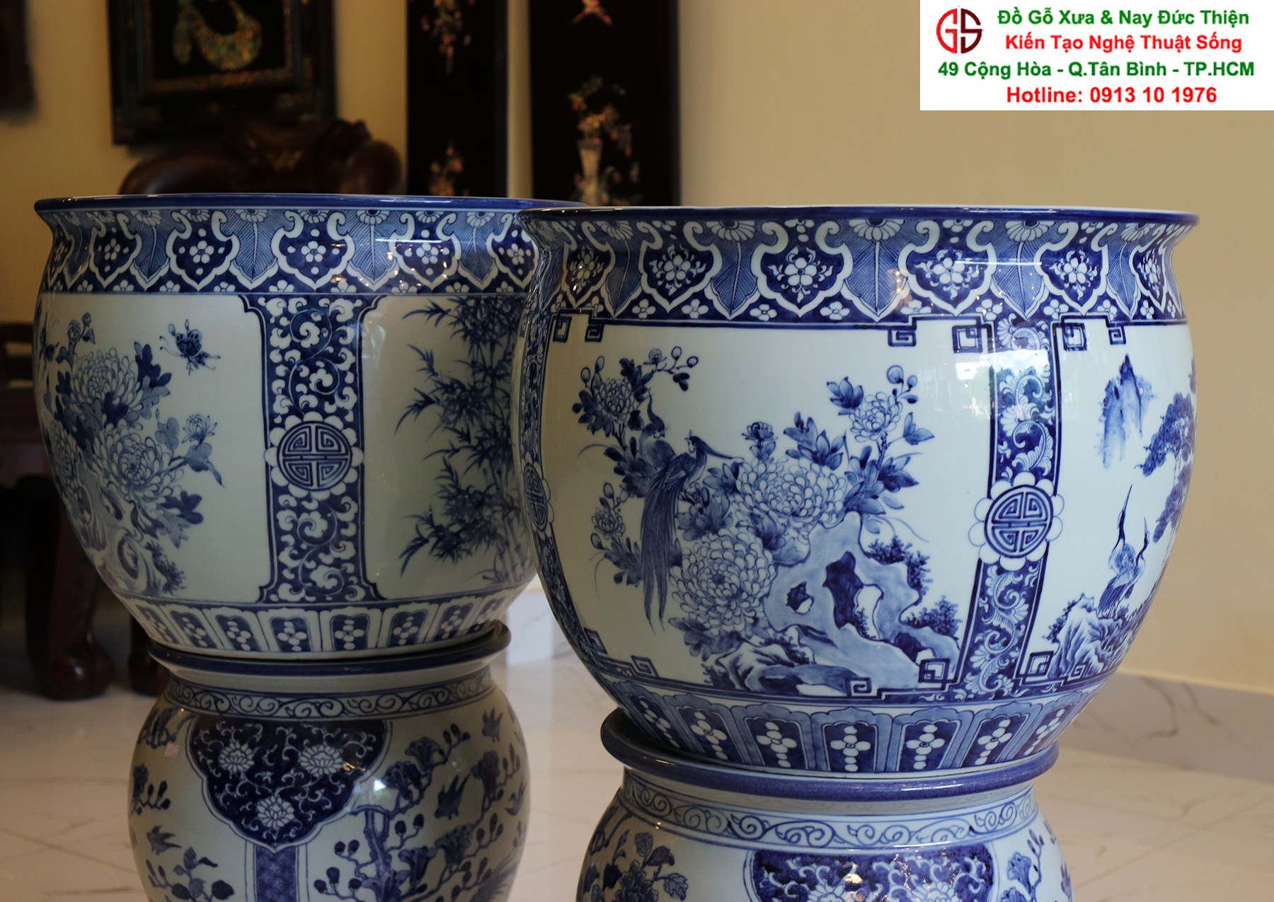 Thông tin sản phẩm: - Kích thước: đôi thống có chiều cao 42 cm x đường kính 50 cm. Đôi đôn có chiều cao 47 cm x đường kính 35 cm. Xuất sứ: Đôi Thống có nguồn gốc Gốm Sứ Bát Tràng. Đôi Đôn thuộc dòng gốm sứ Giang Tây. ________________________________________________________________________________________