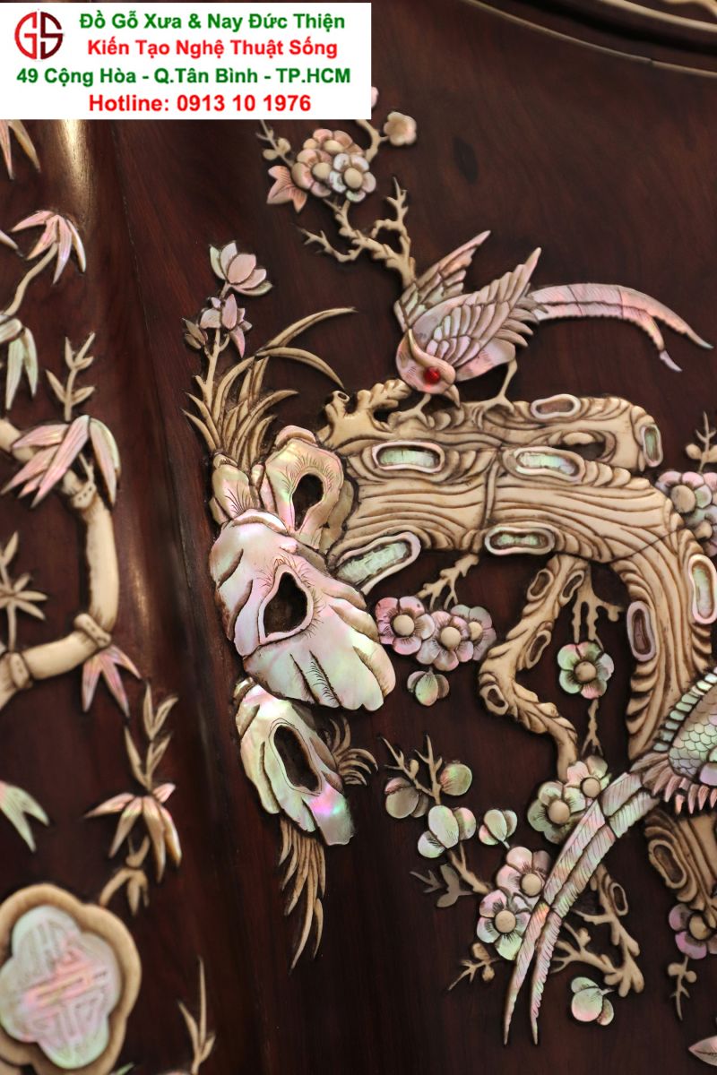+ Chất liệu: Gỗ Cẩm Lai Việt + Khảm Nổi Ốc xà cừ