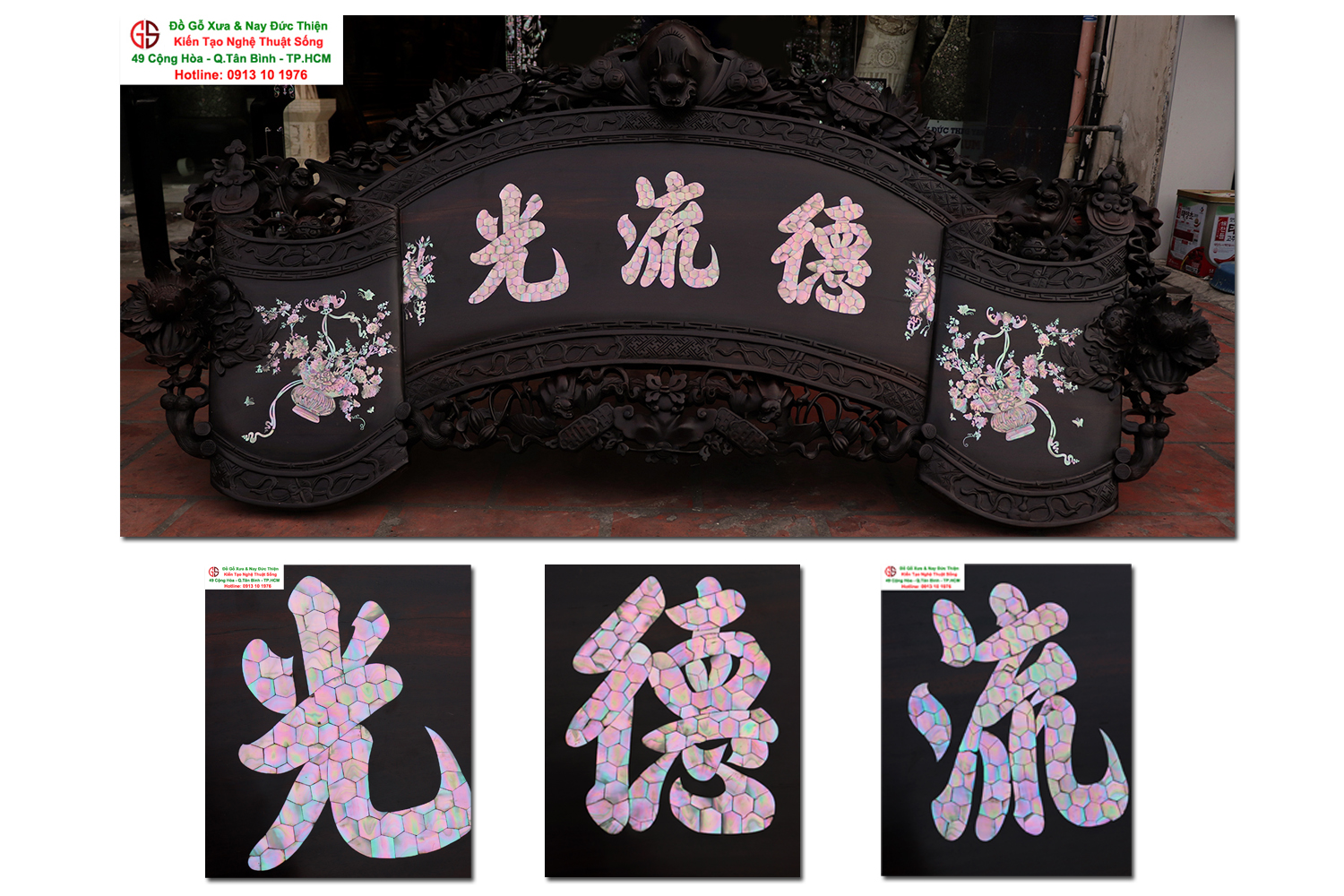 - Câu đối đại tự , cuốn thư: thiếp vàng cẩn ốc, câu đối thiếp vàng, câu đối cẩn ốc xà cừ, , đại tự cẩn ốc, đại tự thiếp vàng, đại tự phúc lộc thọ, đại tự lá sen, đại tự cổ, đại tự đức lưu quang, cuốn thư phượng tha thư.