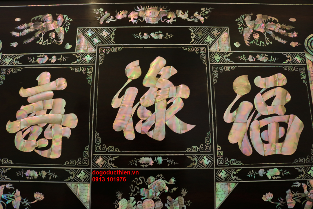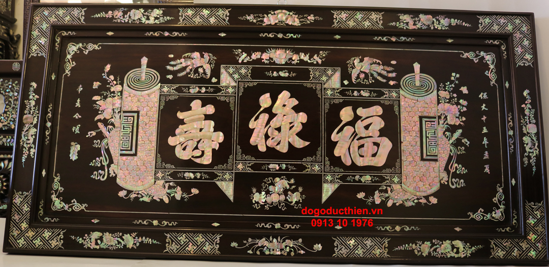 Hiểu được ý nghĩa tốt đẹp đó, hôm nay Đồ Gỗ Xưa và Nay Đức Thiện xin giới thiệu đến các bạn bức đại tự : Phúc Lộc Thọ chế tác trên chất liệu gỗ gụ cẩn bằng nguyên liệu ốc xà cừ rất đẹp,màu sắc rực rỡ,lung.