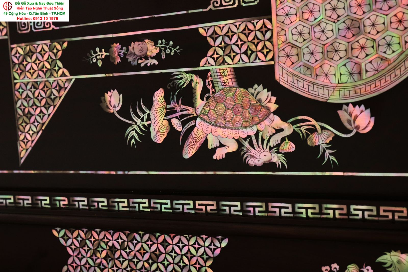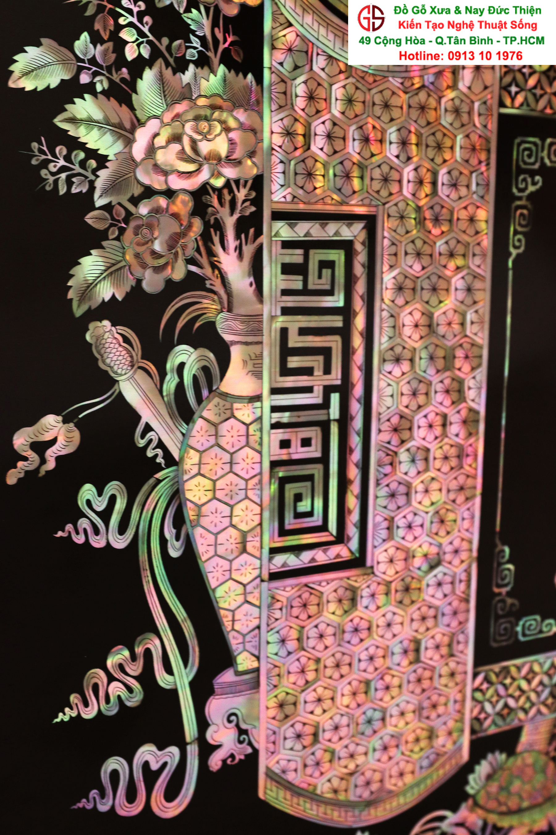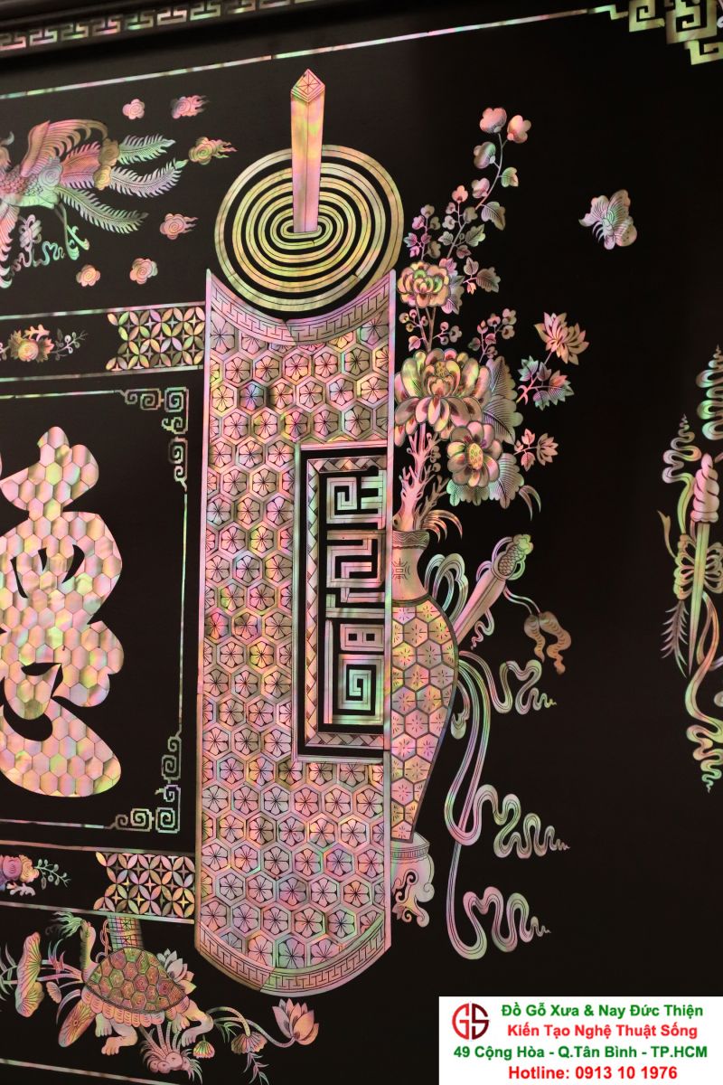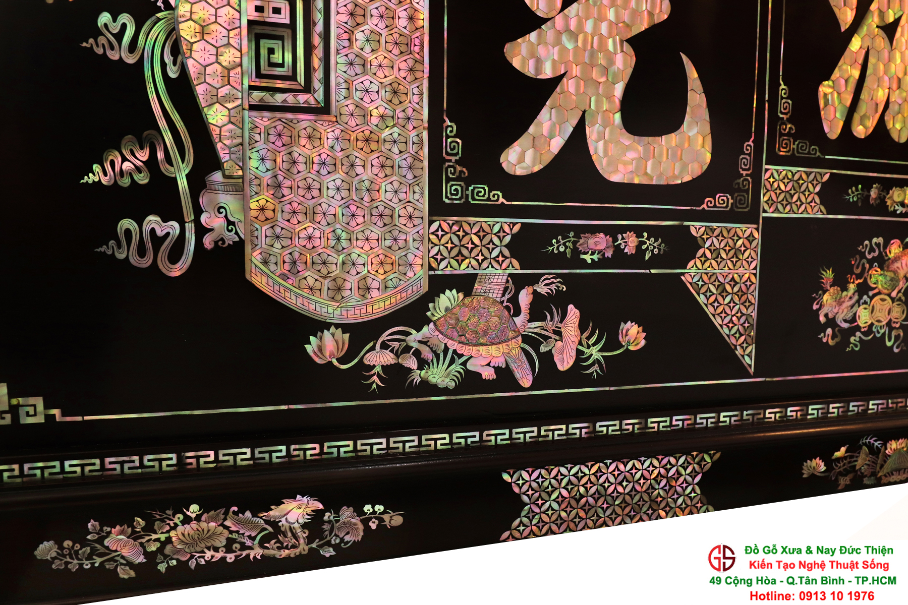 + Chất liệu: Gỗ gụ + Khảm Ốc xà cừ