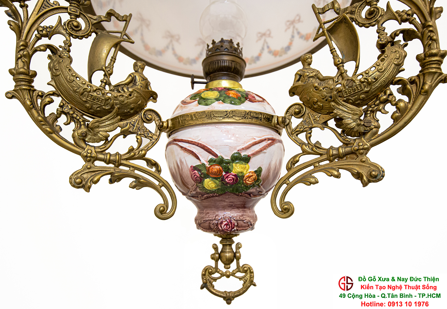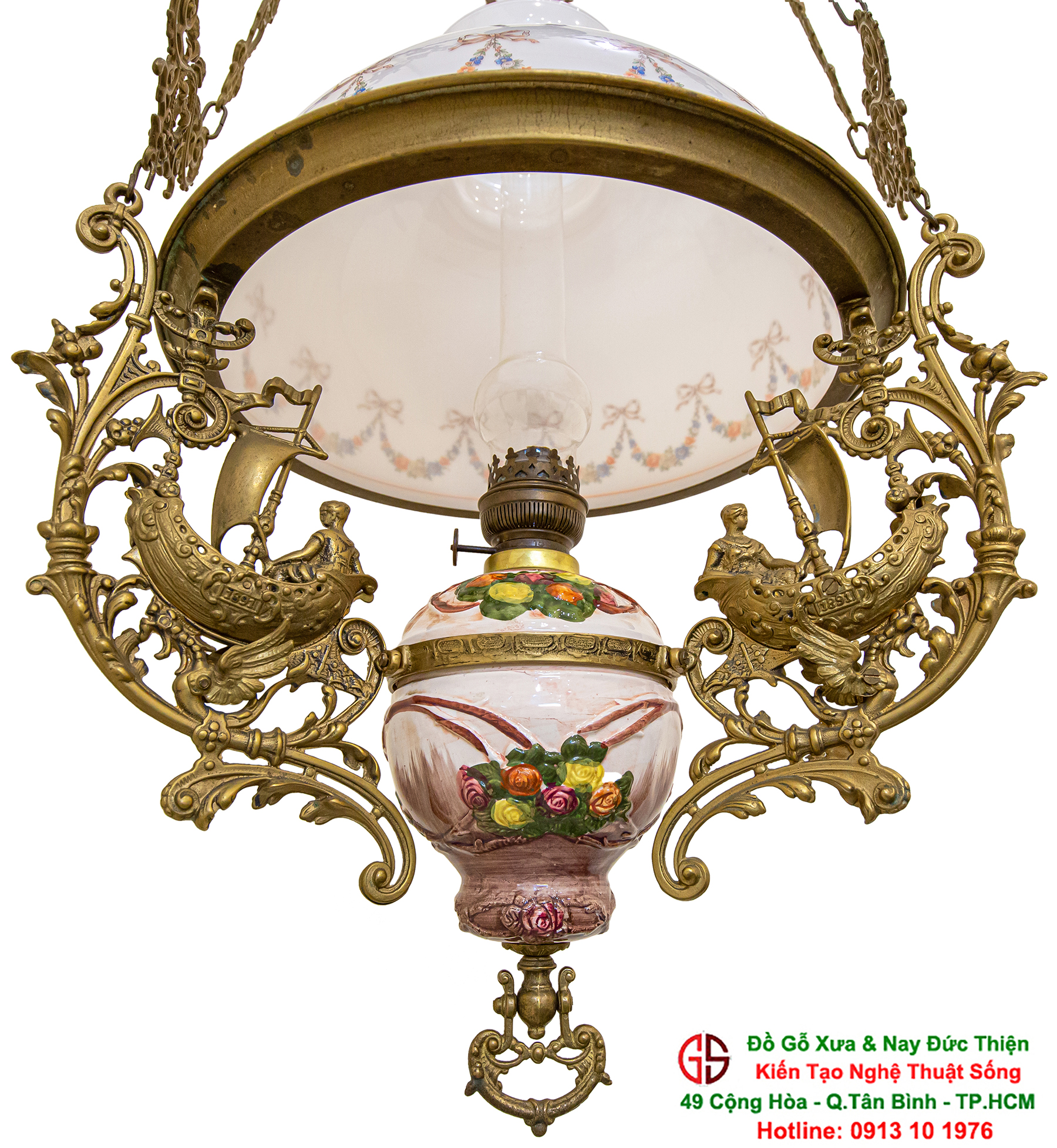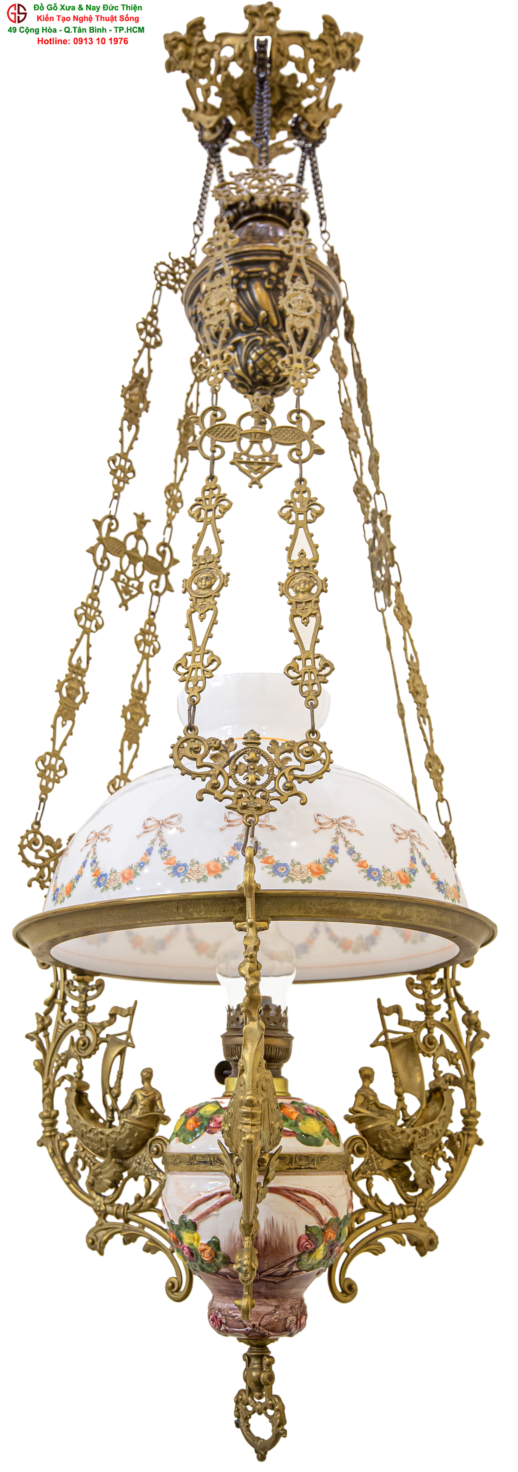Nơi mua bán đèn 3 dây của Pháp tại Sài Gòn,đèn 3 dây của Pháp chóa sứ hoa hồng tại quận Tân Bình