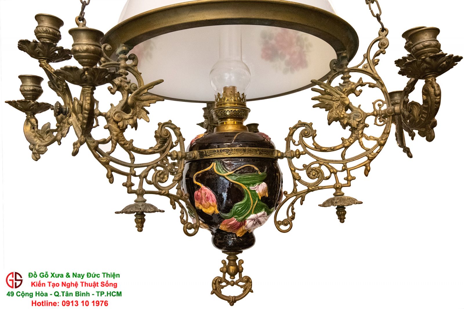 Nơi mua bán đèn 3 dây của Pháp tại Sài Gòn,đèn 3 dây của Pháp chóa sứ hoa hồng tại quận Tân Bình