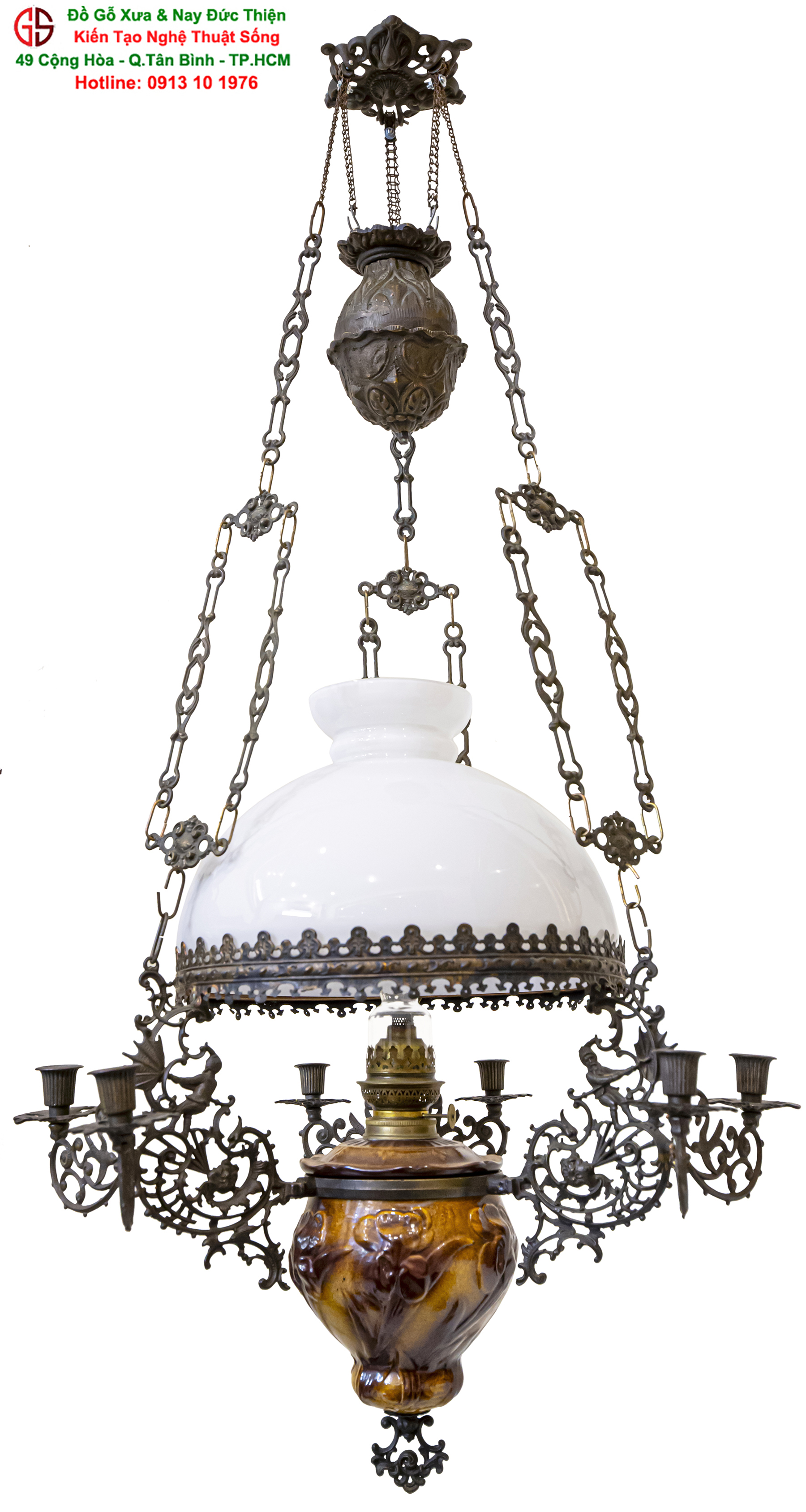 Nơi mua bán đèn 3 dây cổ của Pháp tại Sài Gòn,đèn cổ của Pháp chóa sứ đẹp tại quận Tân Bình