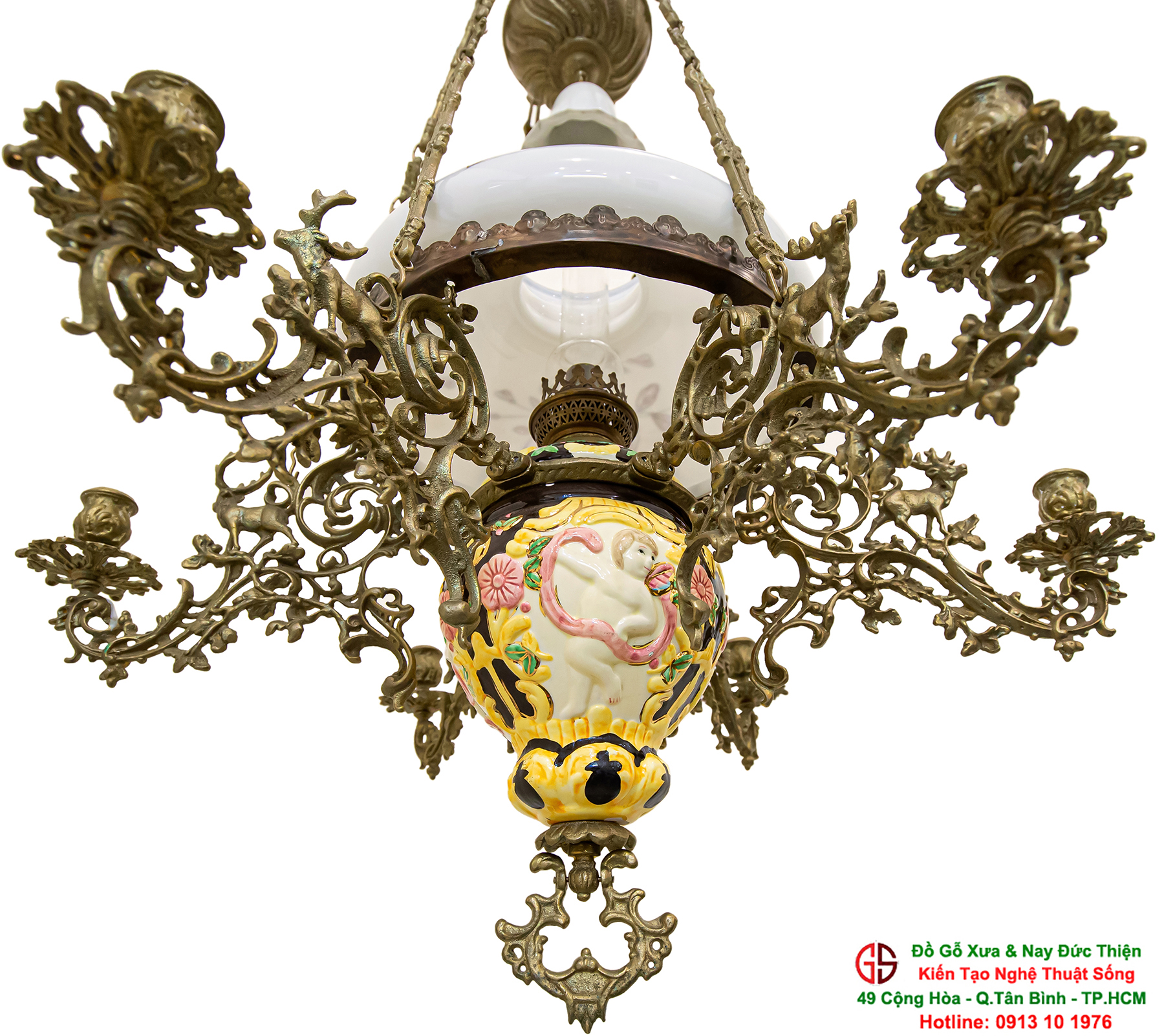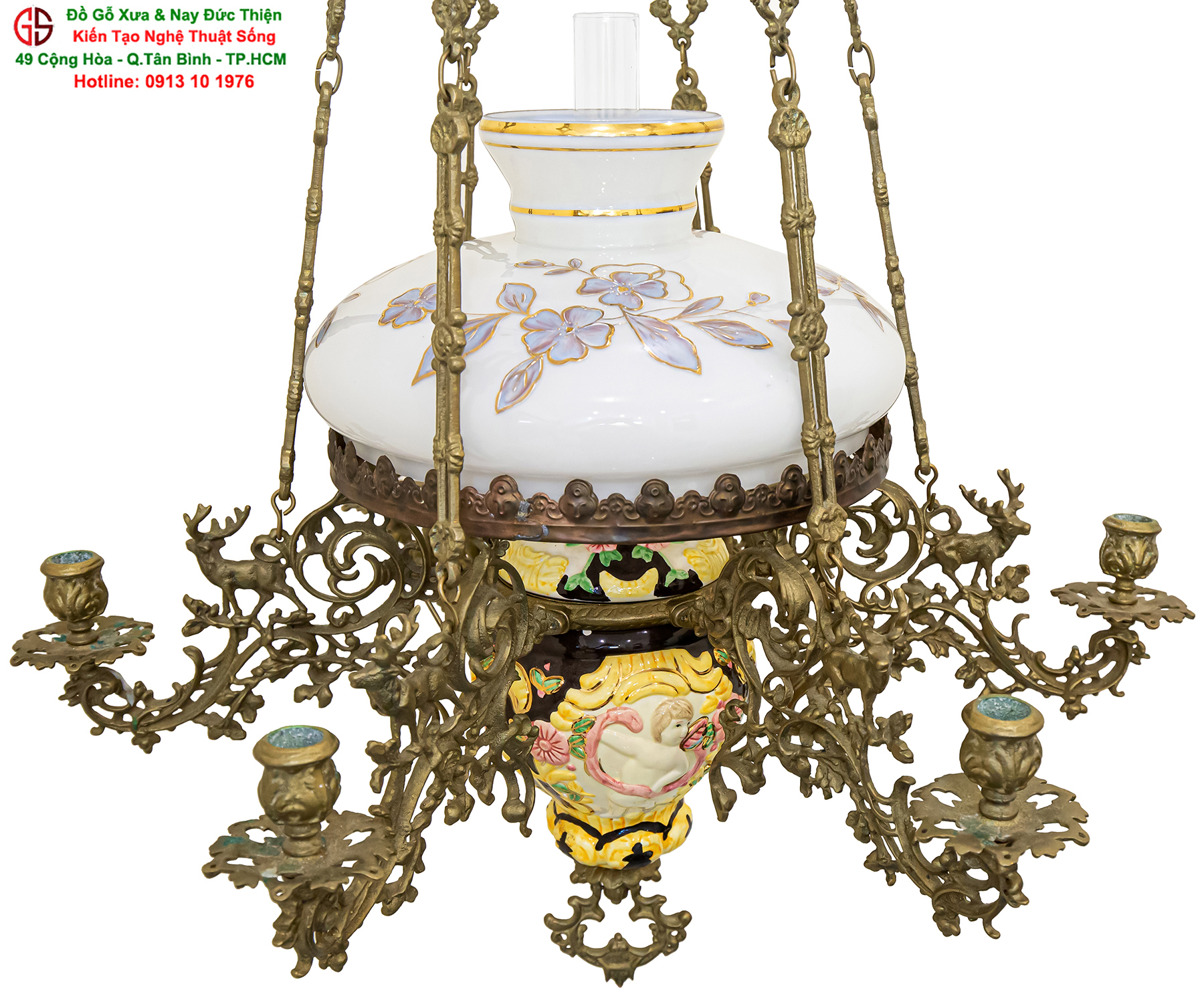 Nơi mua bán đèn 3 dây của Pháp tại Sài Gòn,đèn 3 dây của Pháp chóa sứ hoa hồng tại quận Tân Bình
