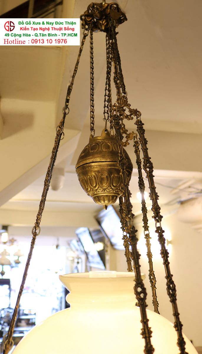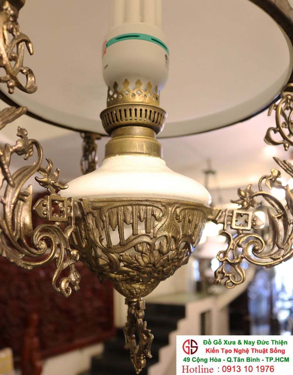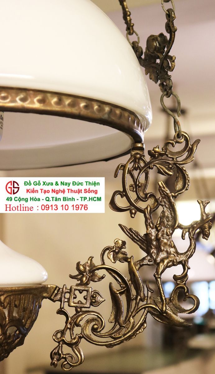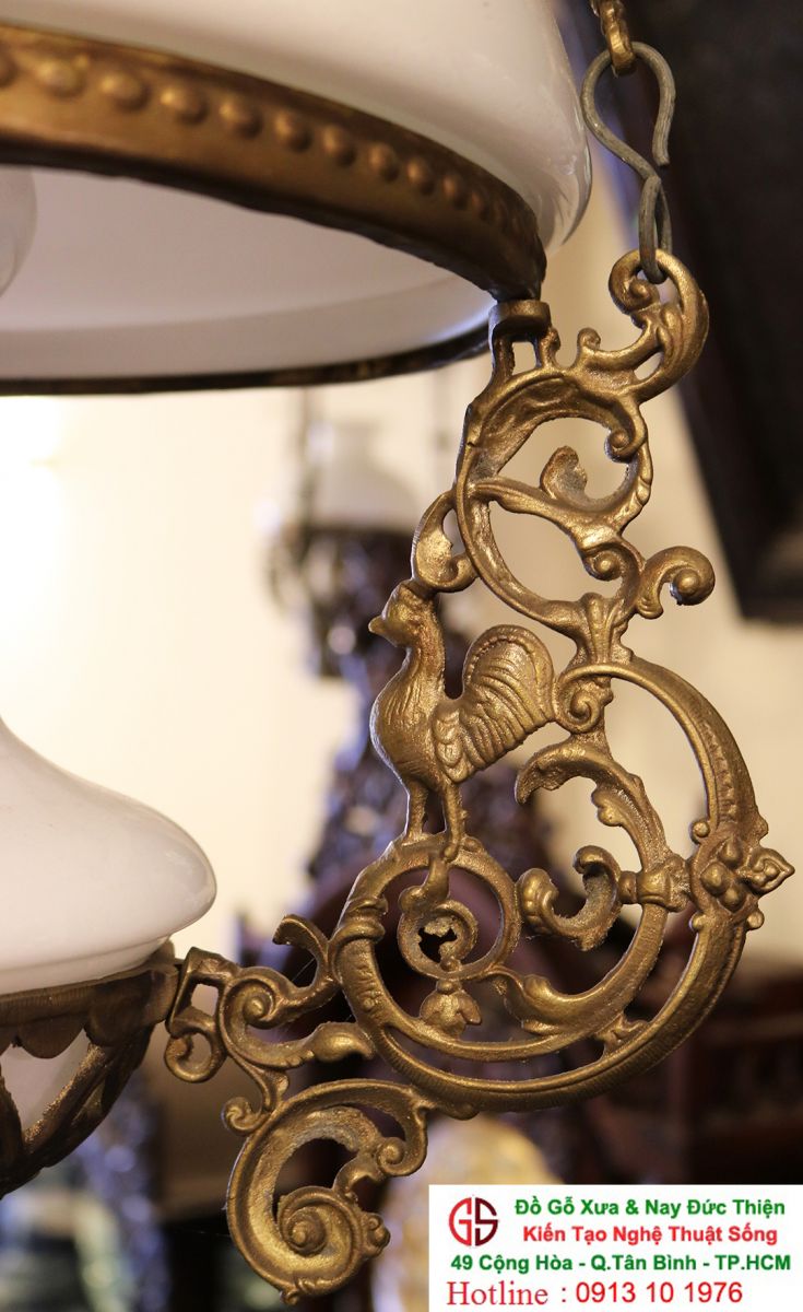 Mẫu đèn đồng 3 dây treo, chóa đường kính 28 cm, được làm thủ công bằng chất liệu đồng nguyên chất, cầu kỳ và tỉ mỉ. Đây là mẫu đèn kiểu cổ điển đẹp thường thấy trong các gian nhà cổ, nhà xưa ở khắp 3 miền Bắc, Trung, Nam. Ngoài ra, ở một số quán cafe theo phong cách cổ điển, chúng ta cũng thường xuyên bắt gặp những mẫu đèn dây treo kiểu cổ này. Một số nhà biệt thự theo kiến trúc Pháp mới vẫn phù hợp với loại đèn trang trí độc đáo này. Đèn được đông đảo gia chủ lựa chọn cũng bởi vì mẫu mã mang phong cách Pháp sang trọng, độ bền cao, làm tăng thẩm mỹ cho ngôi nhà, mà giá thành thì lại rẻ.