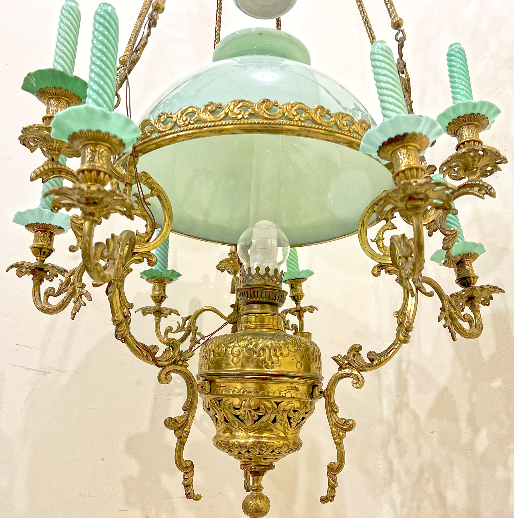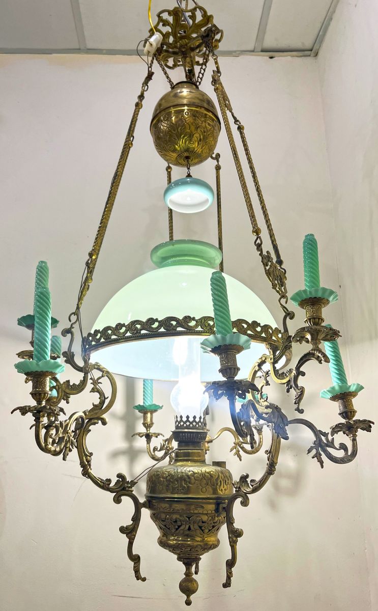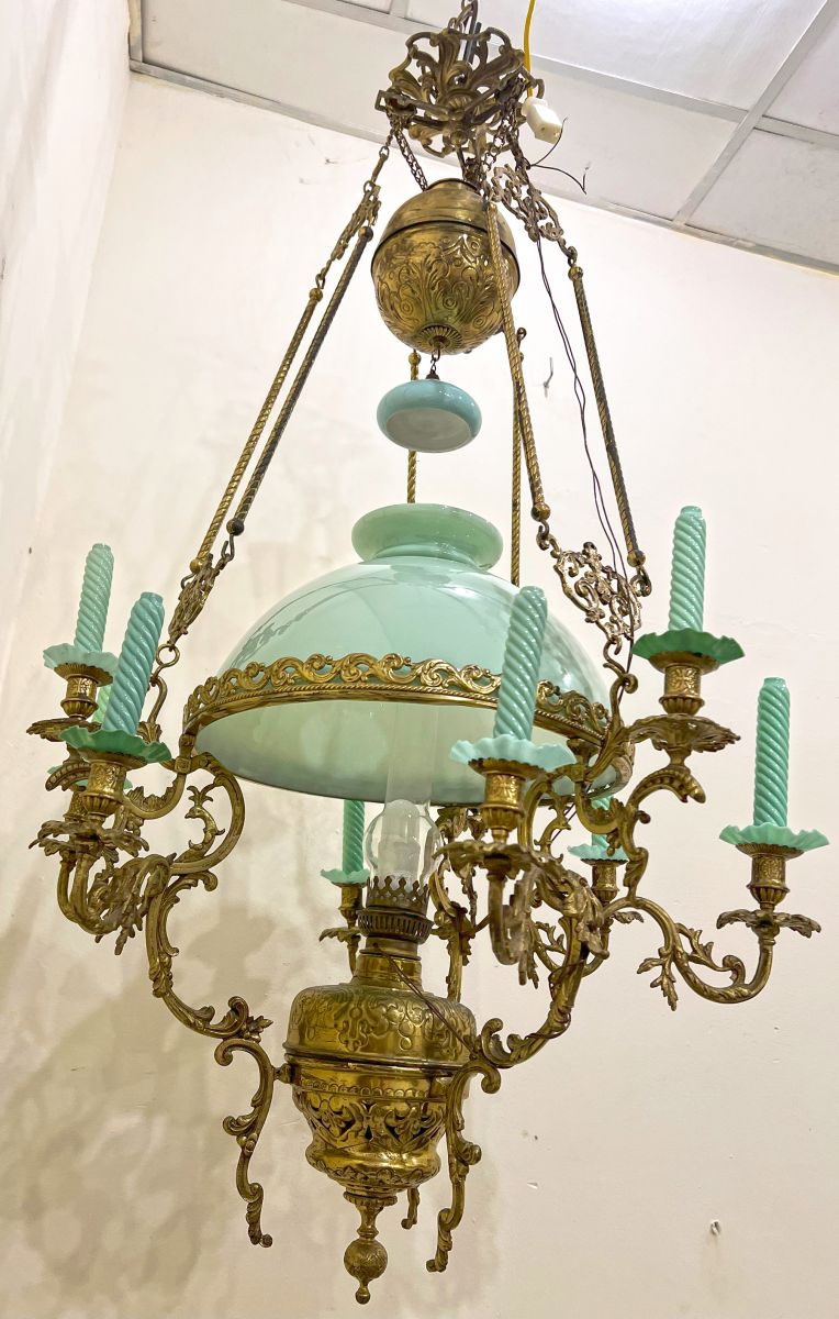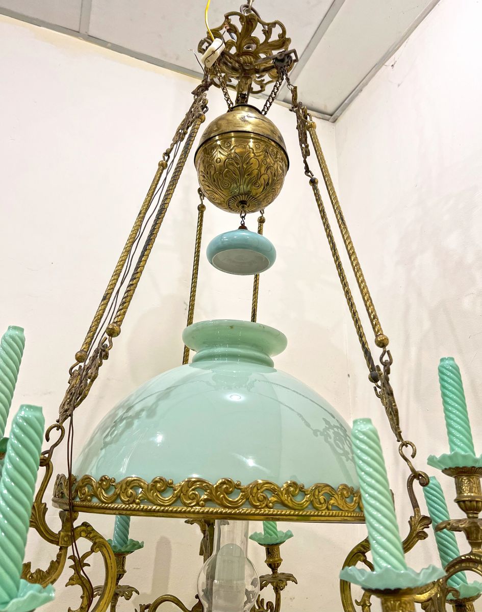 Đèn ba dây cổ xịn Pháp sở hữu chóa đèn đường kính 40cm, với 9 ngọn nến sứ xung quanh, mang đến vẻ đẹp quyến rũ và lối cuốn. Chút điểm nhén nhá vào chi tiết trang trí tinh xảo tăng thêm giá trị nghệ thuật cho sản phẩm. -