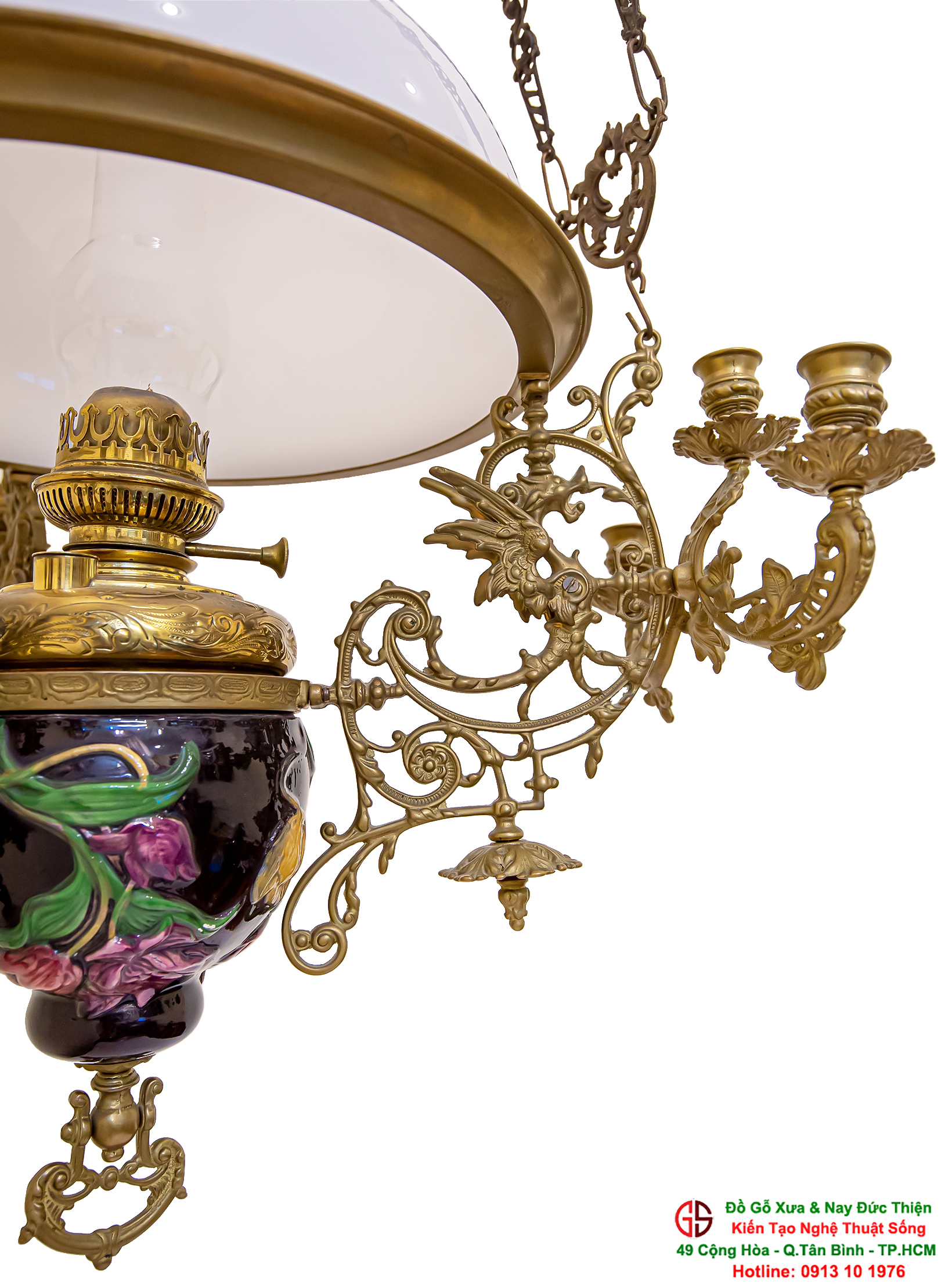 Nơi mua bán đèn 3 dây của Pháp tại Sài Gòn,đèn 3 dây của Pháp chóa sứ hoa hồng tại quận Tân Bình