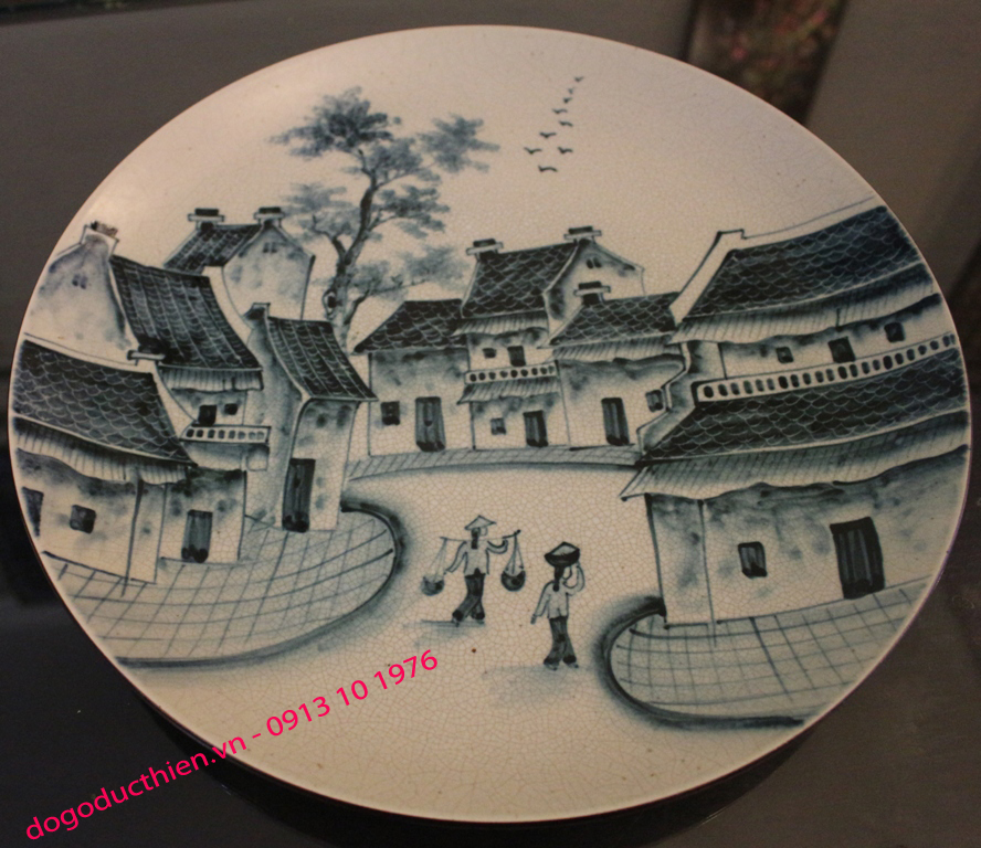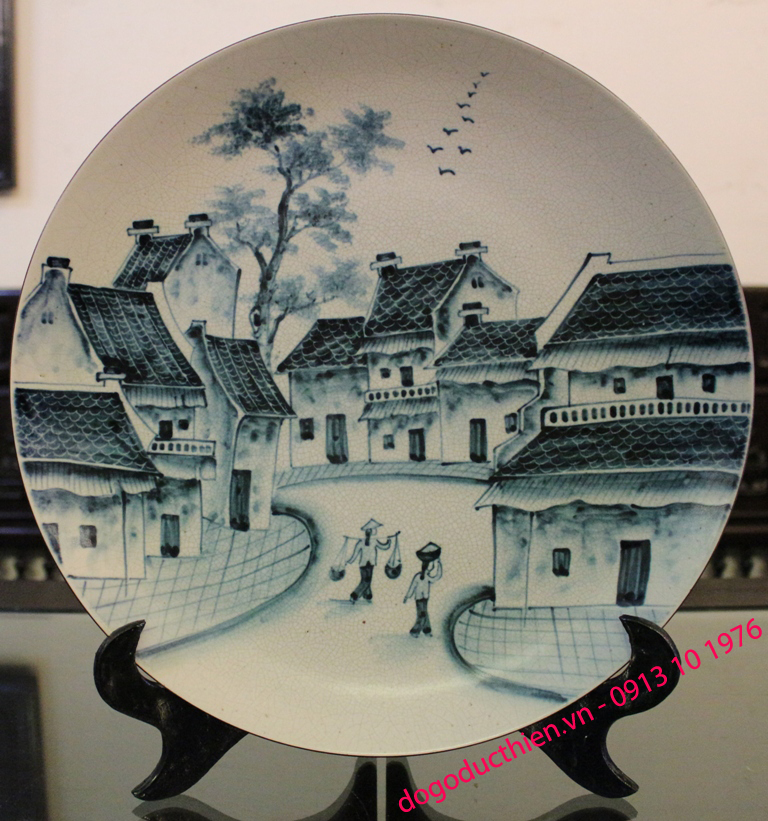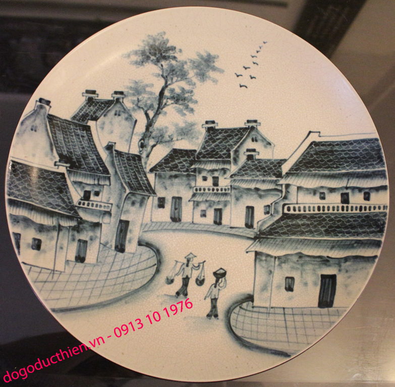 Thuộc dòng gốm sứ da rạn, chiếc đĩa phố cổ là một tác phẩm nghệ thuật của người xưa, tái hiện không gian phố cổ độc đáo, hoài niệm về một thời đã qua