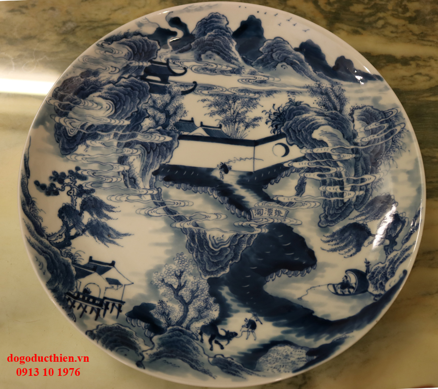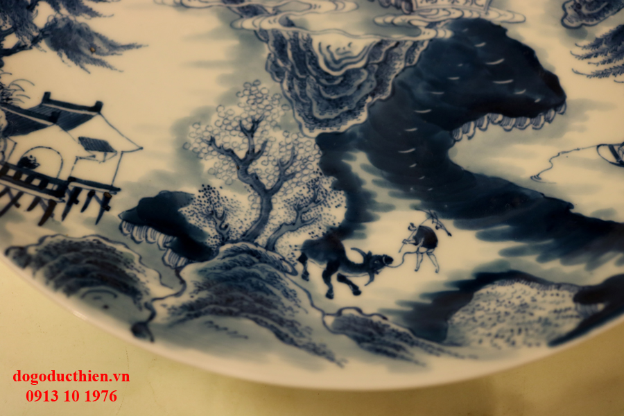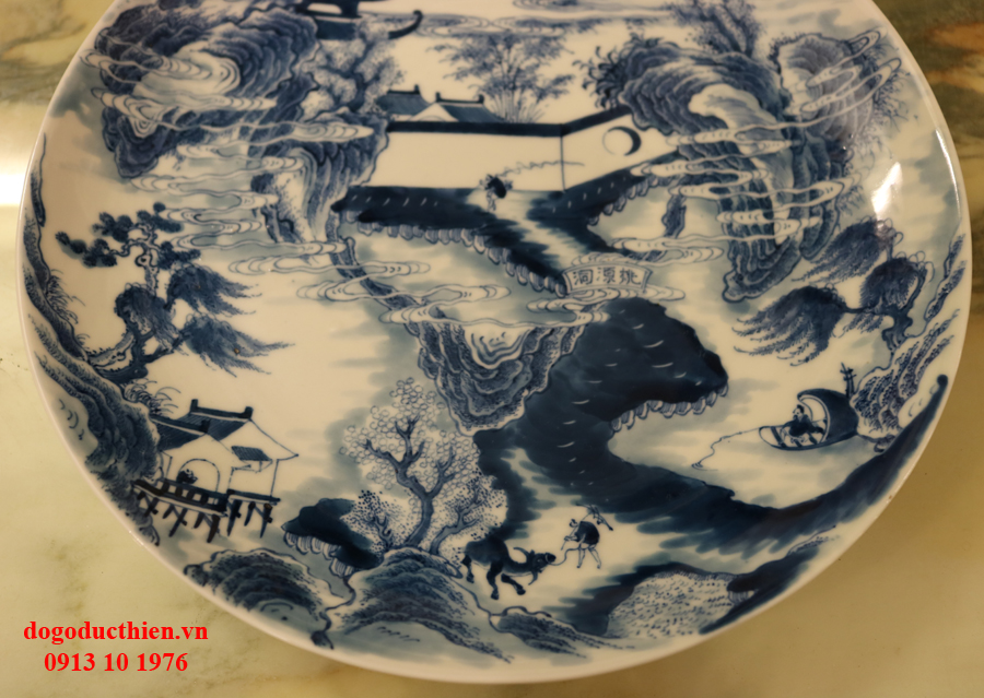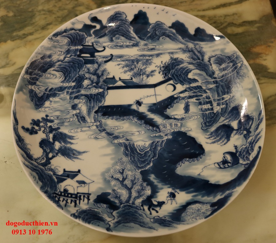 Đồ gỗ Đức Thiện xin giao lưu với các bác chiếc đĩa sứ THIÊN HẠ THÁI BÌNH. Chiếc đĩa sứ được tạo ra dưới bàn tay của người nghệ nhân khiến cho nó trở nên vô cùng tinh tế với vẻ đẹp hài hòa và sâu lắng. Hình ảnh người nông dân với con trâu cái cày trở về nhà sau 1 ngày làm việc, xa xa là người ngư phủ đang thả cần trên chiếc thuyền nhỏ... bức tranh khắc họa 1 cách sống động những con người lao động cần cù và chân chất. Một hình ảnh đáng quý, đáng chân trọng mà người xưa muốn nhắn nhủ đến con cháu đời sau.