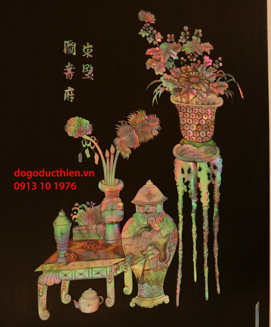 - Tranh cẩn ốc xà cừ: tranh tứ quý cẩn ốc, tranh vinh quy bái tổ, tranh phượng hồng, tranh tứ bình cẩn ốc, tranh tùng cúc trúc mai, tranh cổ đồ.