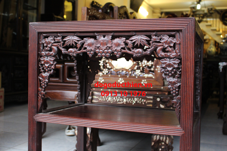 Đồ Gỗ Đức Thiện xin trân trọng giới thiệu đôi đôn gỗ 3 tầng, chạm trúc nho 4 mặt , trên chất liệu gỗ gụ mật, giá lại rất rẻ phù hợp cho kê tivi, kê tượng > rất hữu dụng.