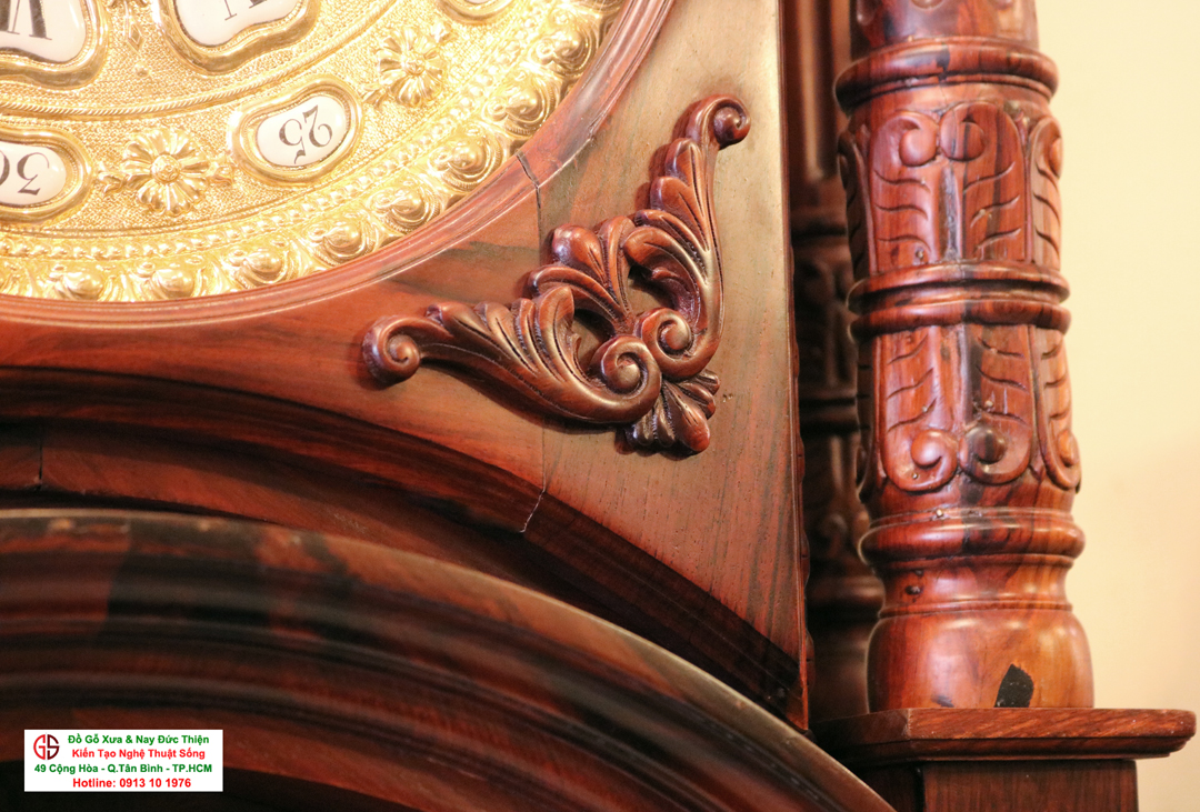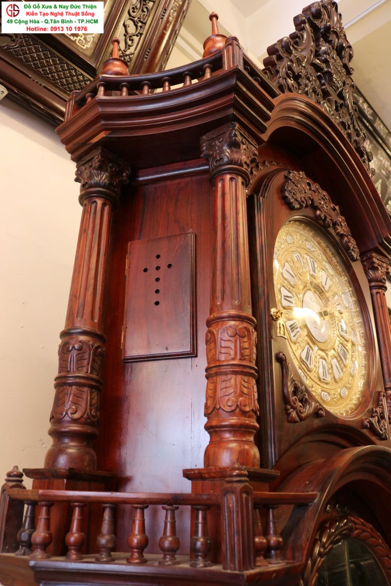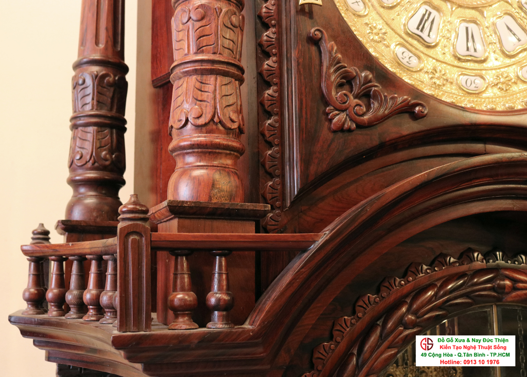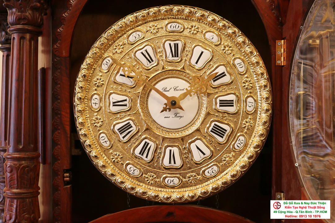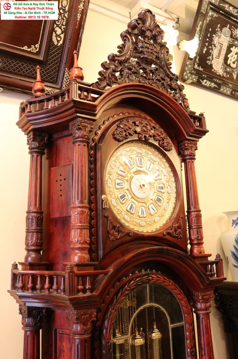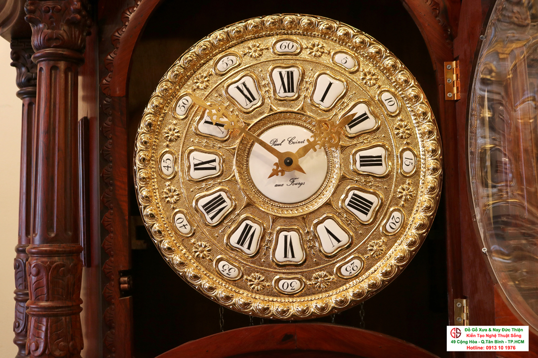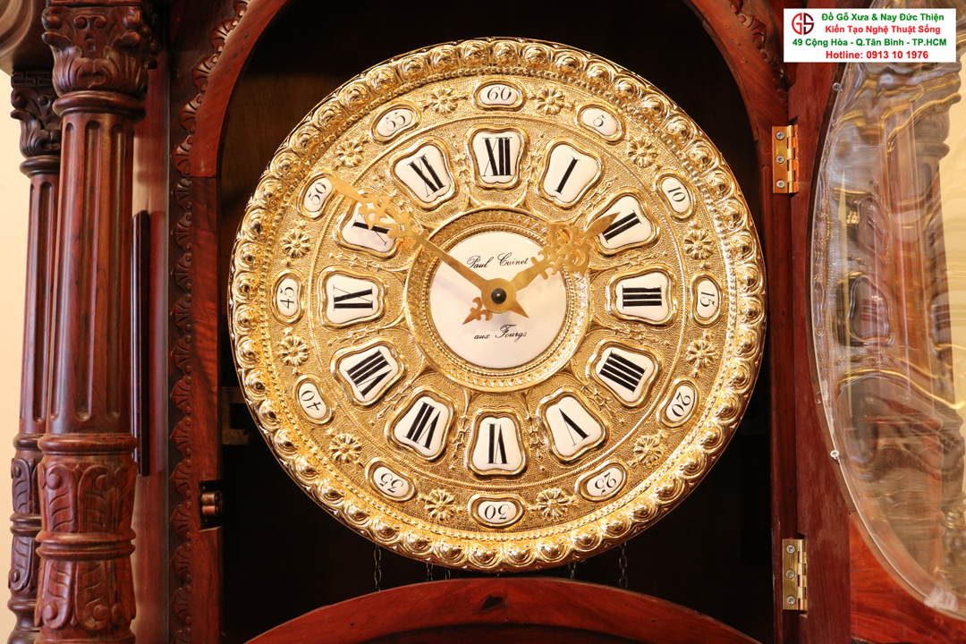 Với nhiều năm kinh nghiệm kinh doanh và sưu tầm những món đồ nội thất gỗ cao cấp, đồng hồ theo kiểu xưa, hôm nay, Đồ Gỗ Đức Thiện đã chọn lọc rất kỹ và xin gửi tới quý khách hàng một "siêu phẩm " hàng hiếm - Chiếc đồng hồ tủ loại VIP. Chiếc đồng hồ tủ loại lớn này là sự hội tụ những gì đẹp nhất, quý giá nhất, tinh túy nhất. Tủ đồng hồ được đóng hoàn toàn từ loại gỗ lõi của cây Cẩm Lai Việt ( Vân đẹp như vân gỗ Trắc ). Máy được sử dụng là dòng máy lớn được nhập khẩu từ Đức - chạy ổn định. Toàn bộ phần mặt đồng hồ, quả lắc, tạ đều được mạ vàng 24K, đẹp, sang trọng và đẳng cấp.