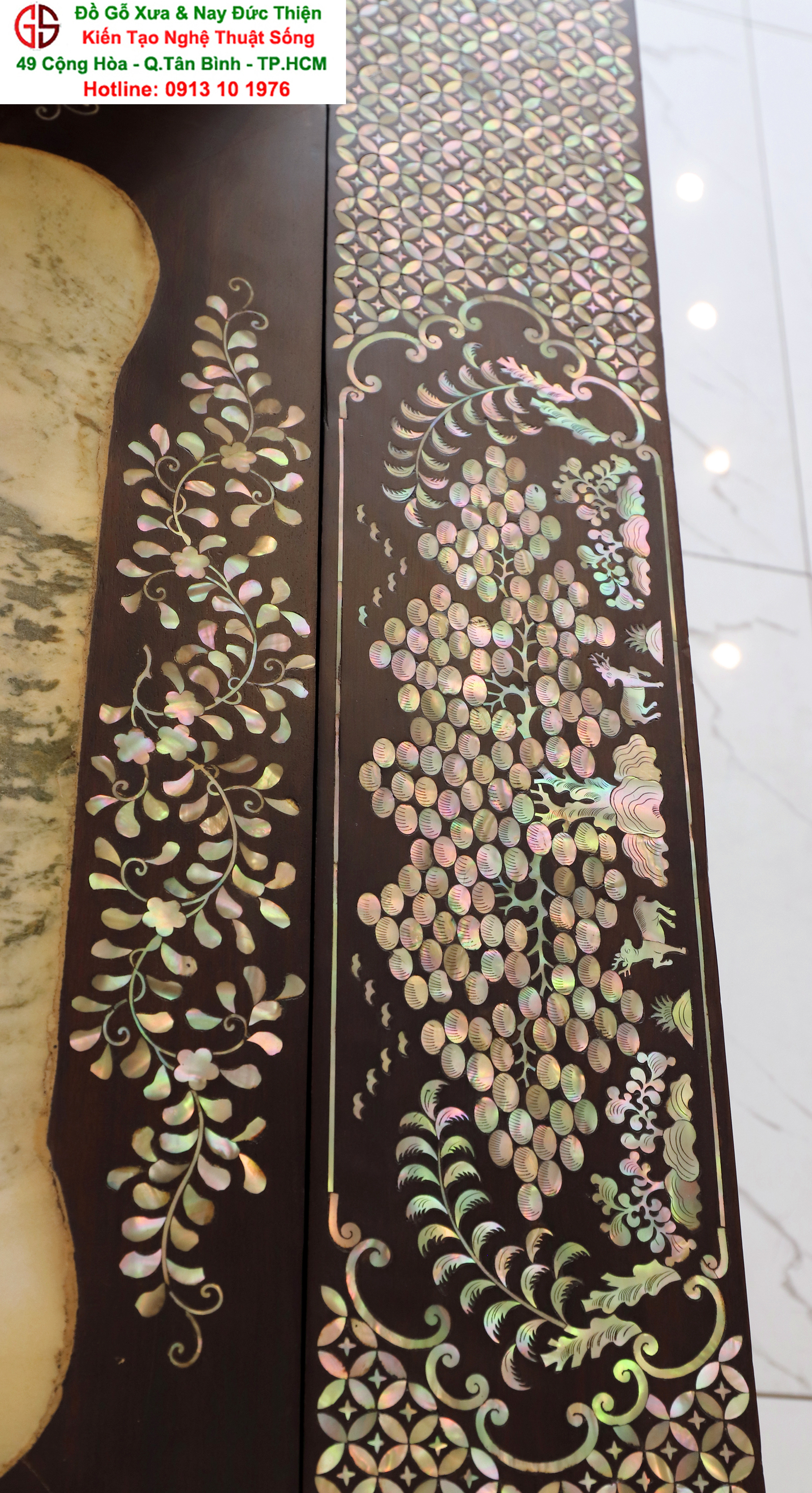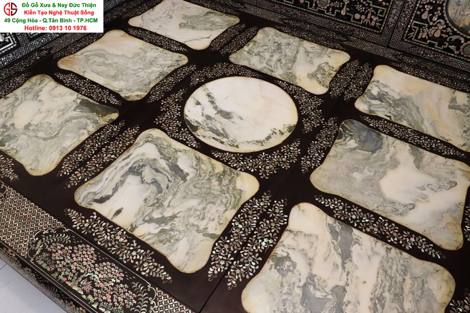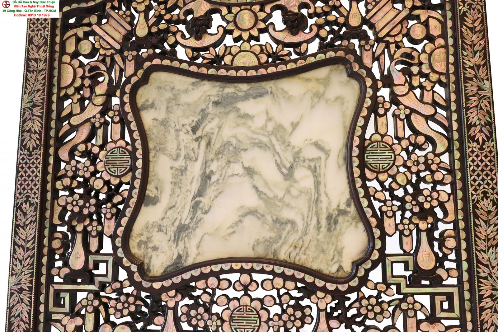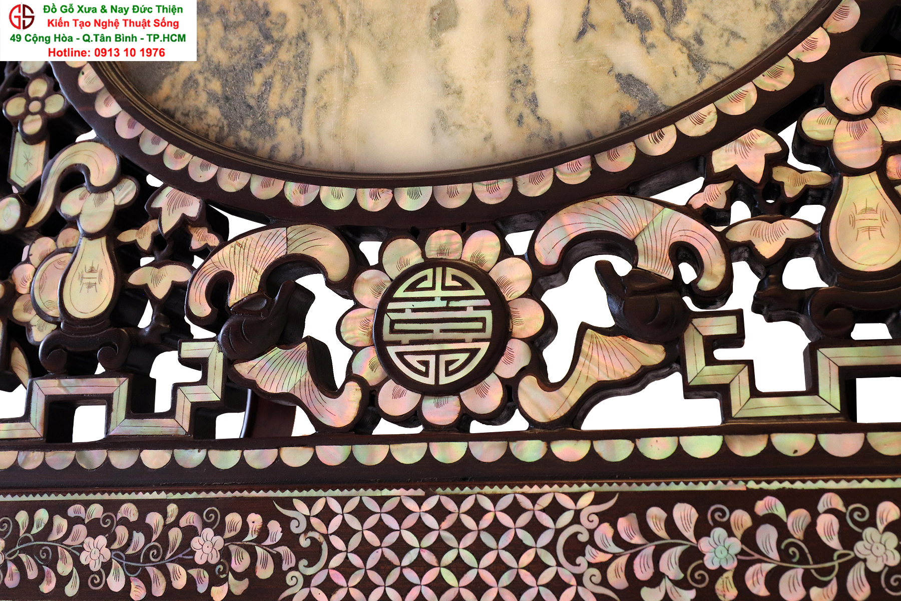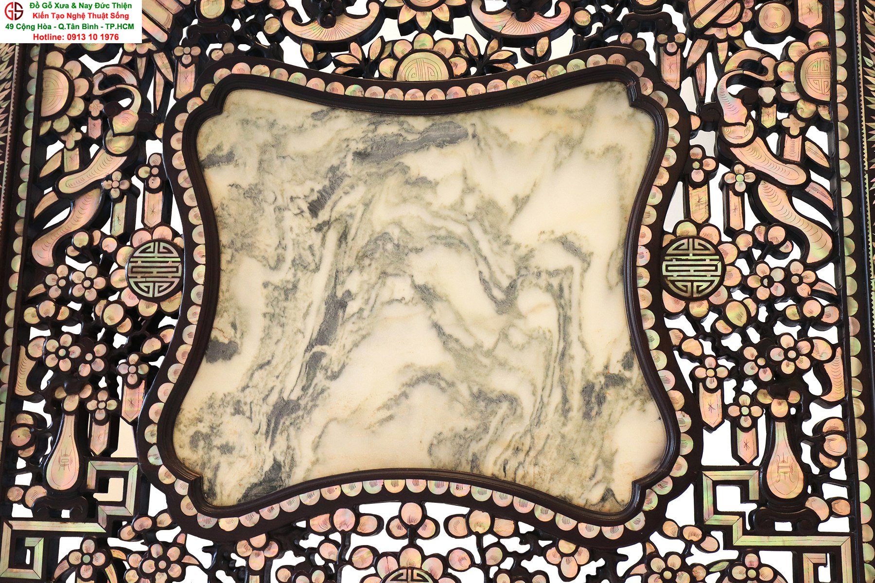 Chất liệu: gỗ gụ + ốc xà cừ + đá tàu tự nhiên.