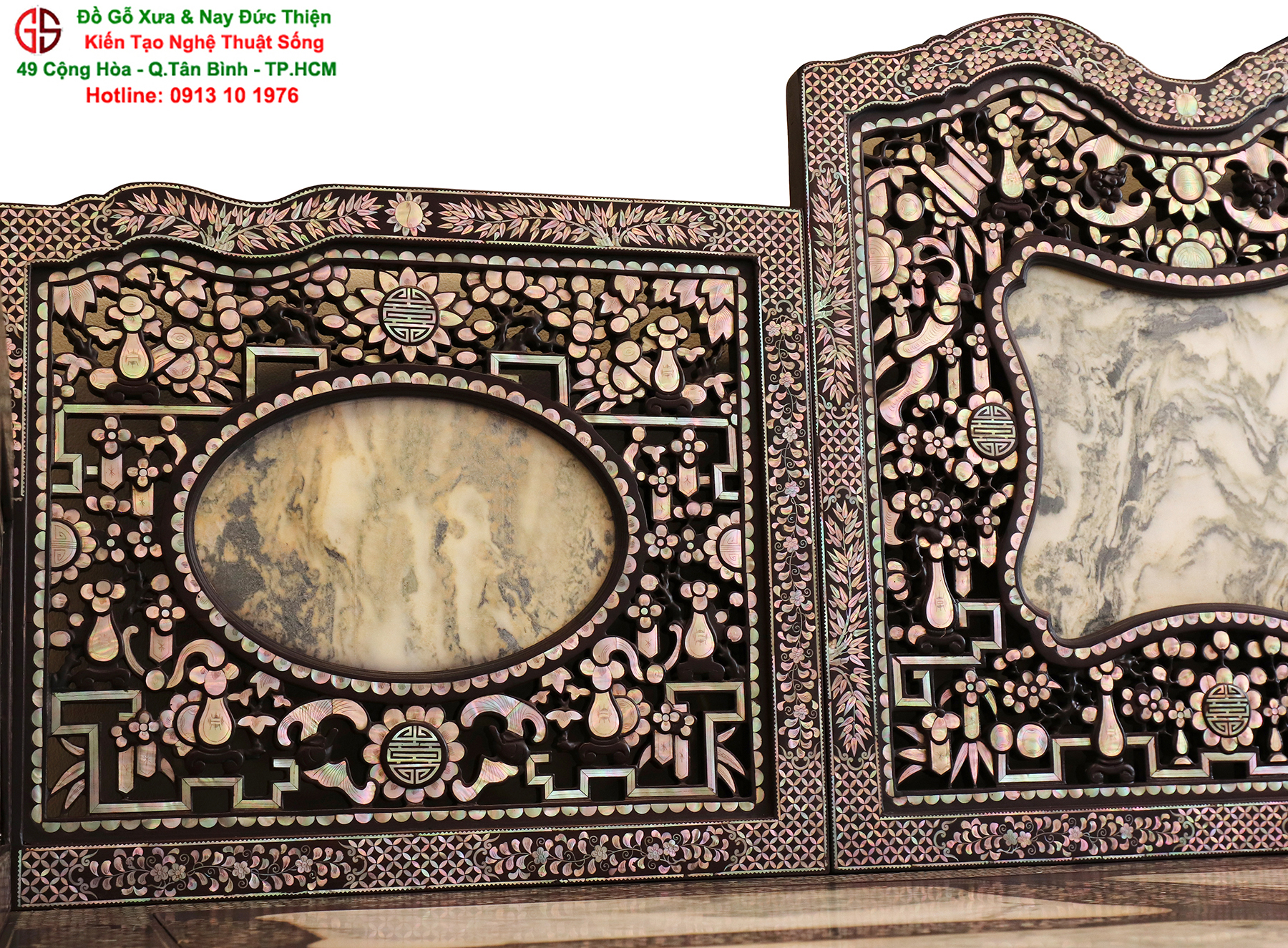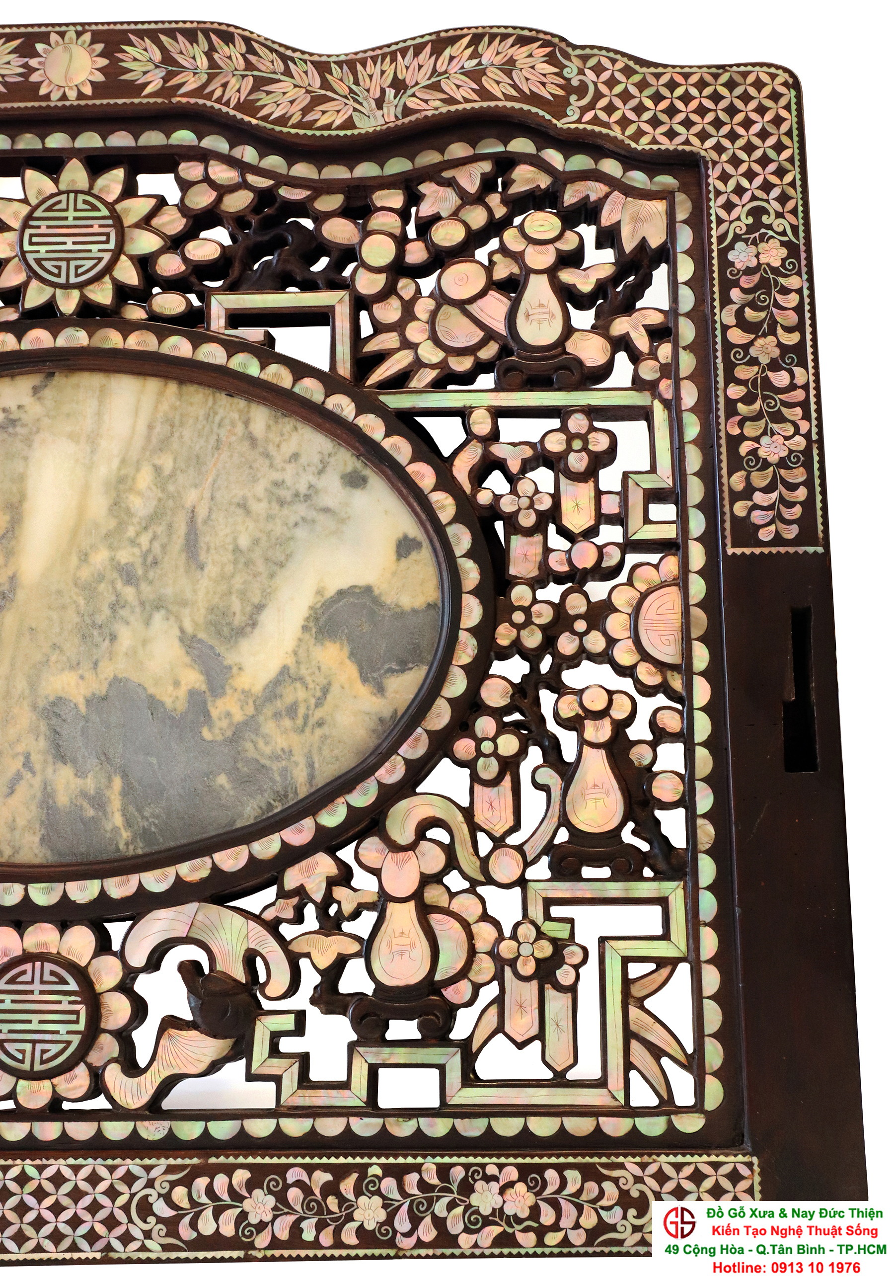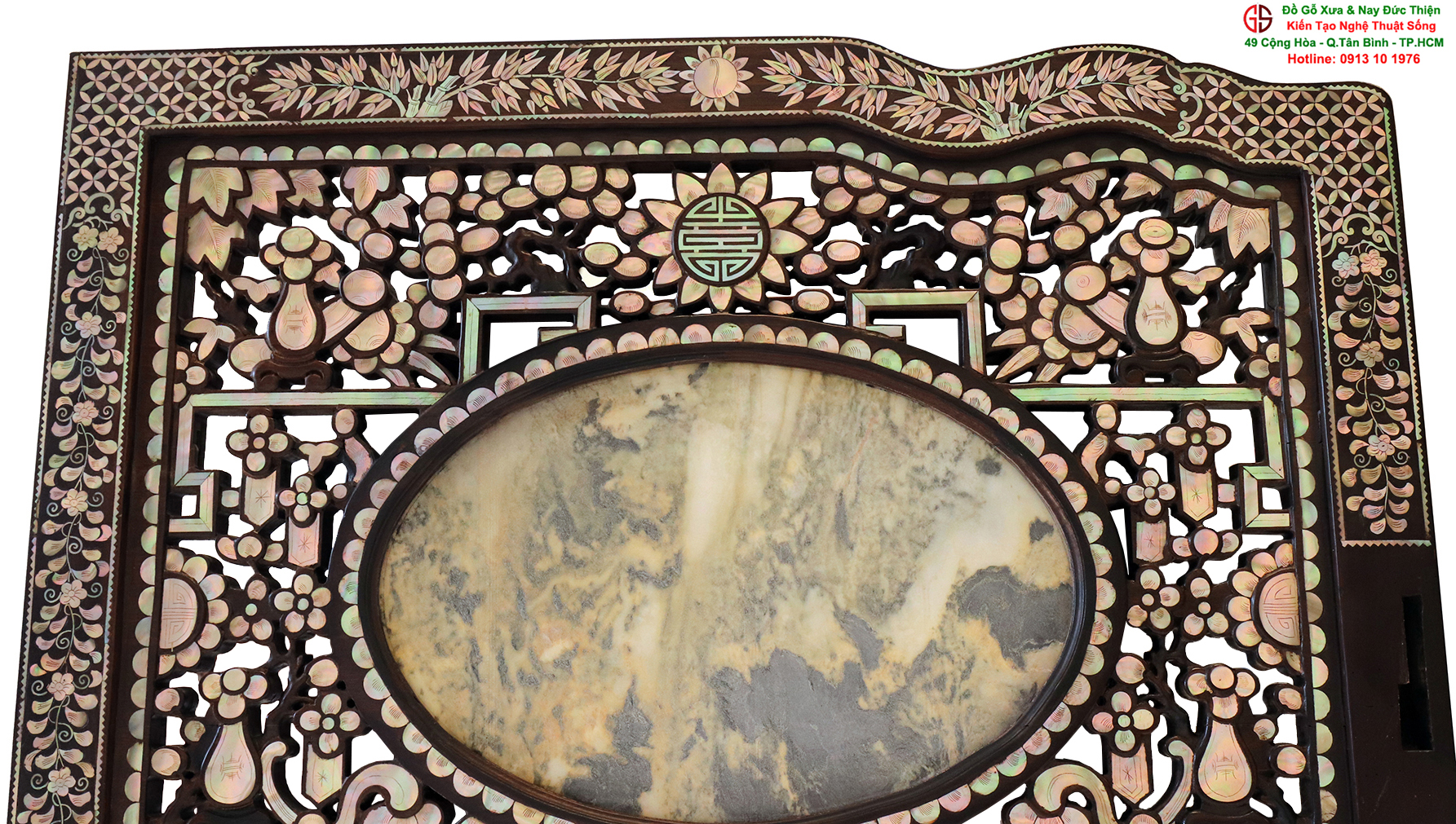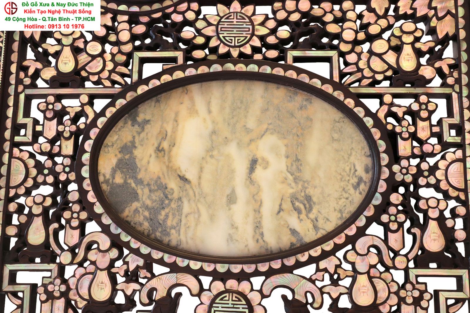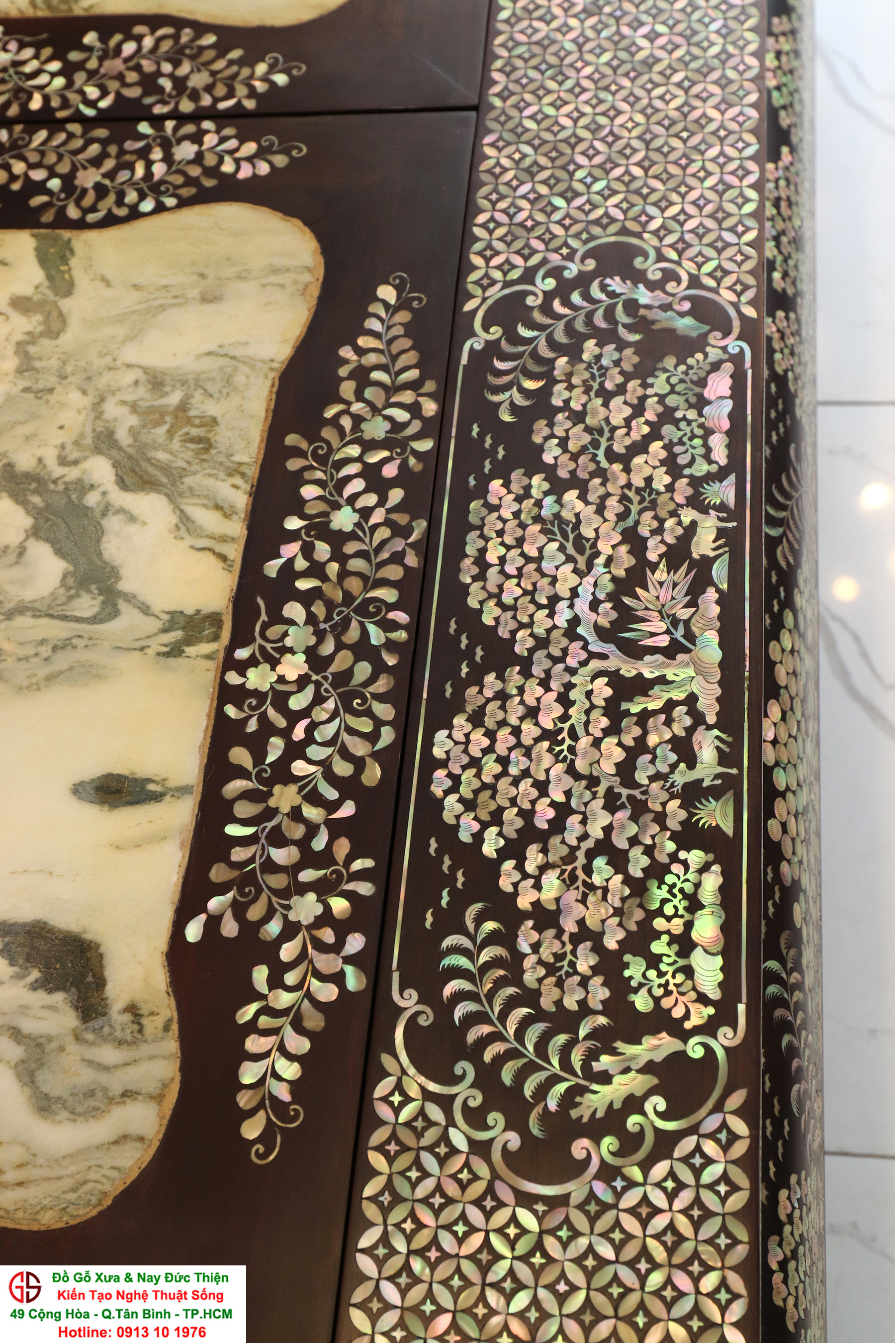 Chất liệu: gỗ gụ + ốc xà cừ + đá tàu tự nhiên.