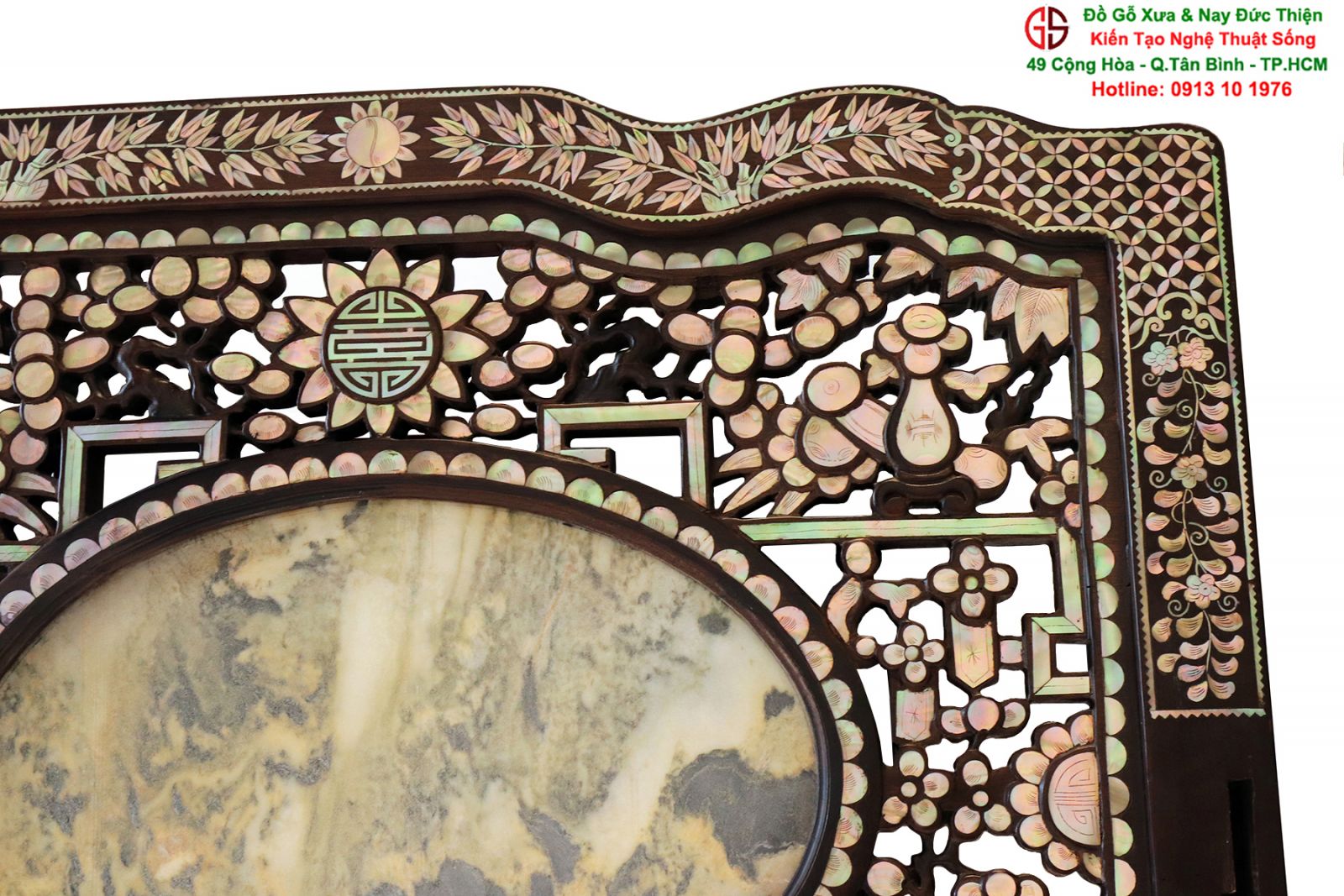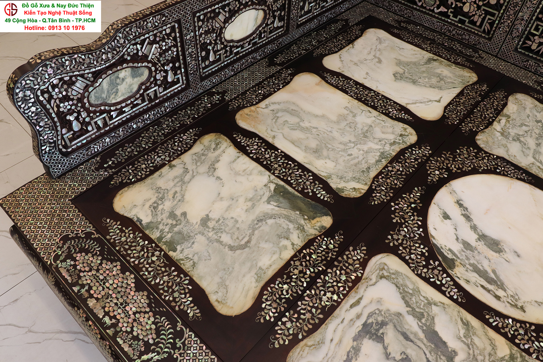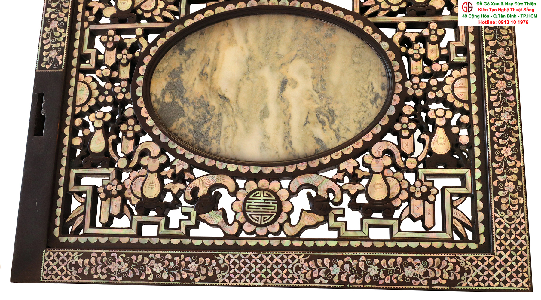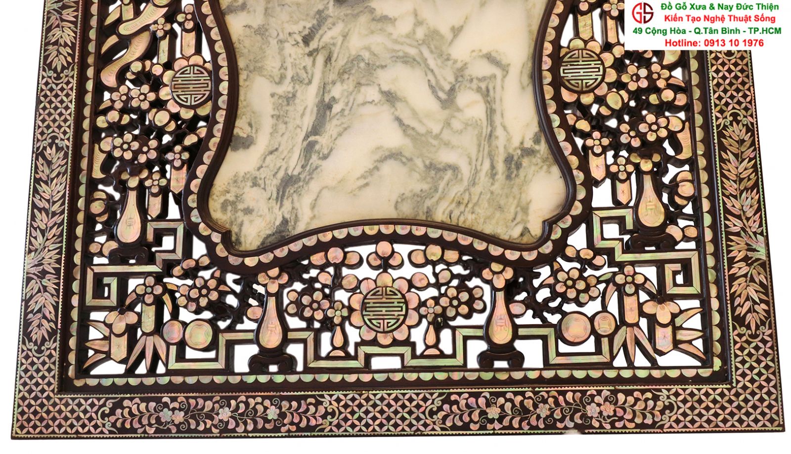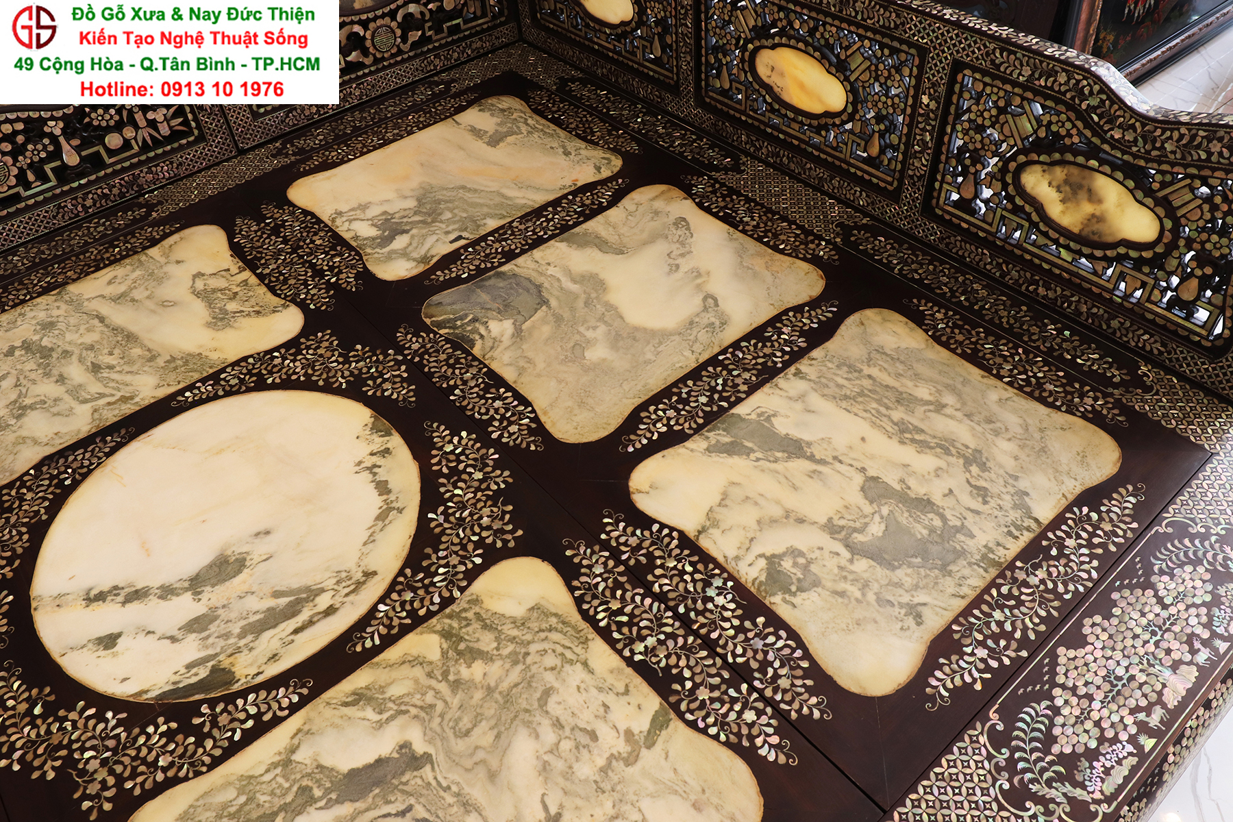 Chất liệu: gỗ gụ + ốc xà cừ + đá tàu tự nhiên.