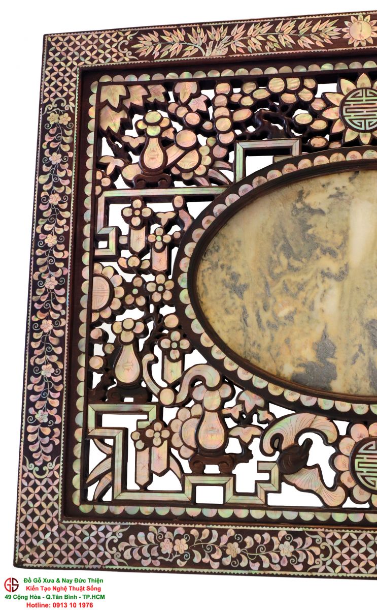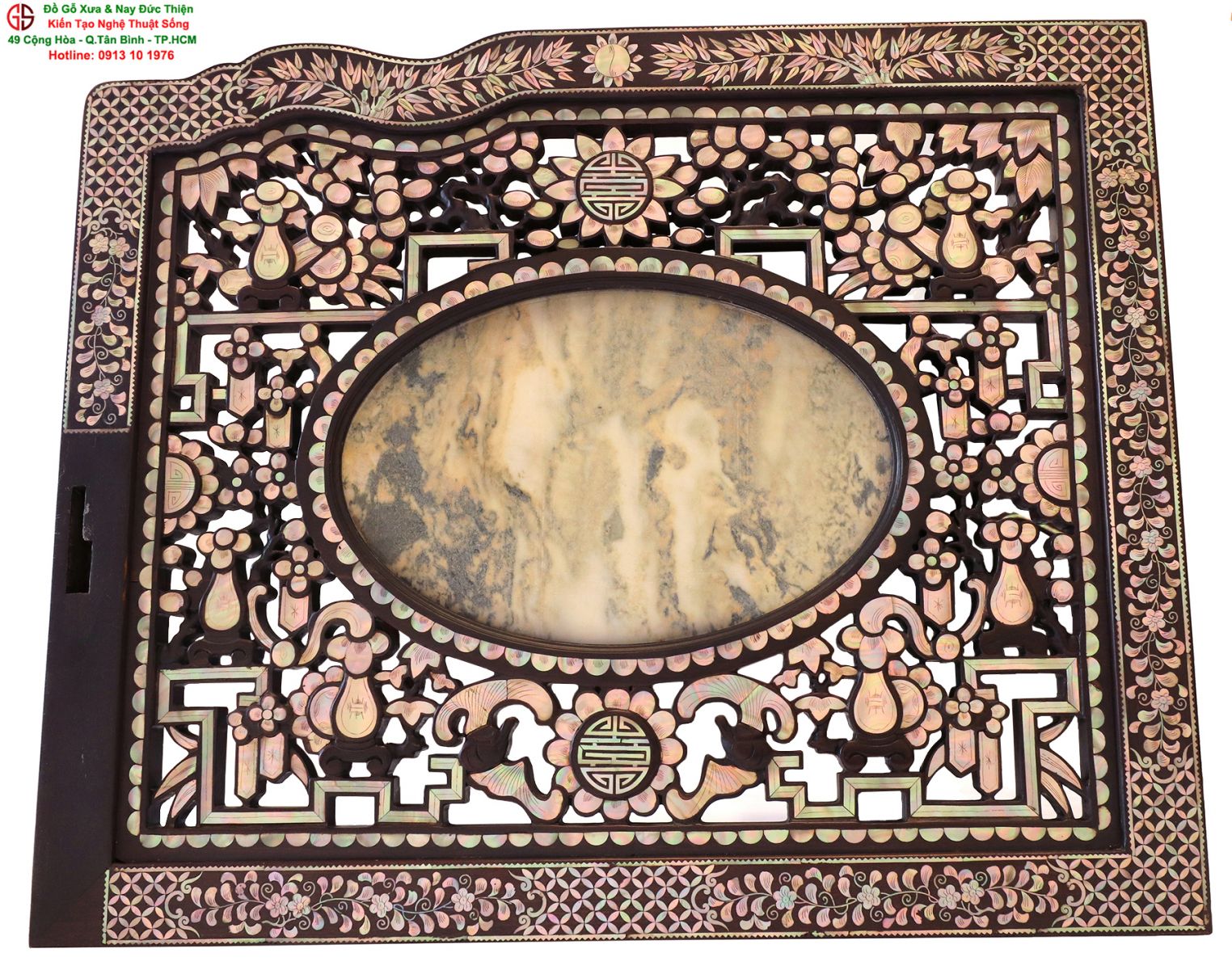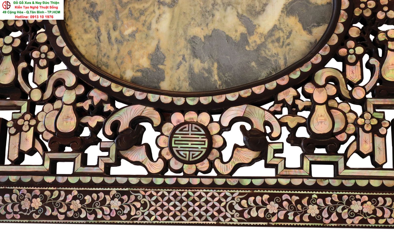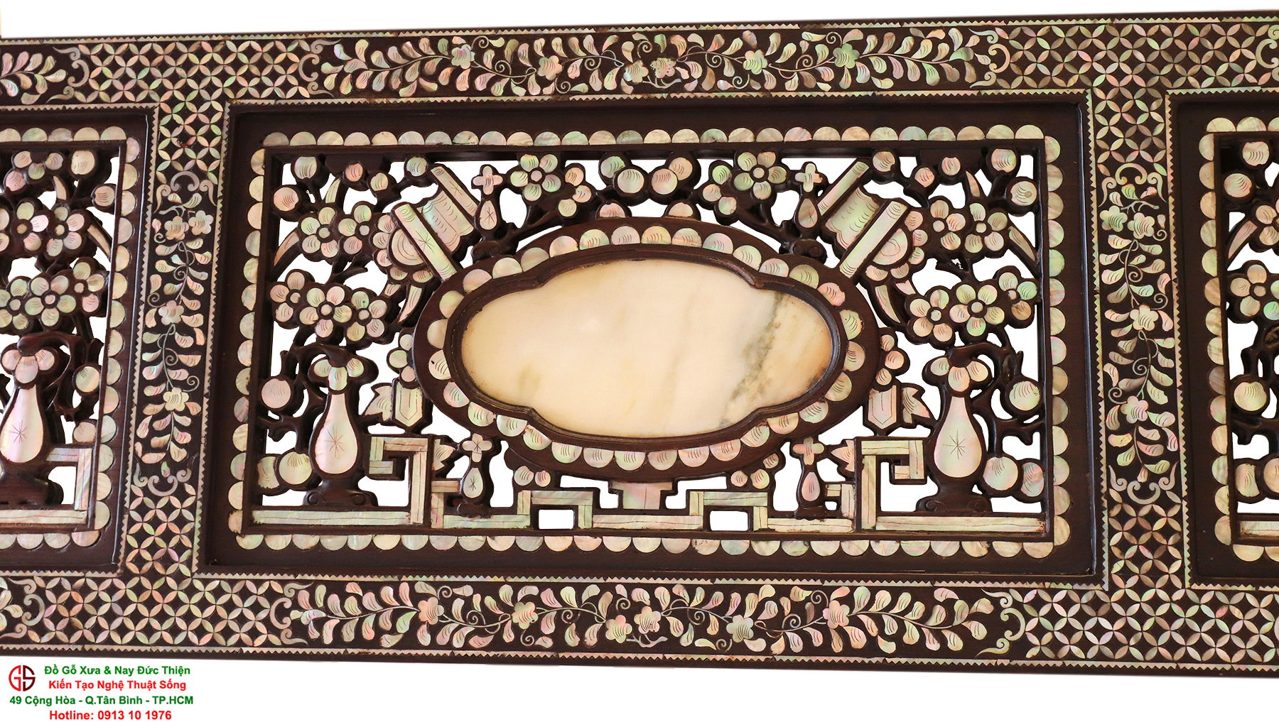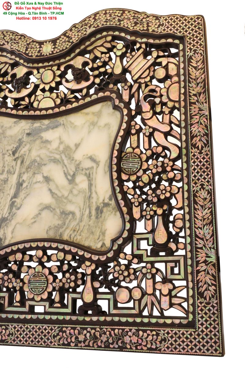 Chất liệu: gỗ gụ + ốc xà cừ + đá tàu tự nhiên.