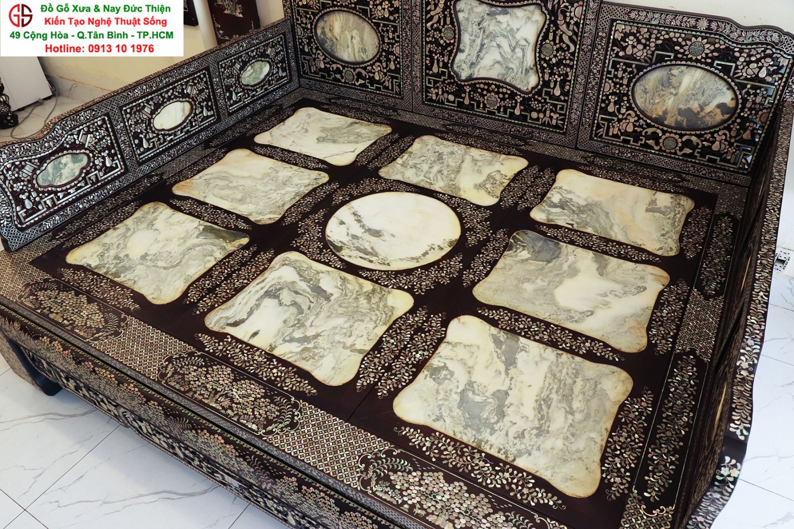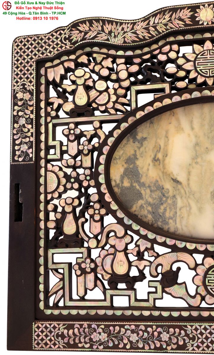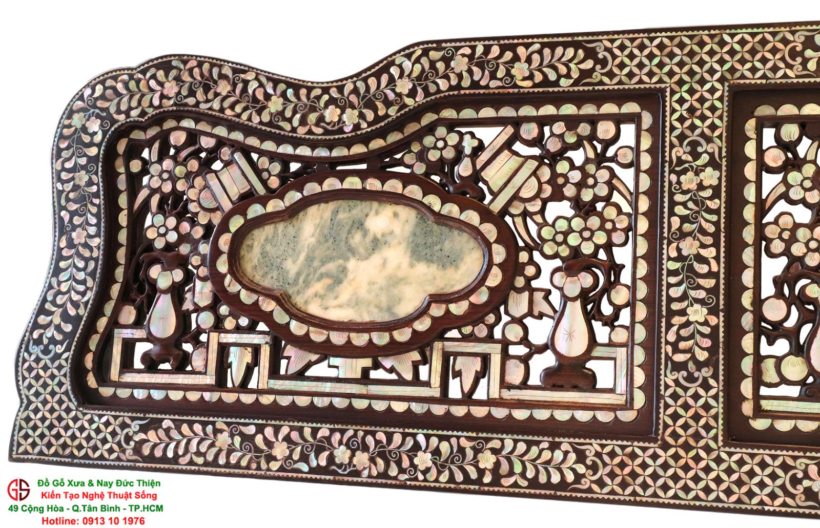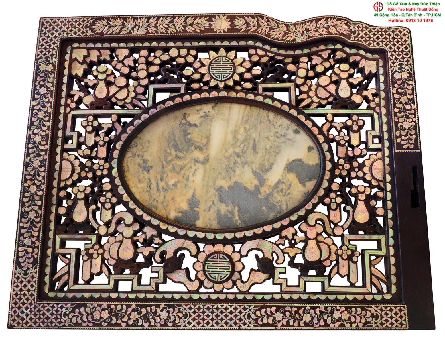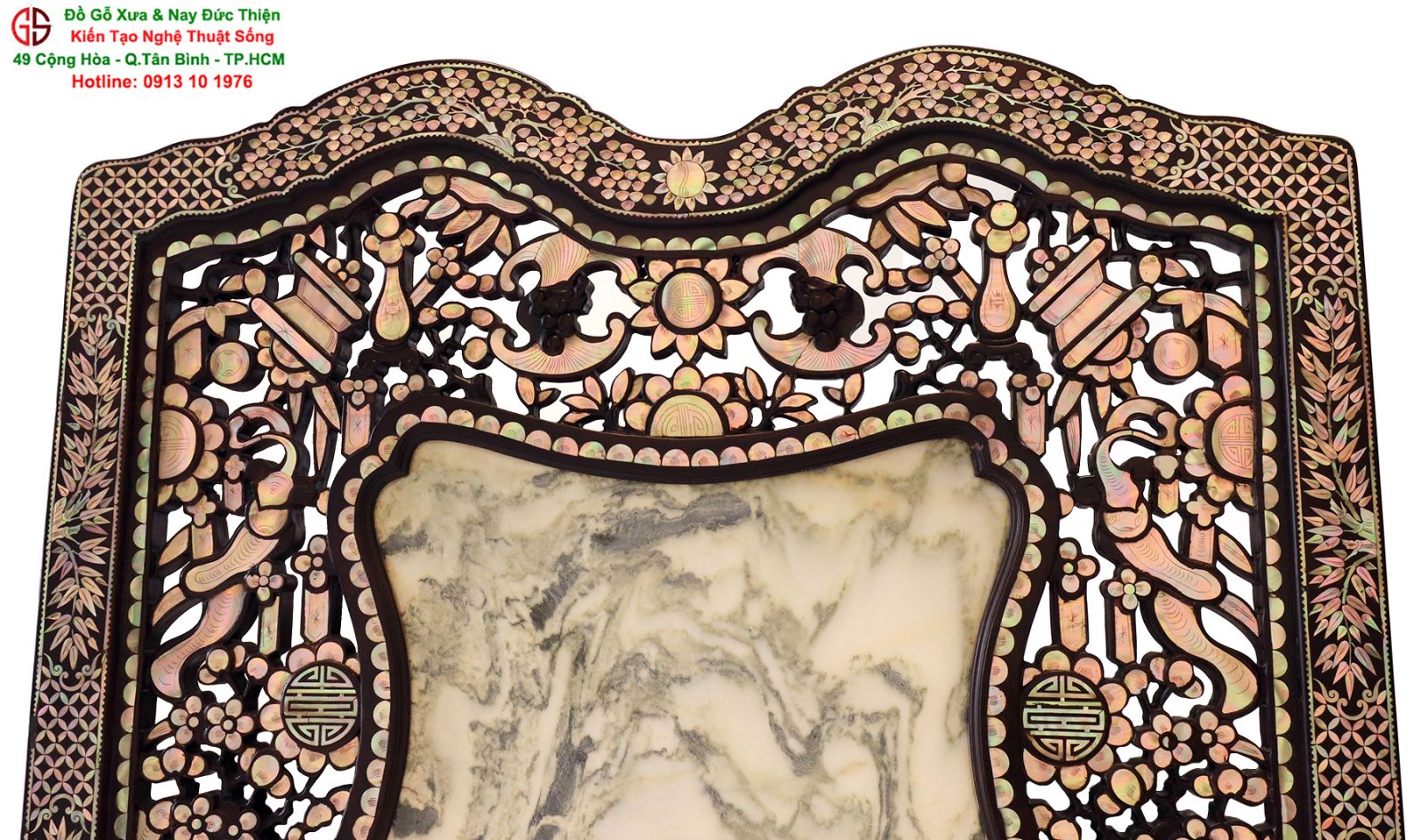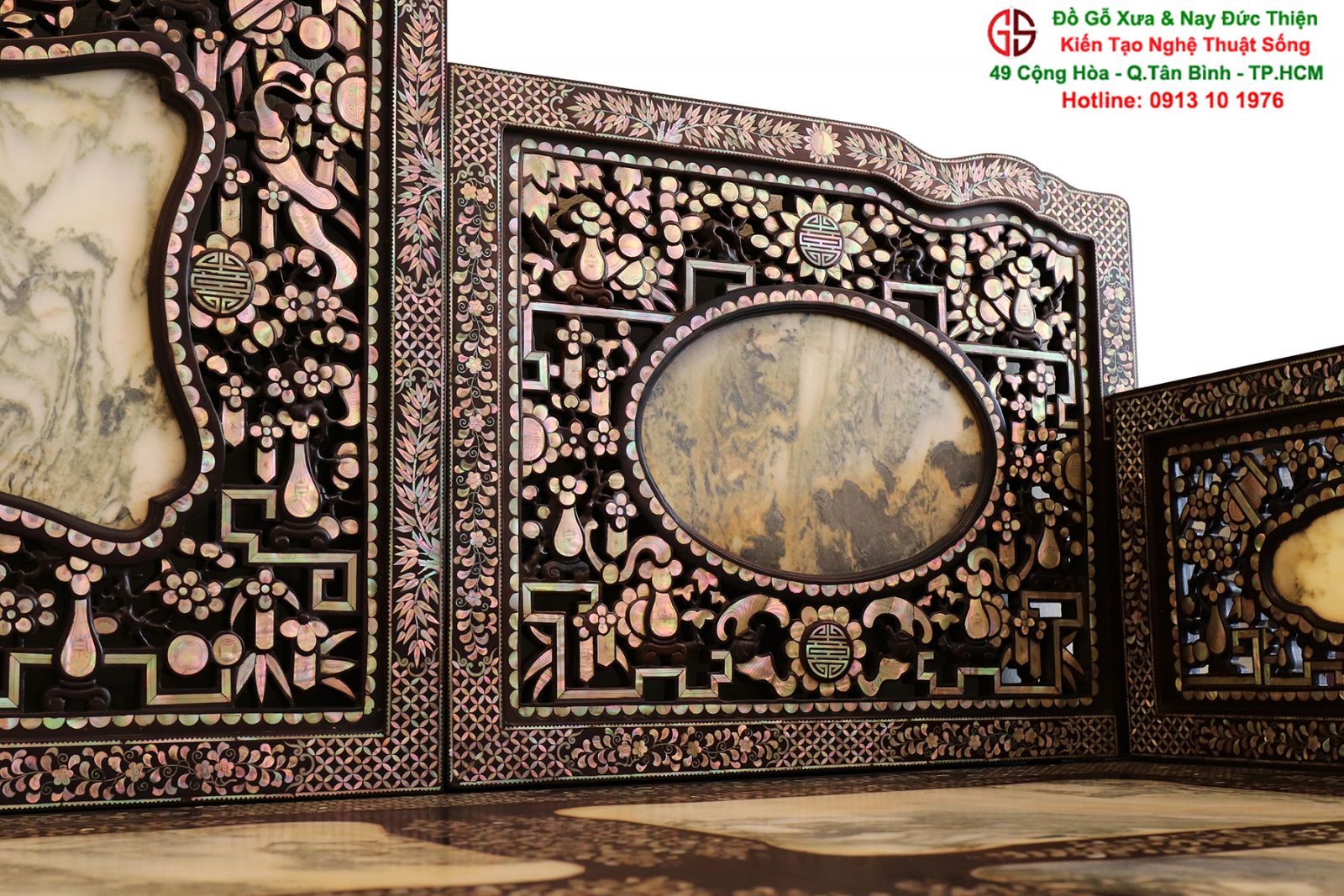 Chất liệu: gỗ gụ + ốc xà cừ + đá tàu tự nhiên.