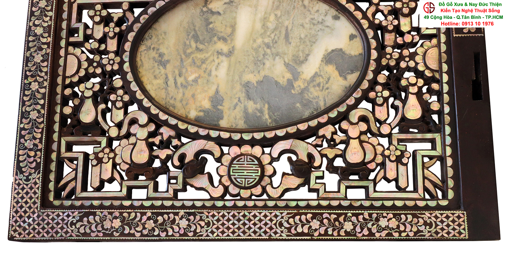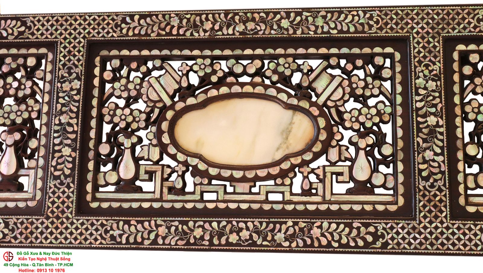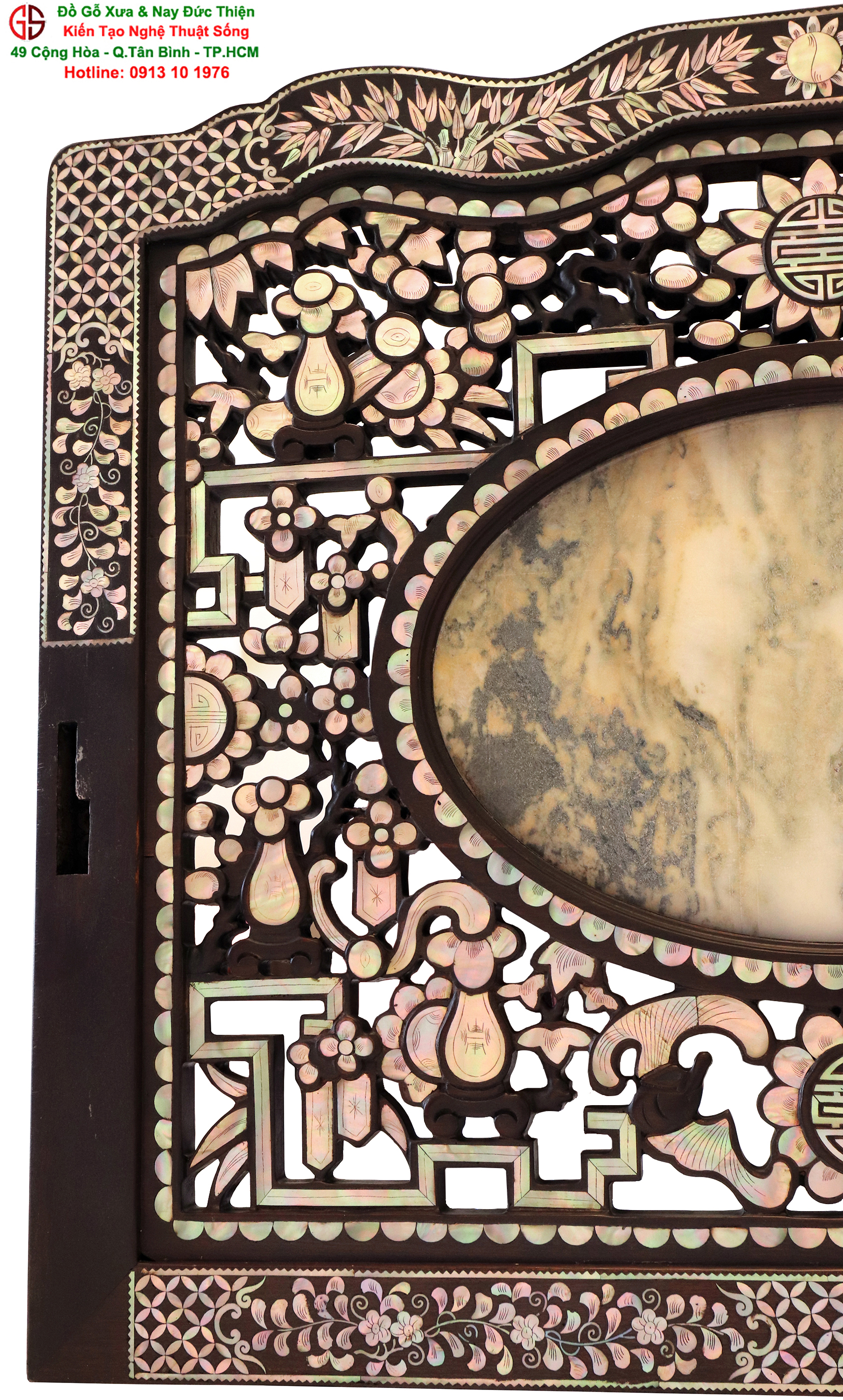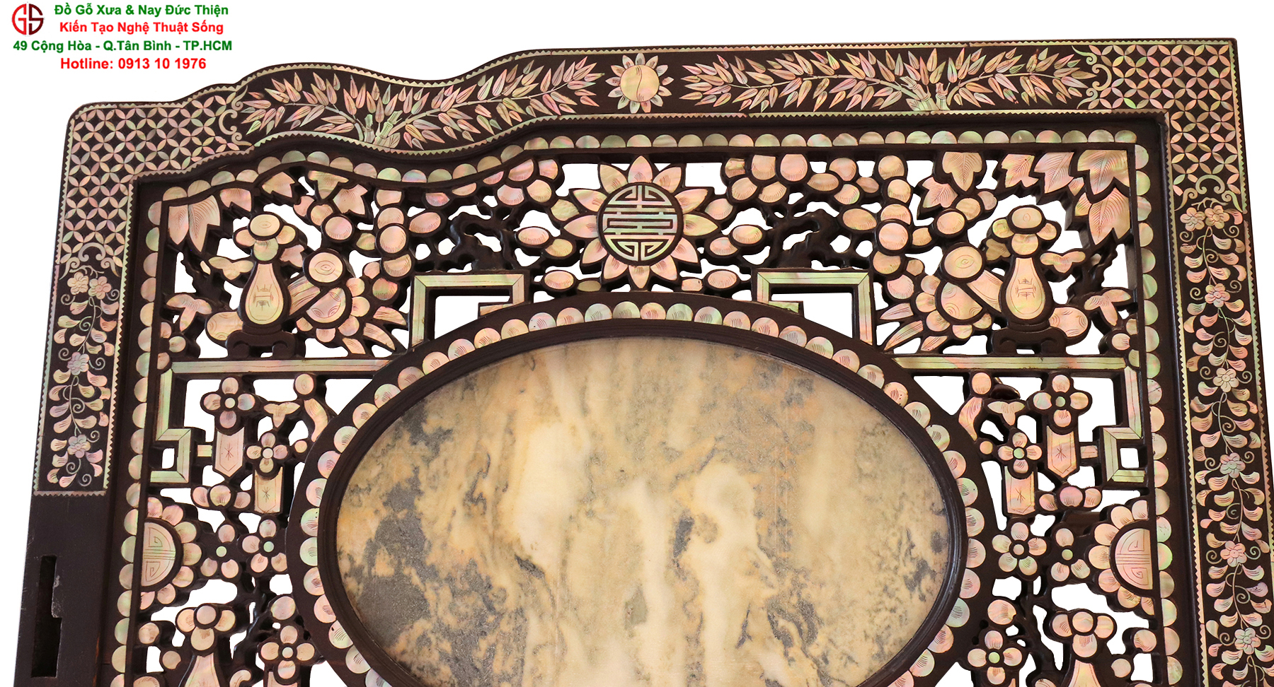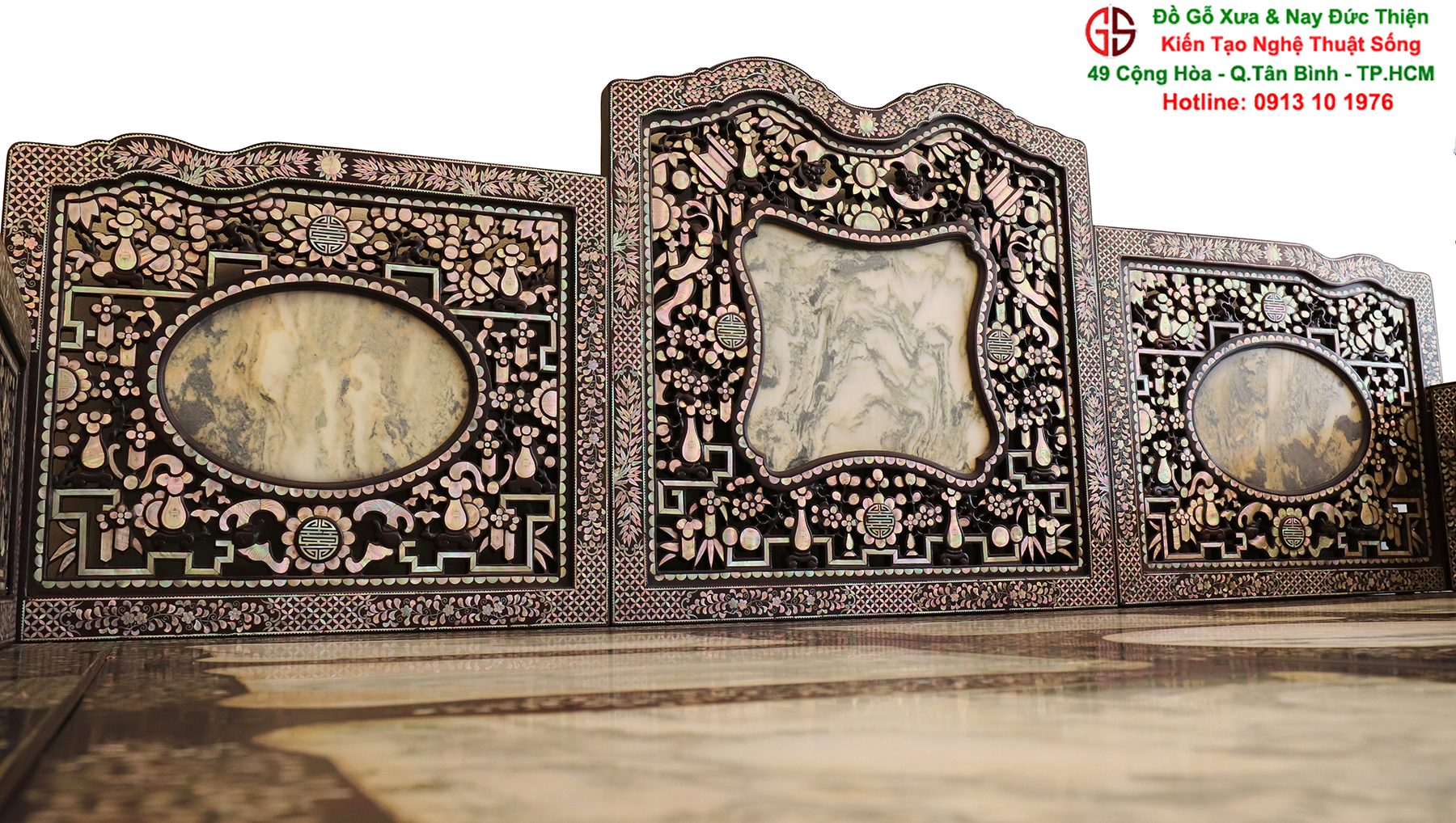 Chất liệu: gỗ gụ + ốc xà cừ + đá tàu tự nhiên.
