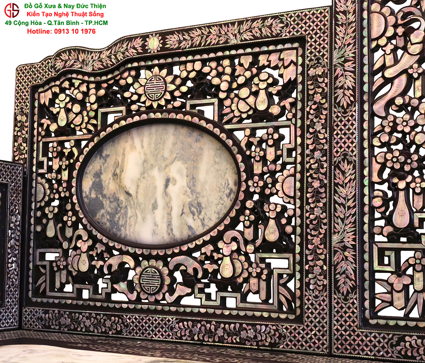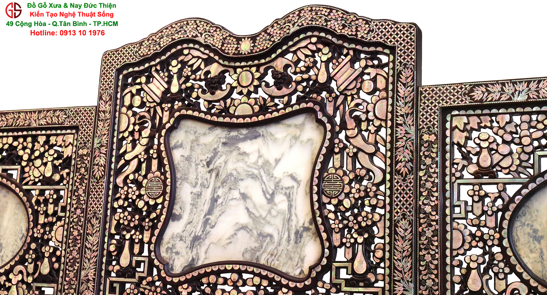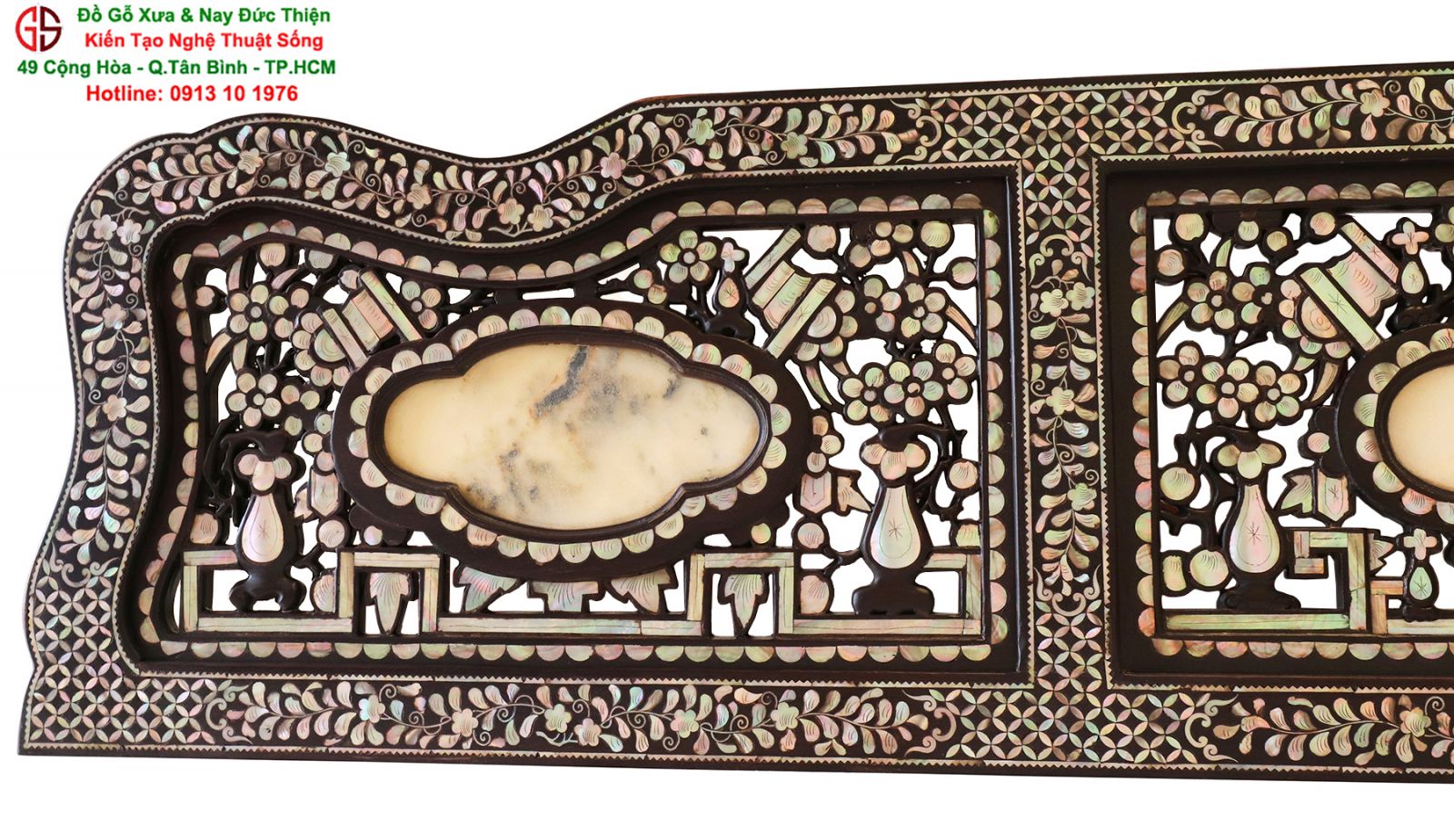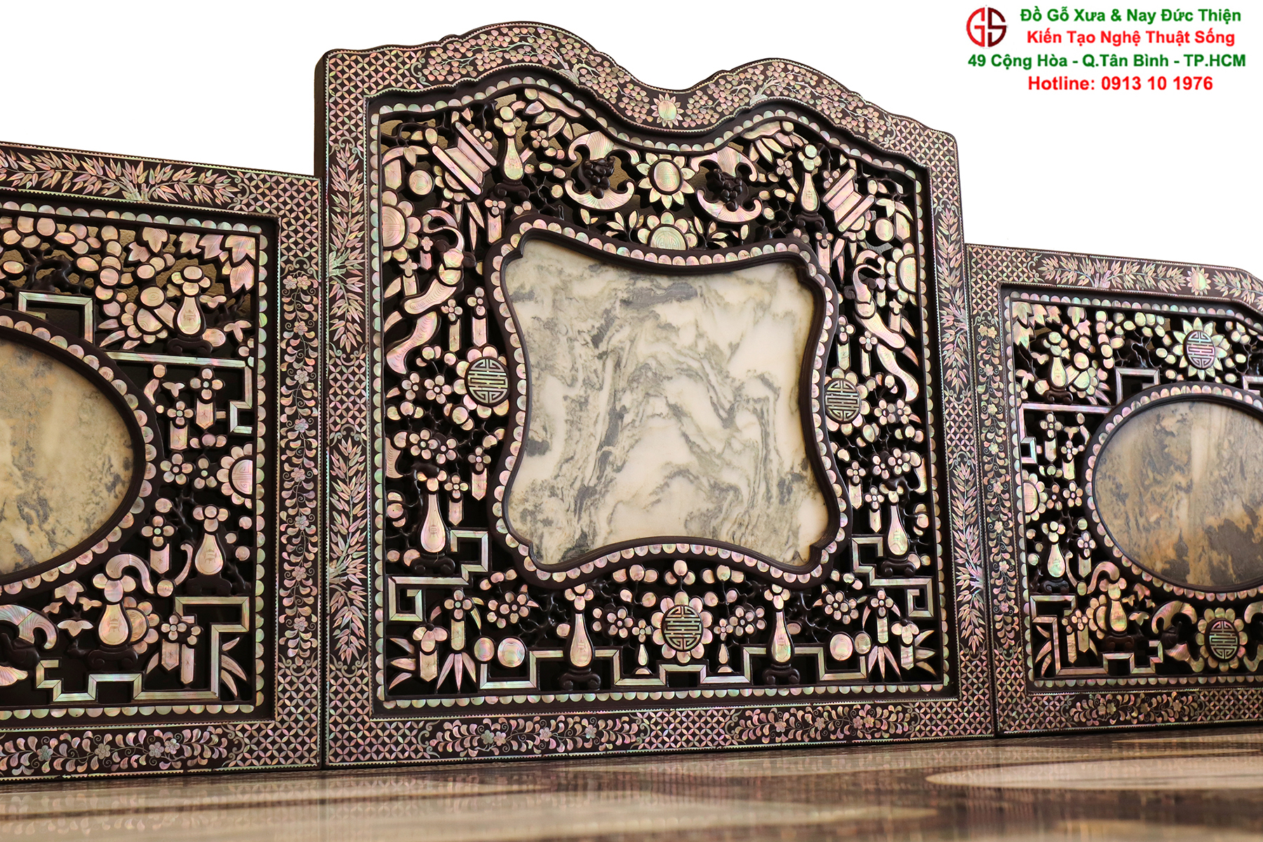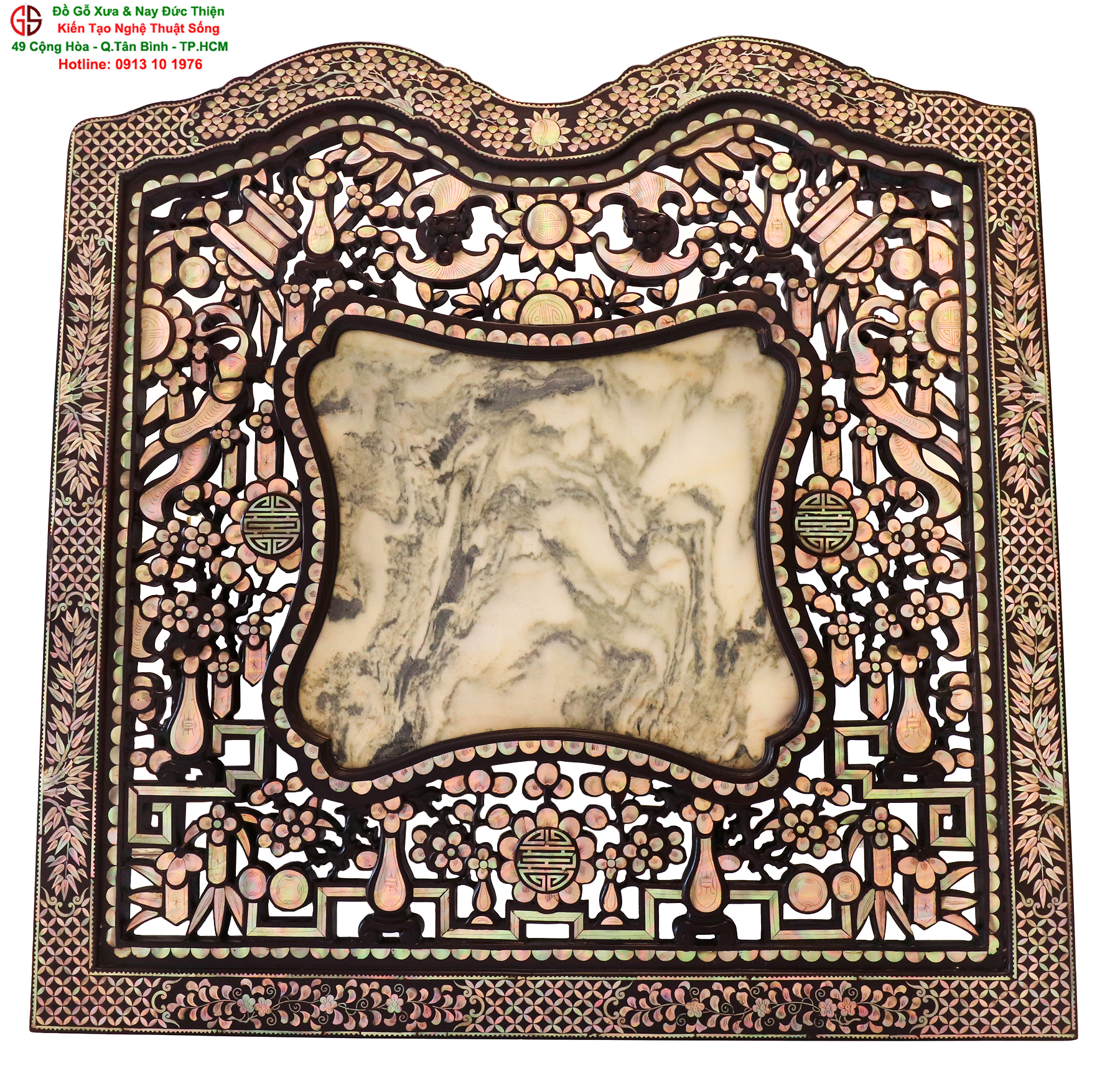 Chất liệu: gỗ gụ + ốc xà cừ + đá tàu tự nhiên.