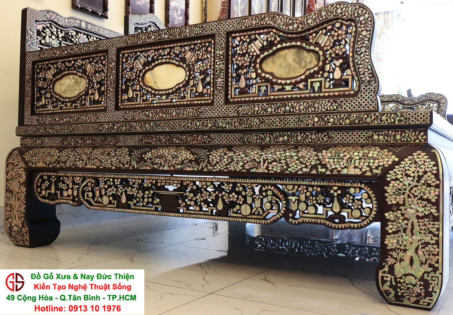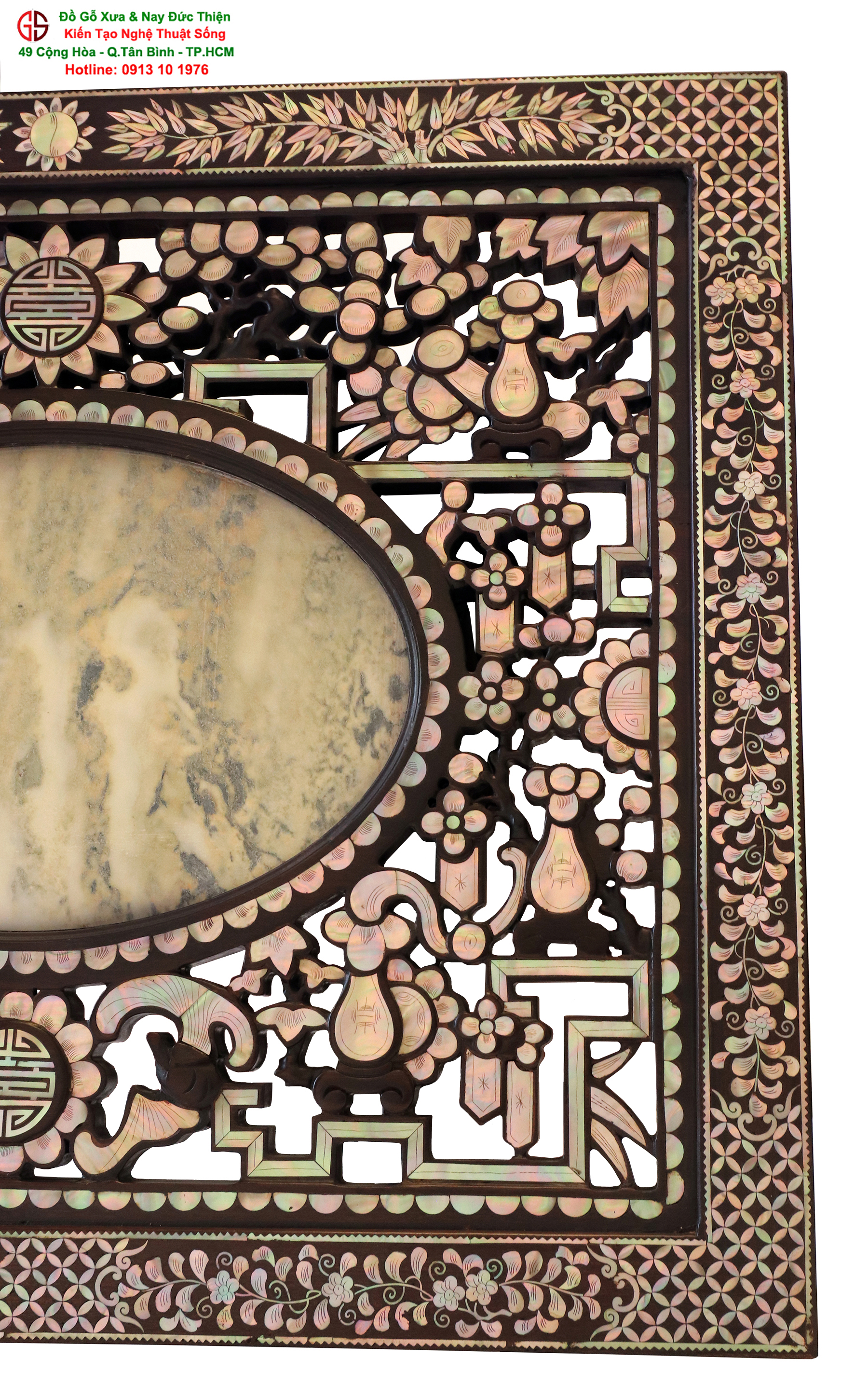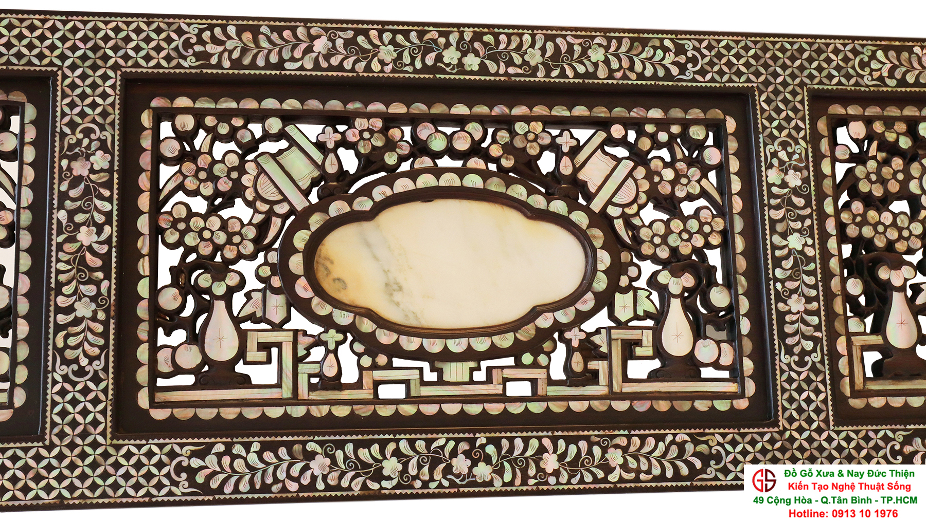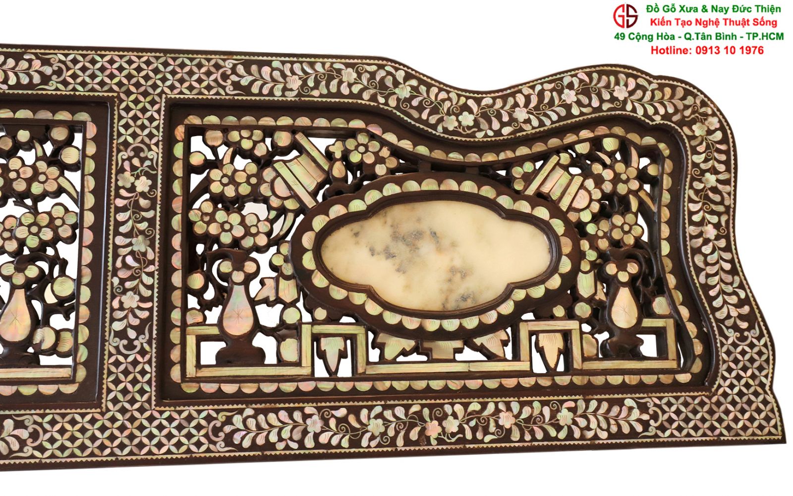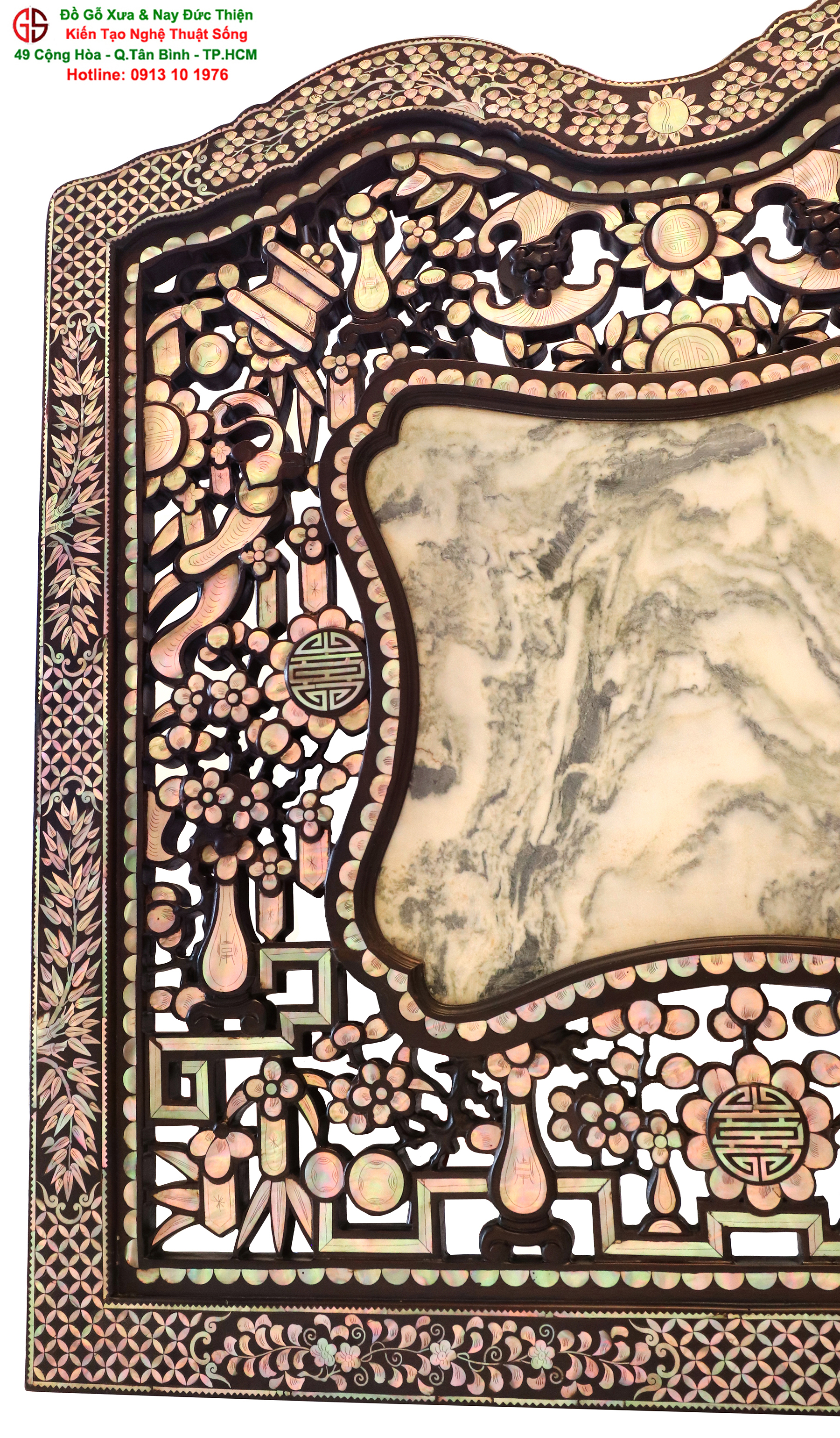 Chất liệu: gỗ gụ + ốc xà cừ + đá tàu tự nhiên.