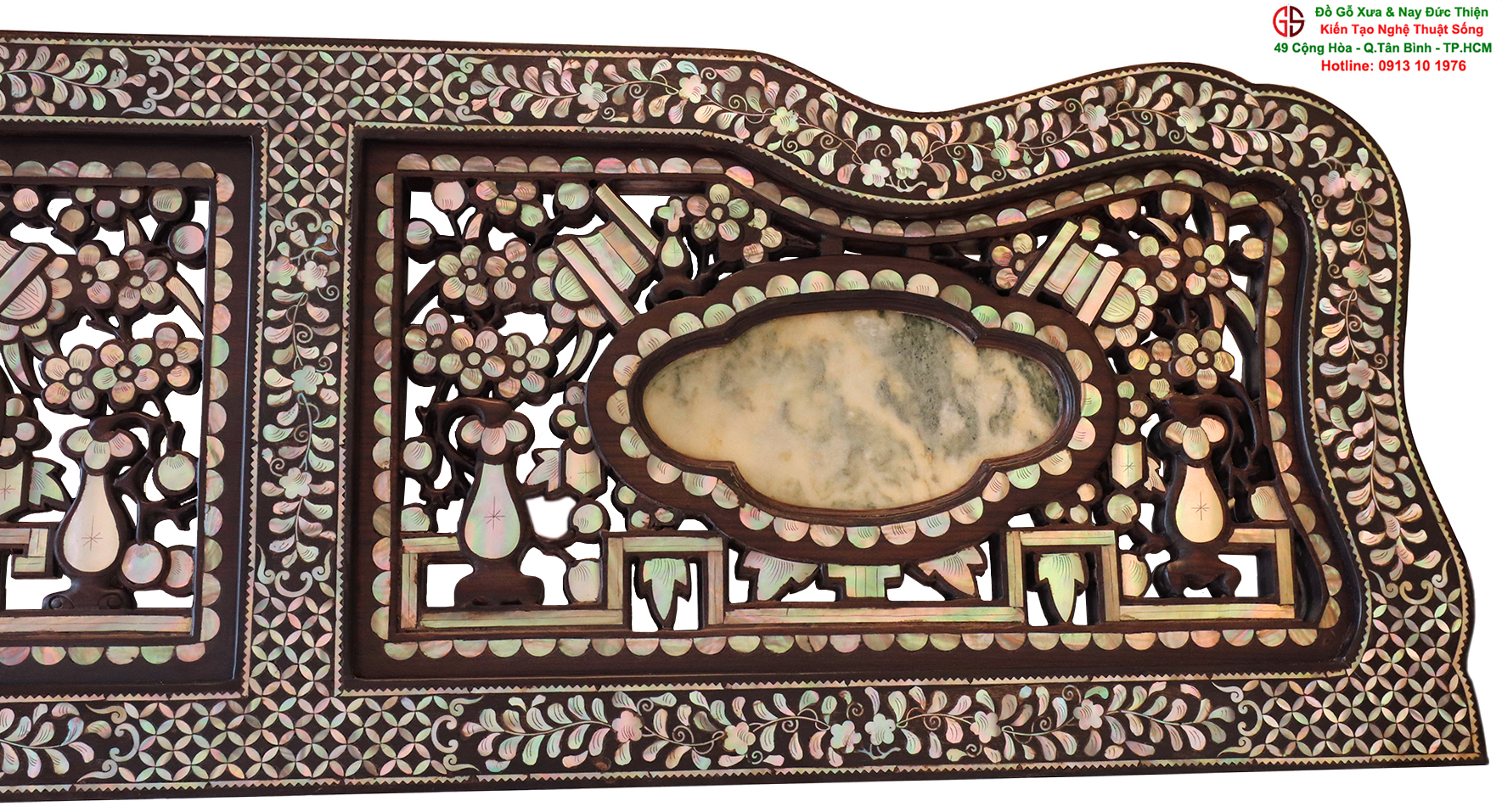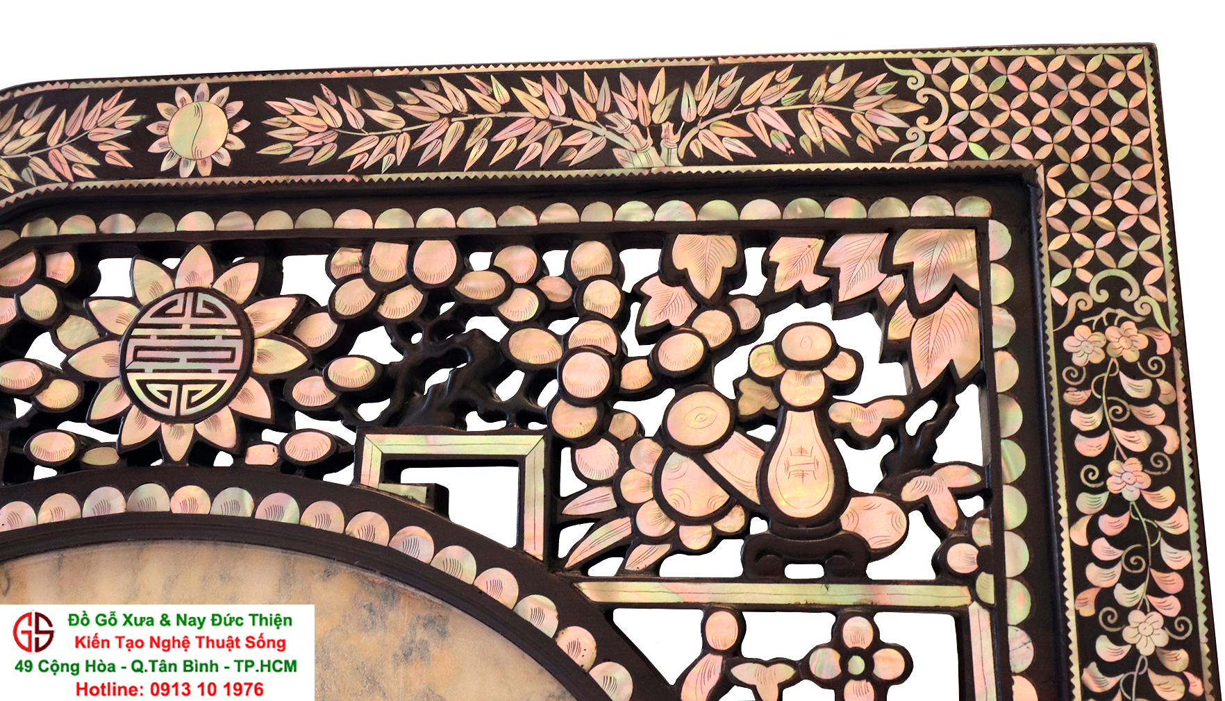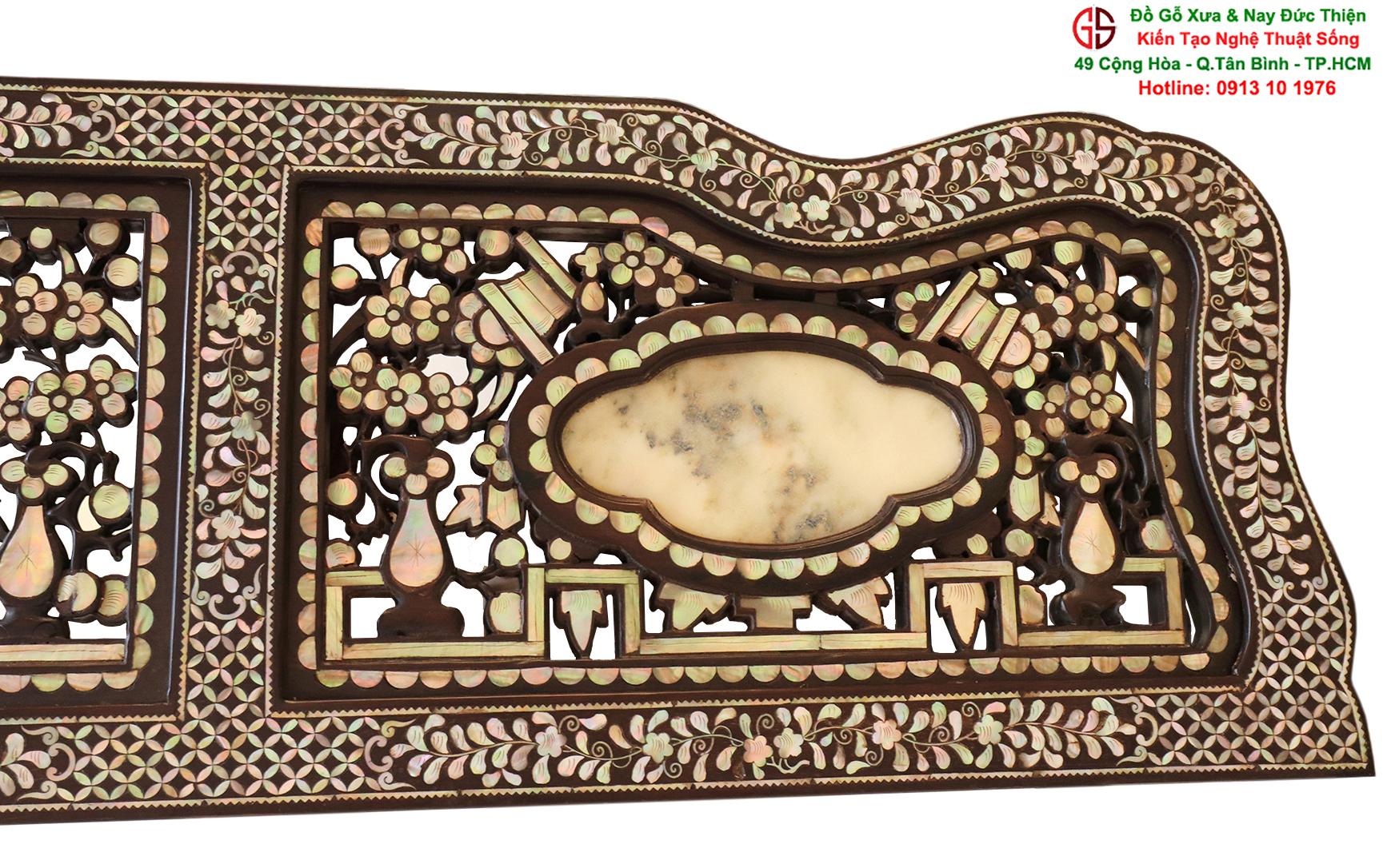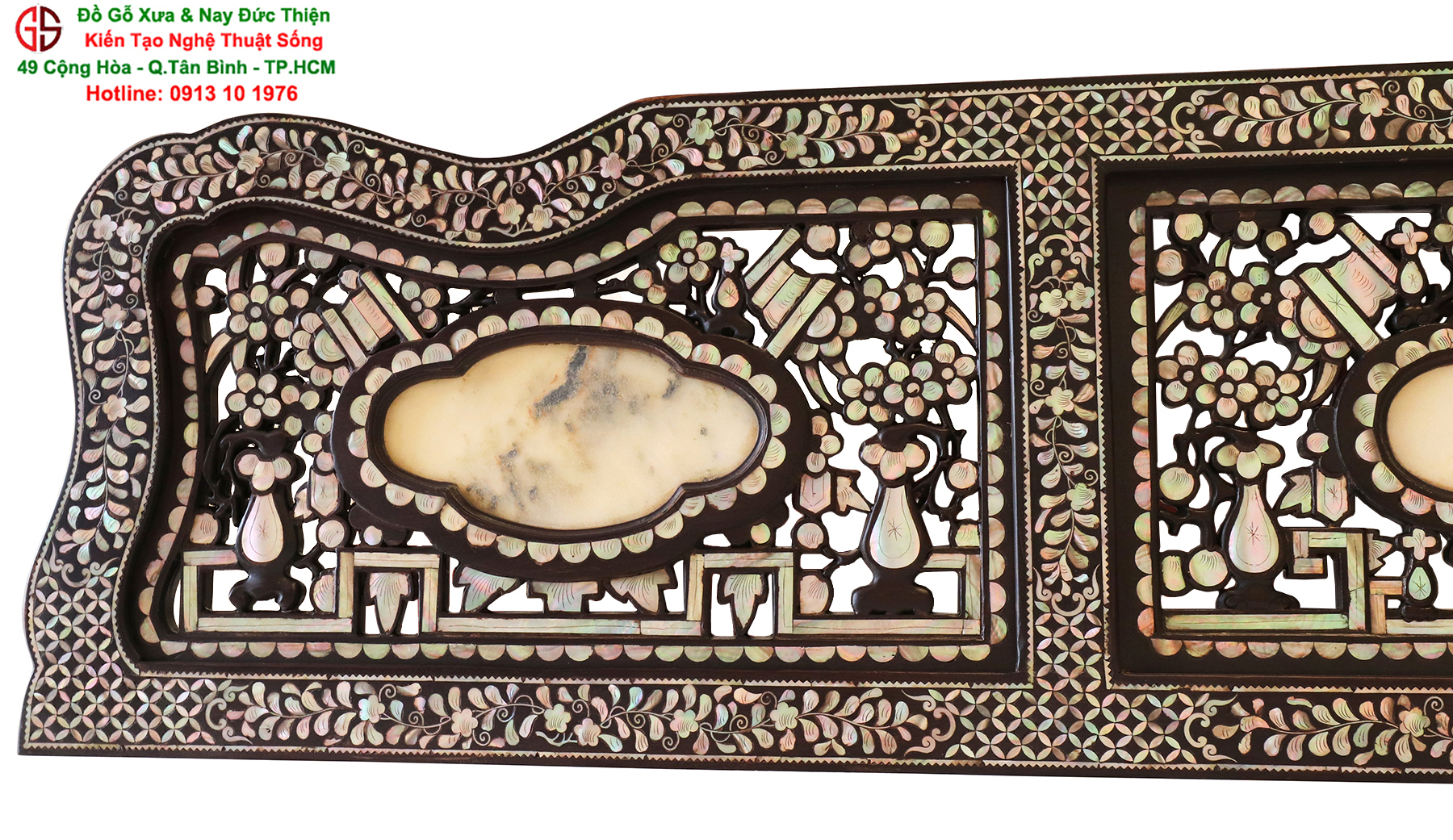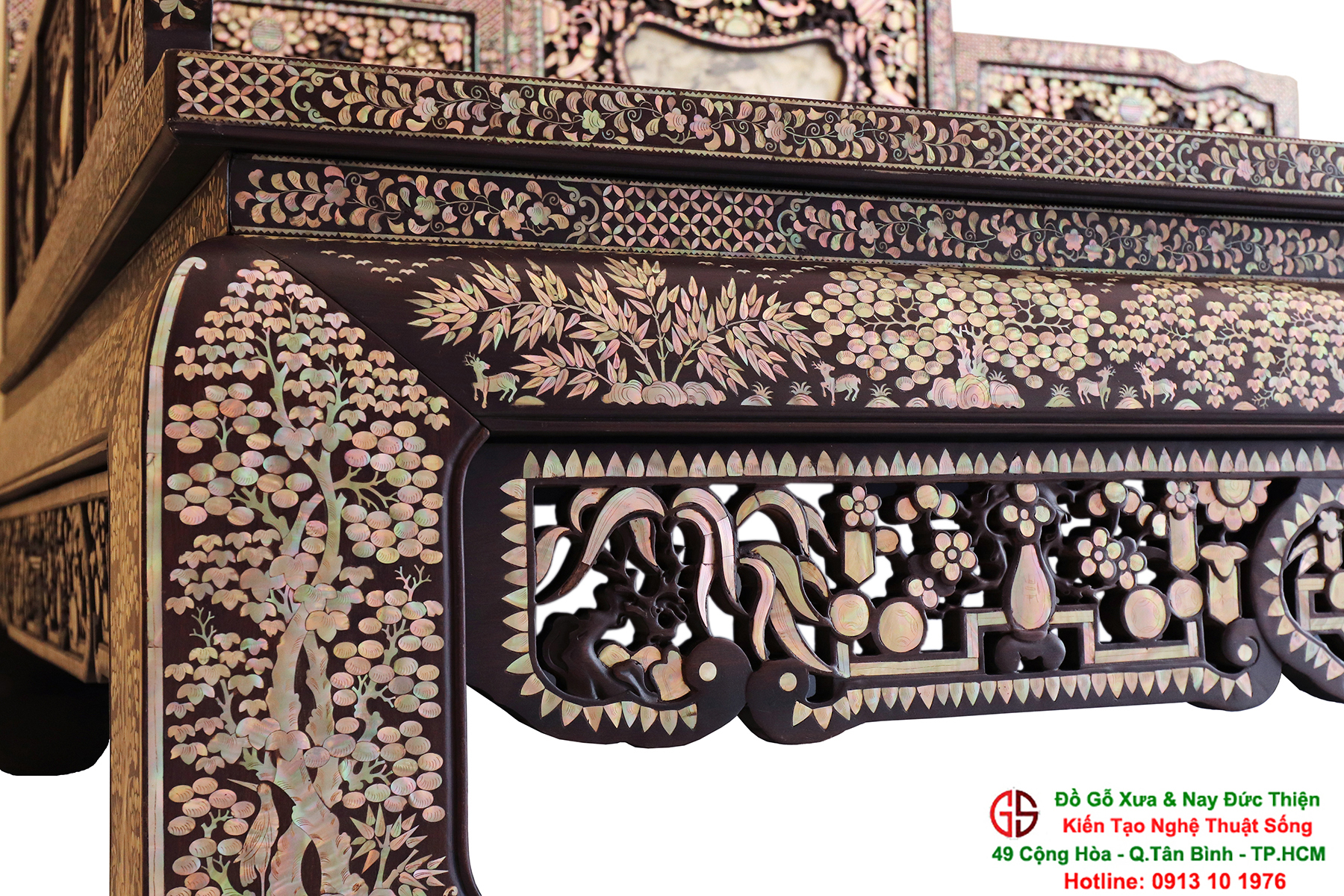 Chất liệu: gỗ gụ + ốc xà cừ + đá tàu tự nhiên.