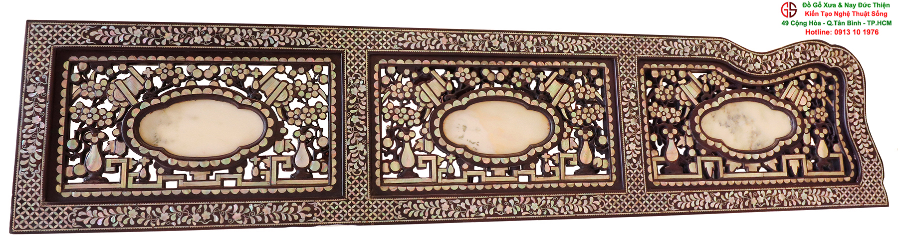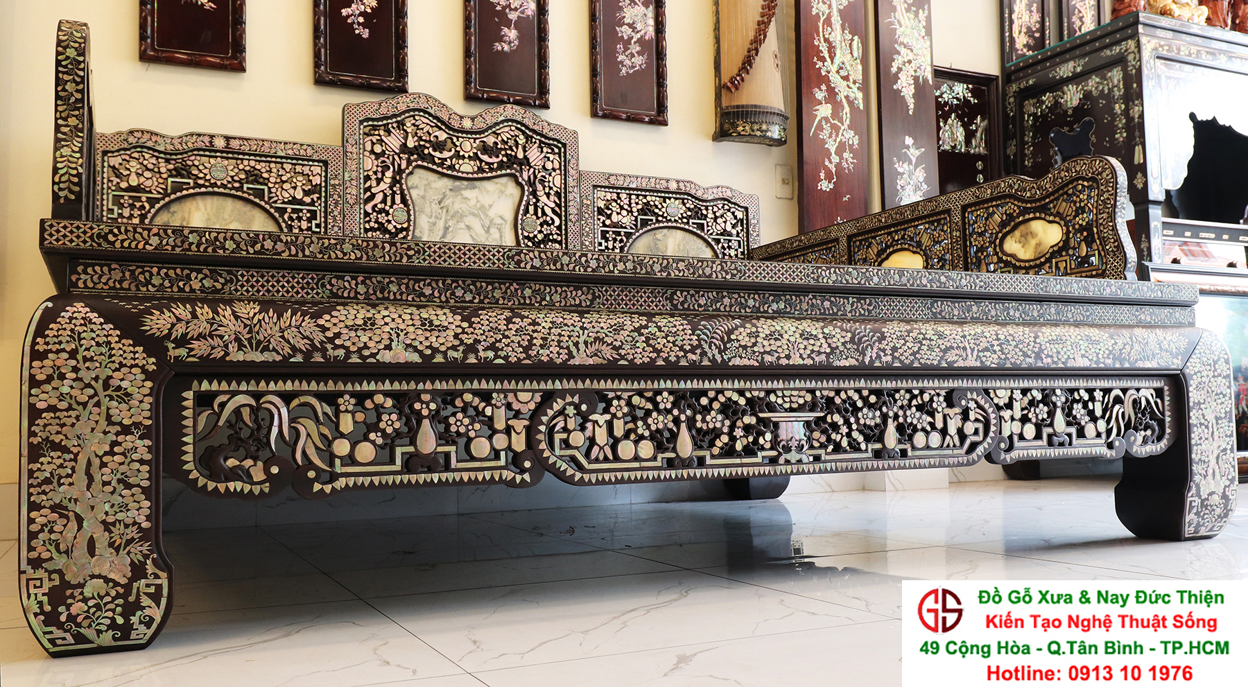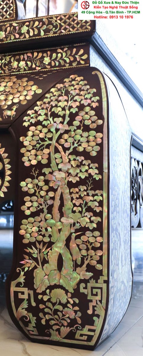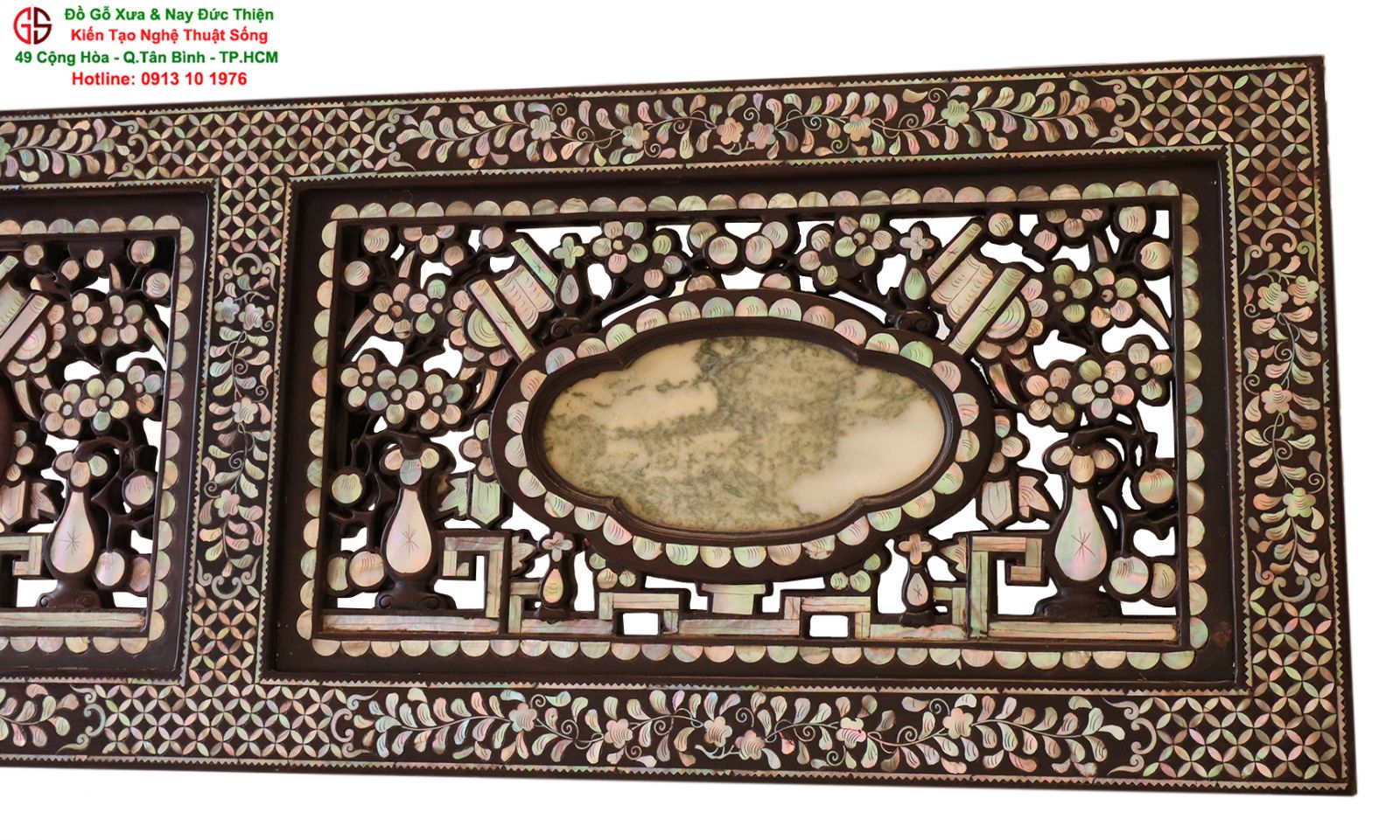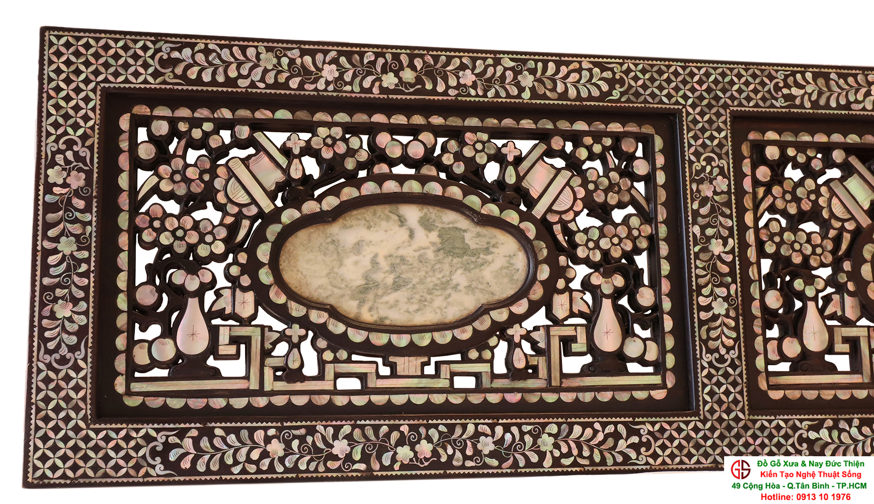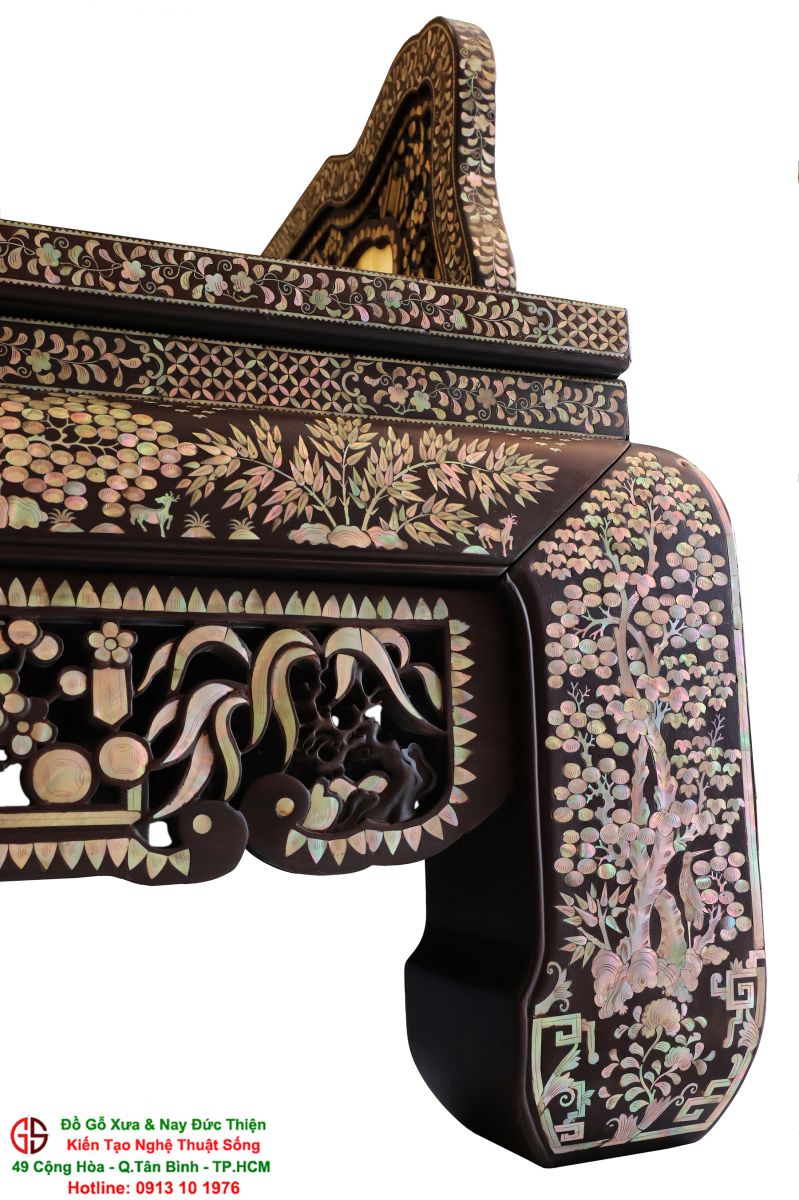 Chất liệu: gỗ gụ + ốc xà cừ + đá tàu tự nhiên.