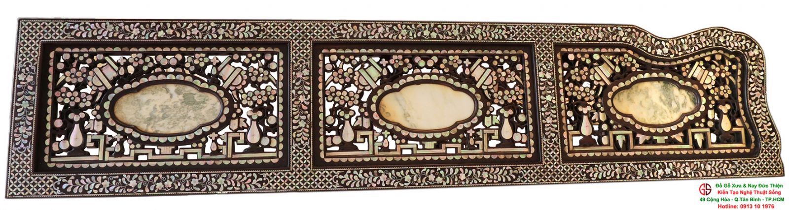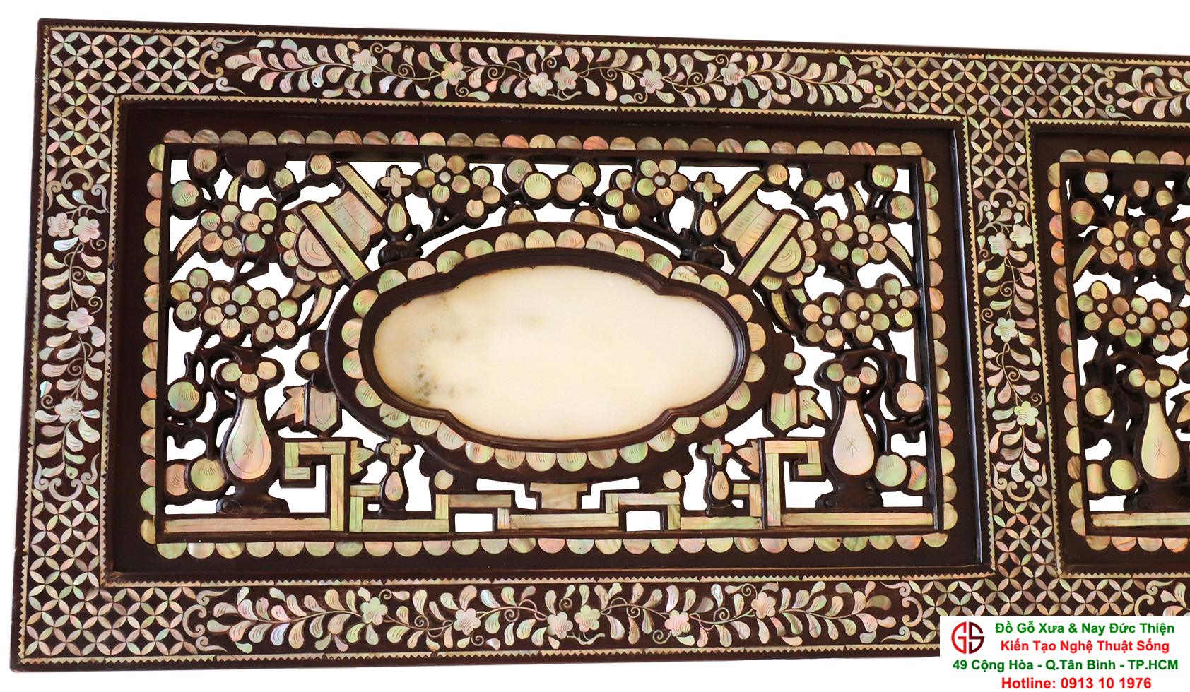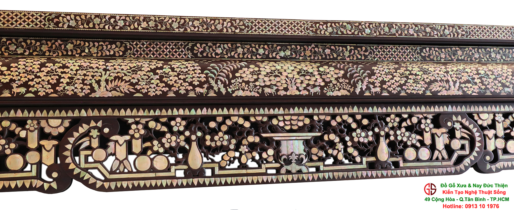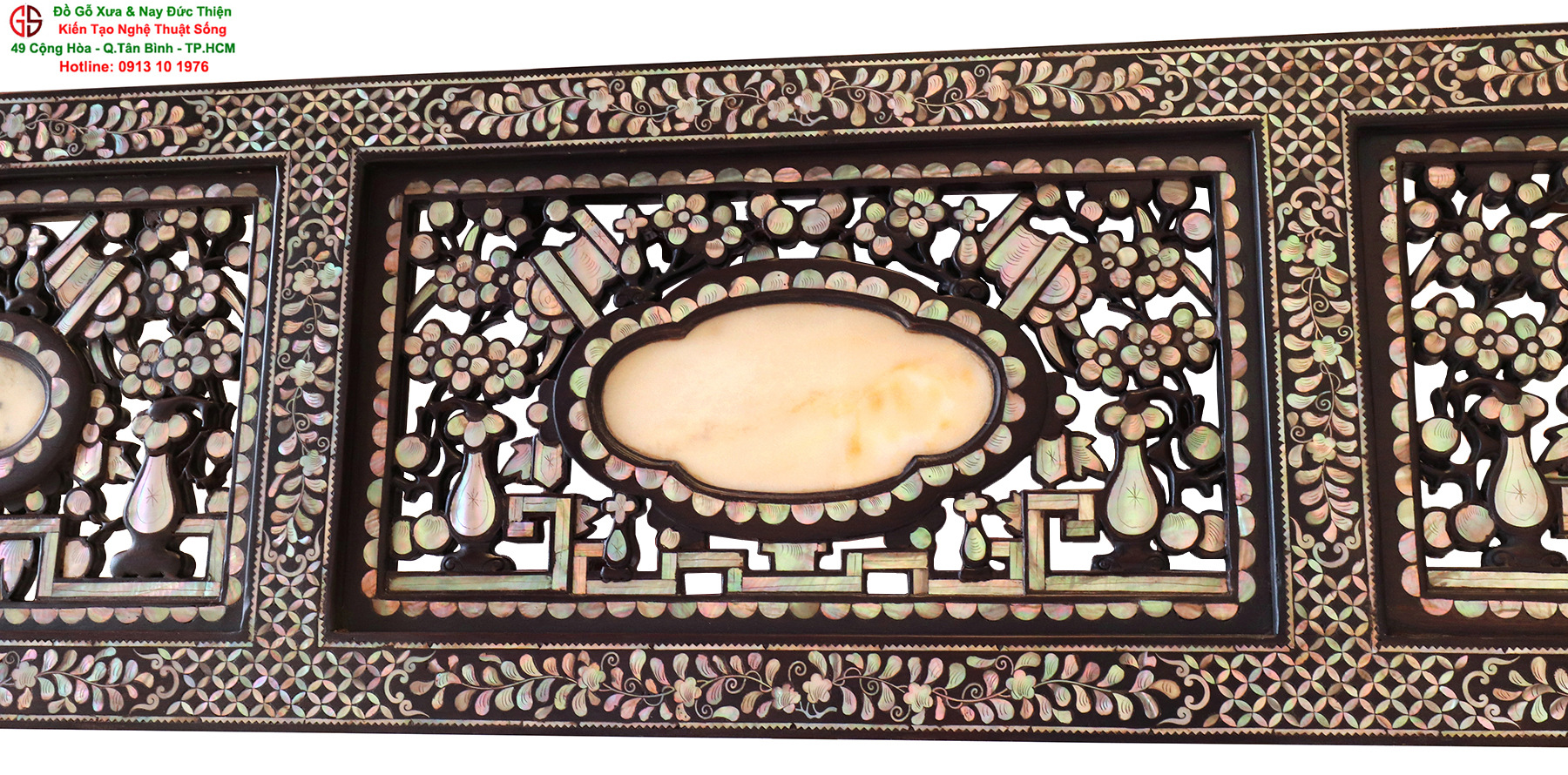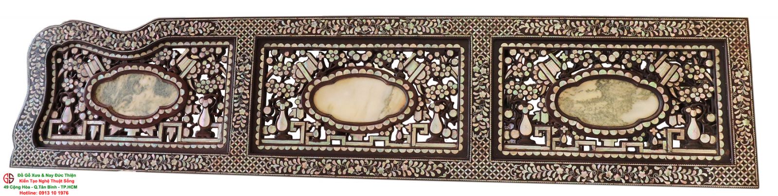 Chất liệu: gỗ gụ + ốc xà cừ + đá tàu tự nhiên.