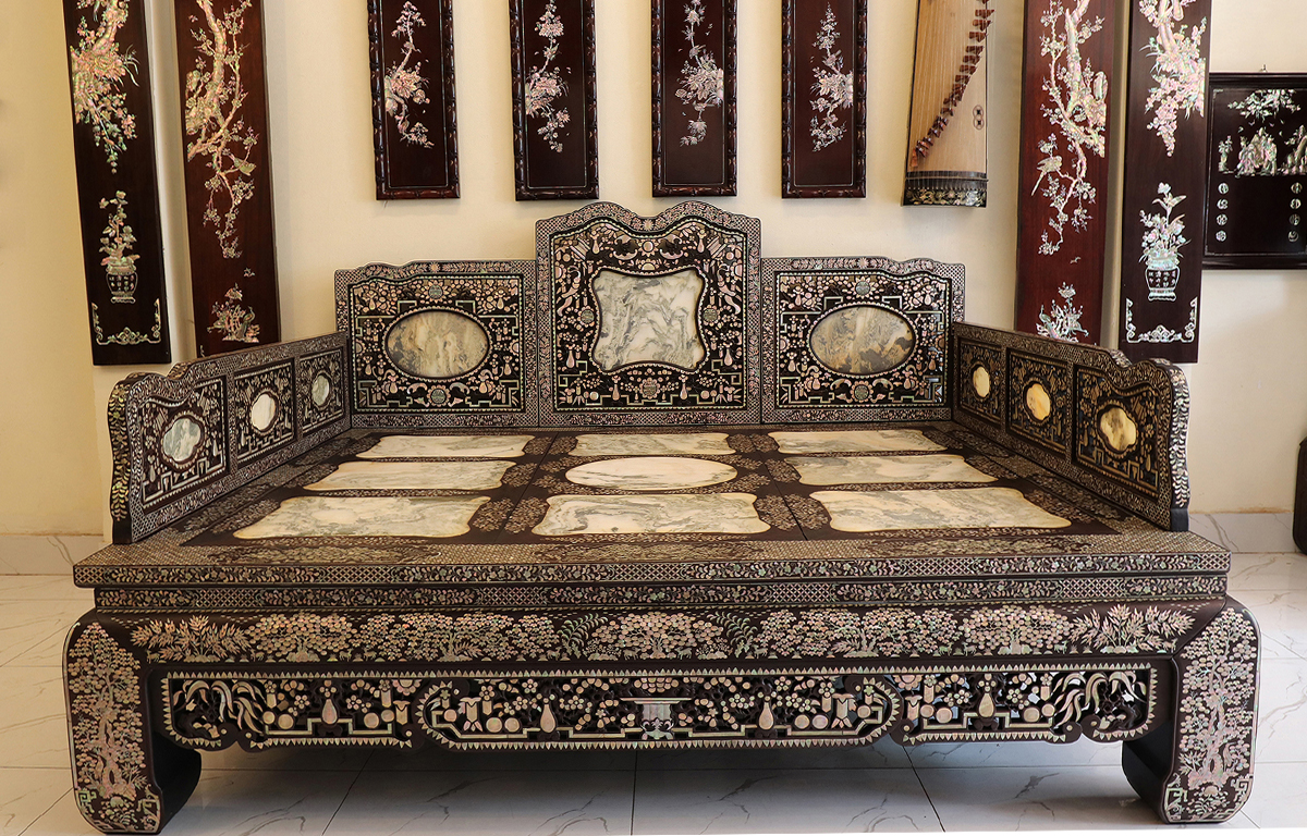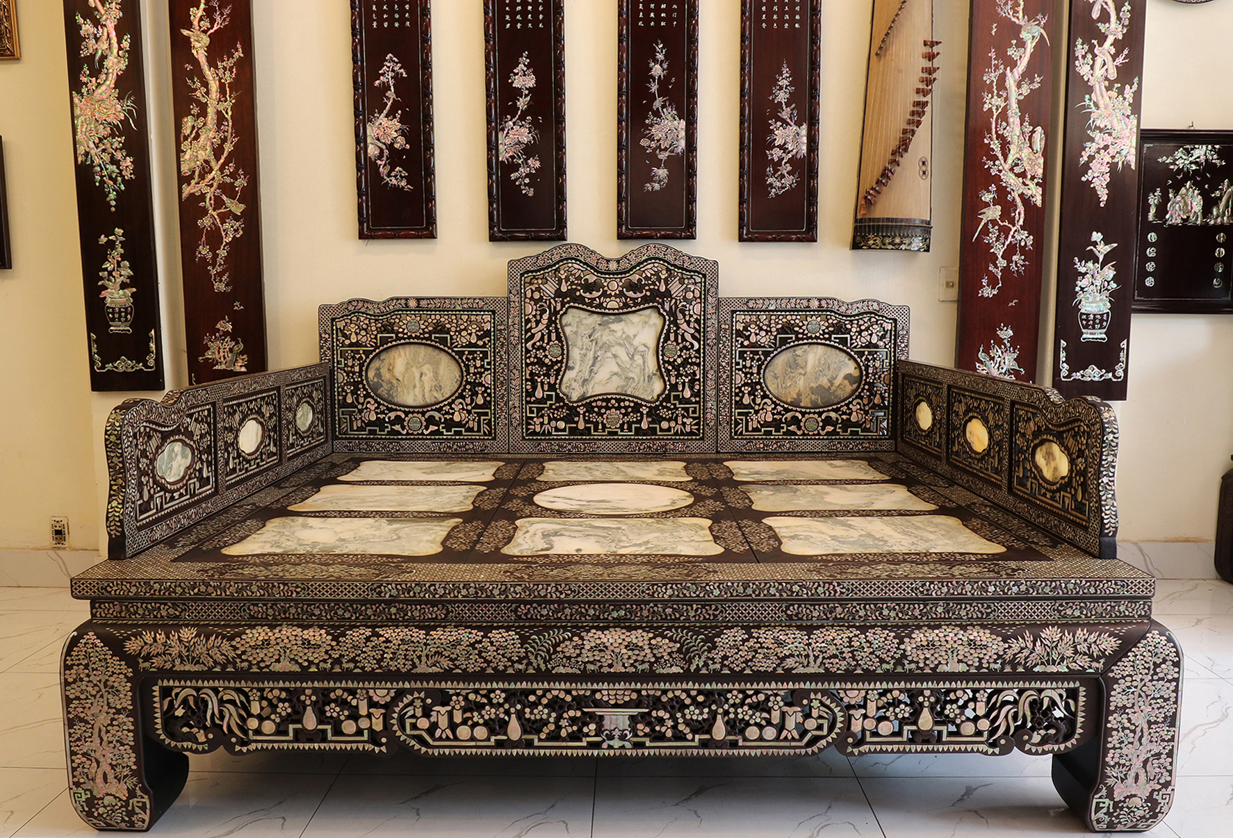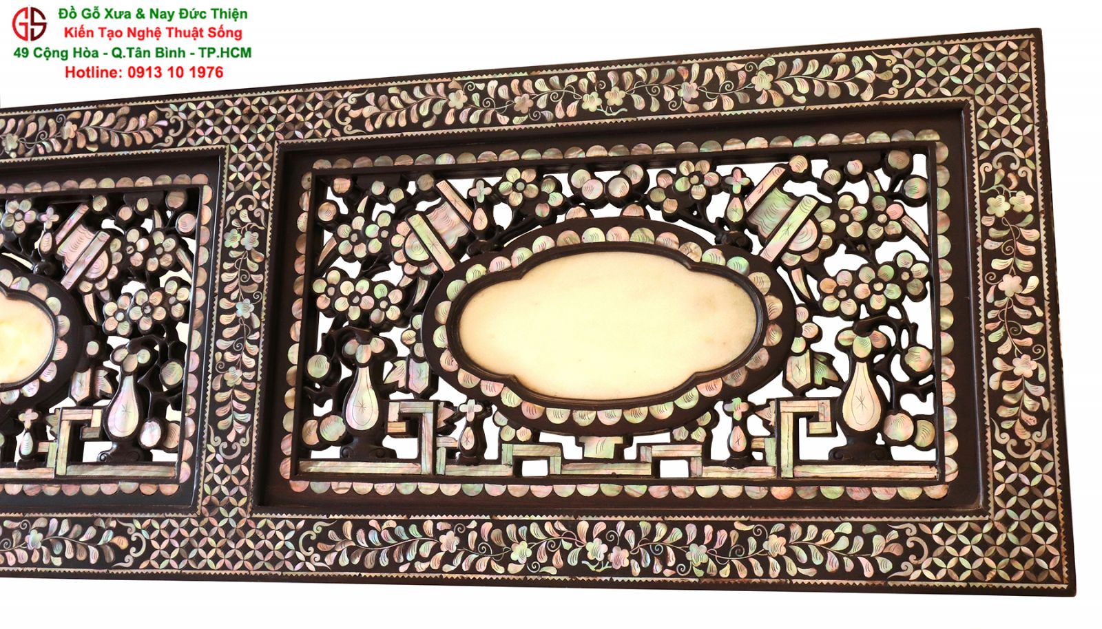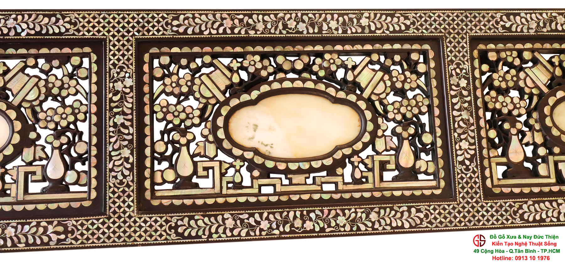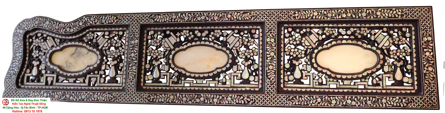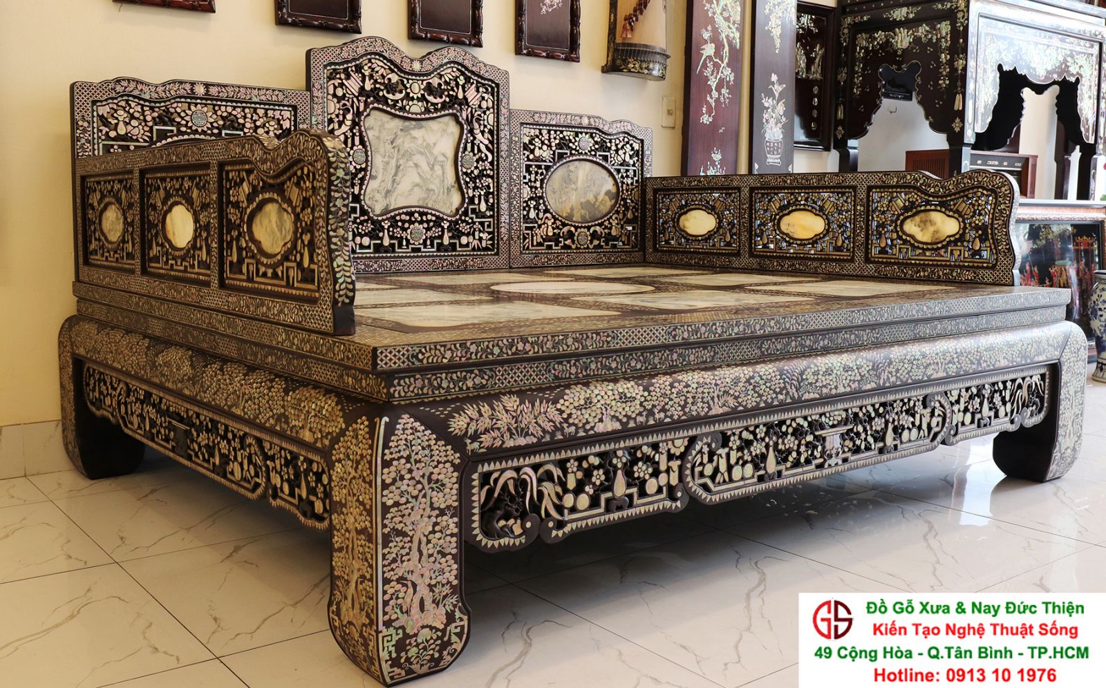 Chất liệu: gỗ gụ + ốc xà cừ + đá tàu tự nhiên.