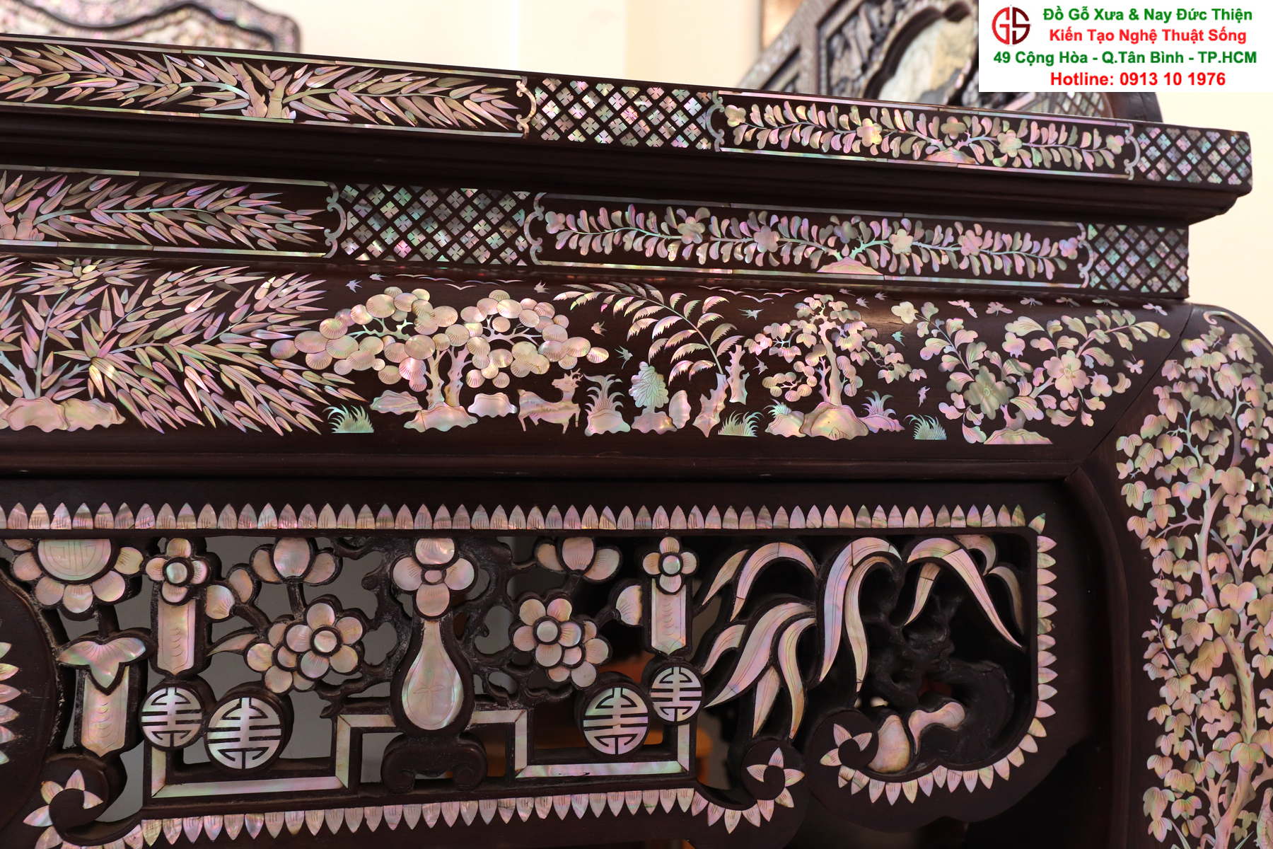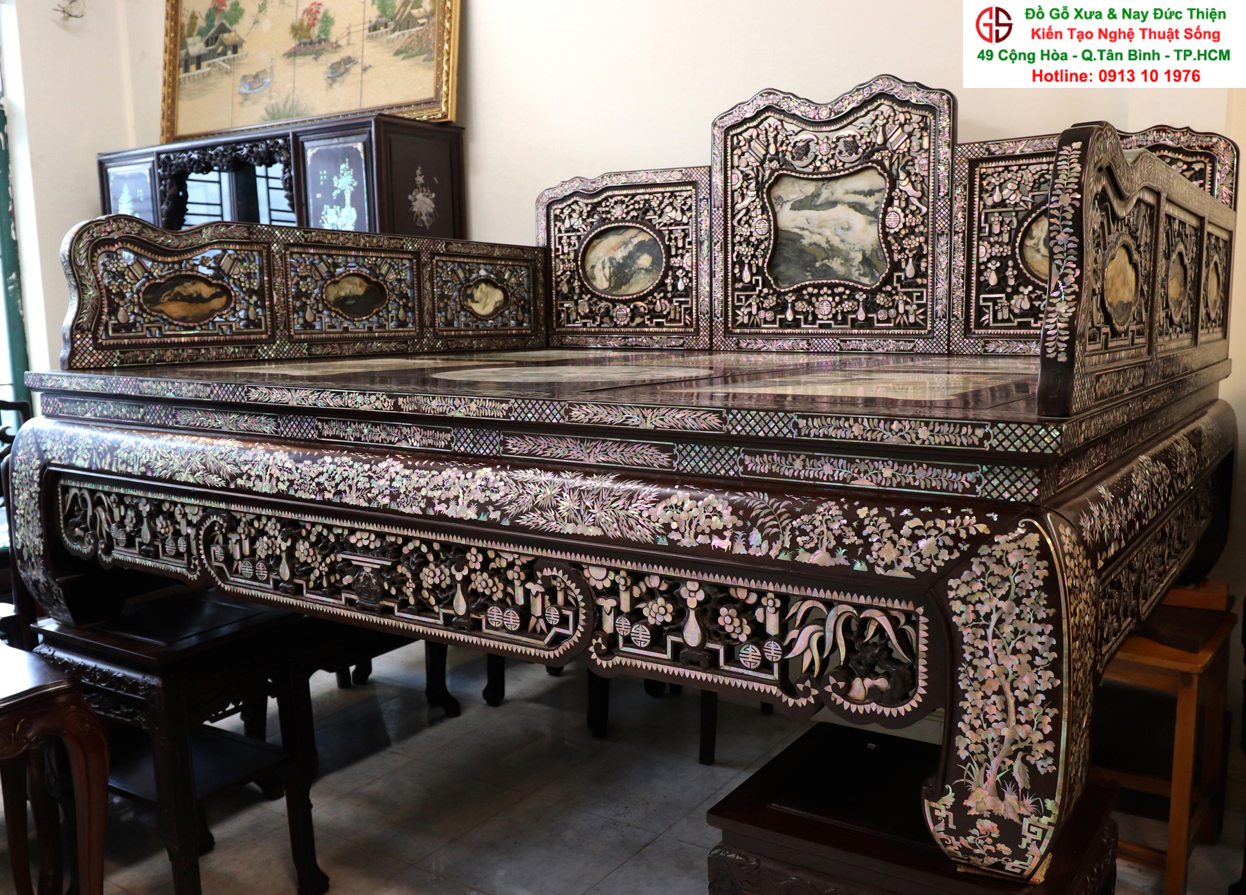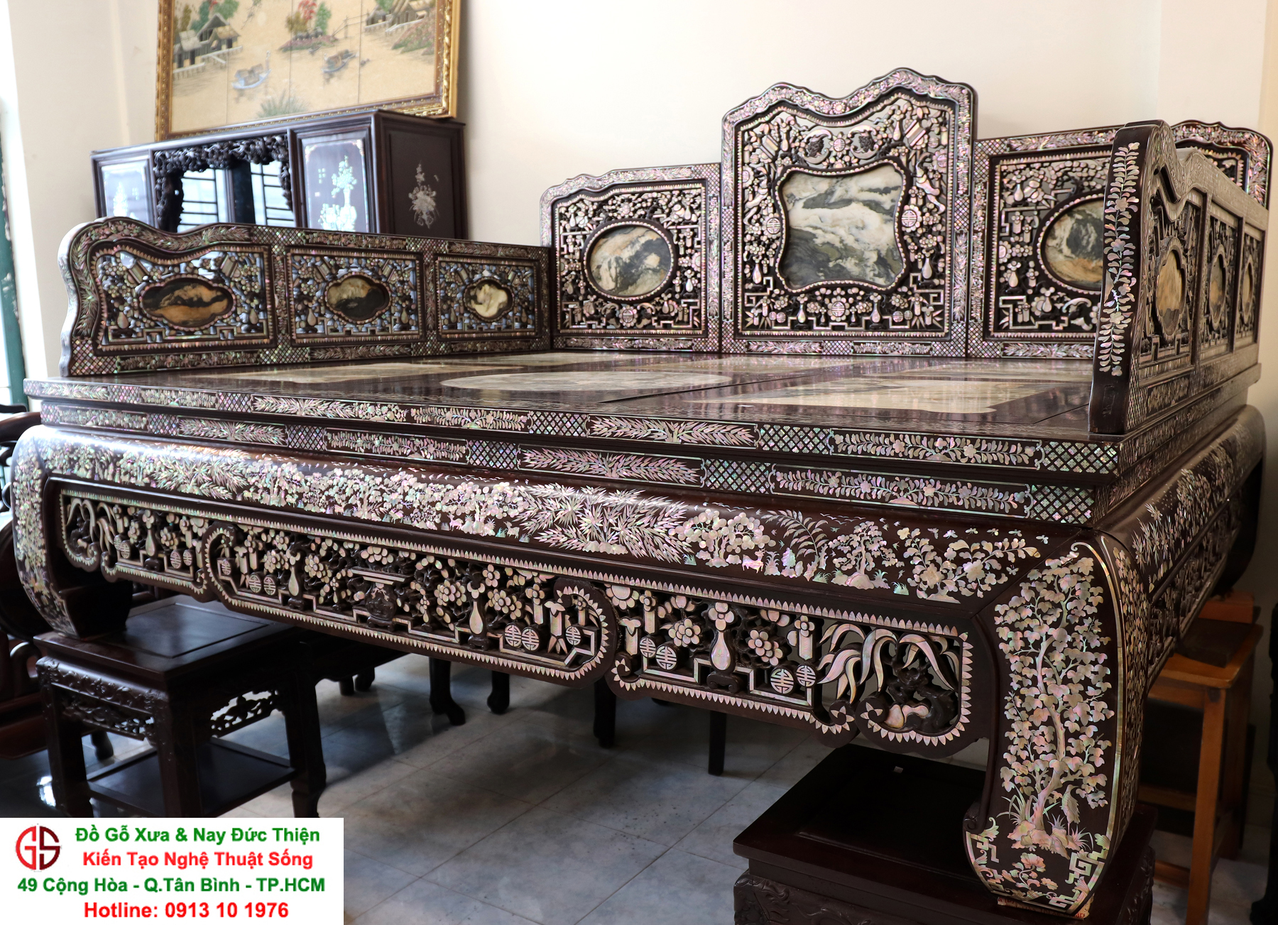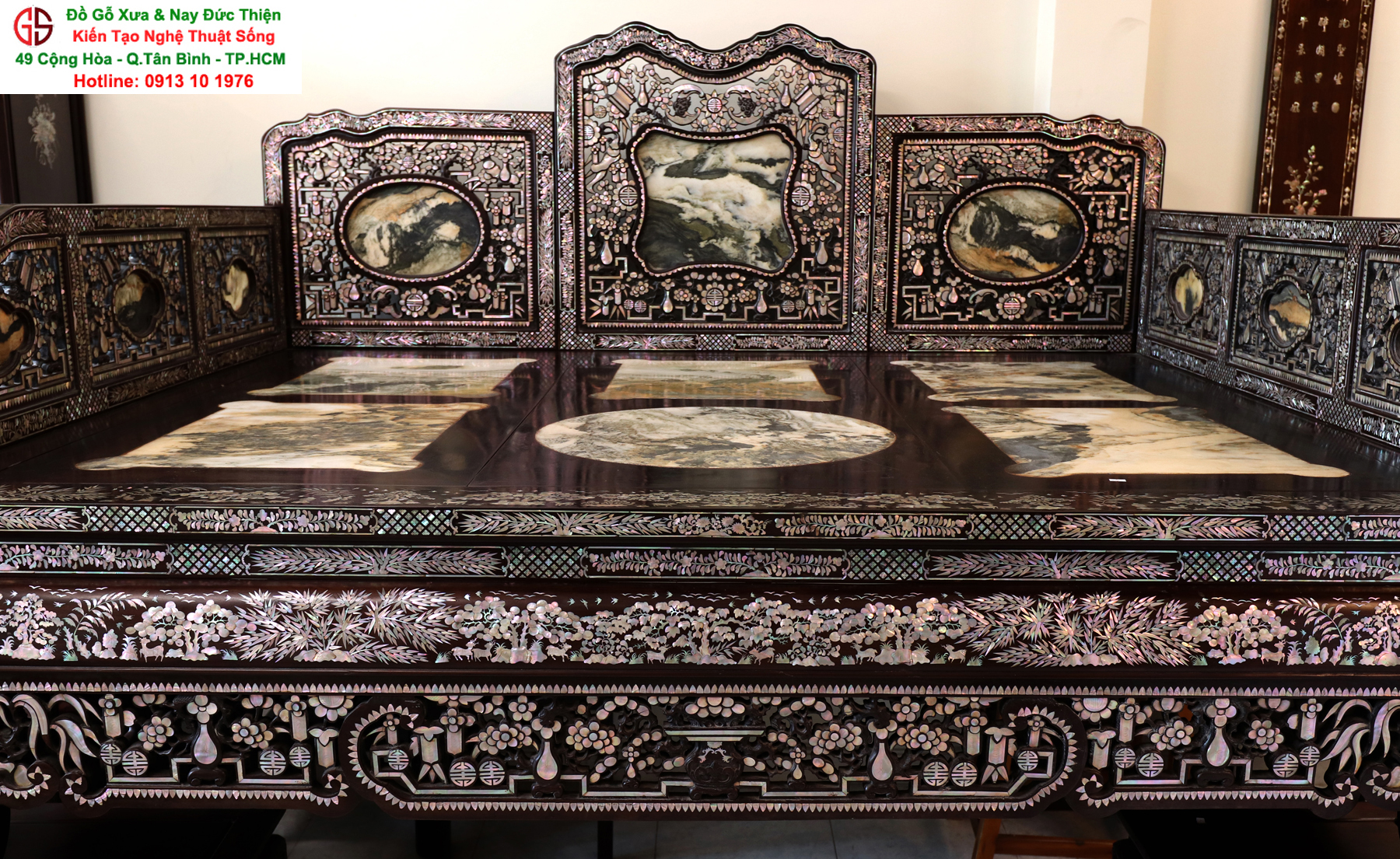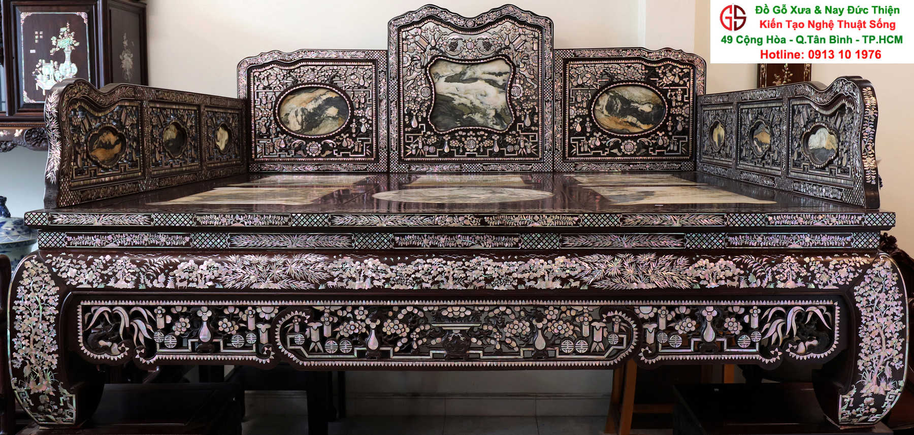 - Bàn ghế Louis, đôn trống gỗ trắc, bộ bàn ăn cẩn ốc, bàn ghế phương kỷ, bàn trung đường cẩn ốc xà cừ