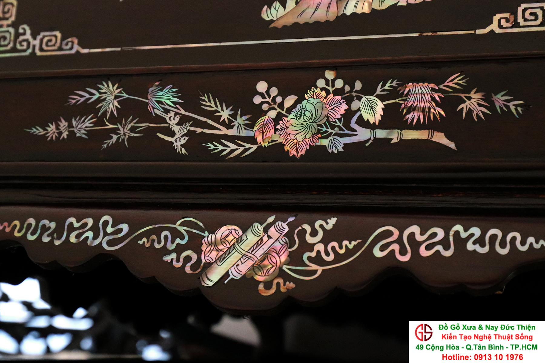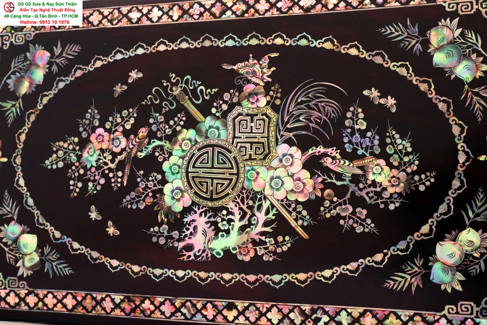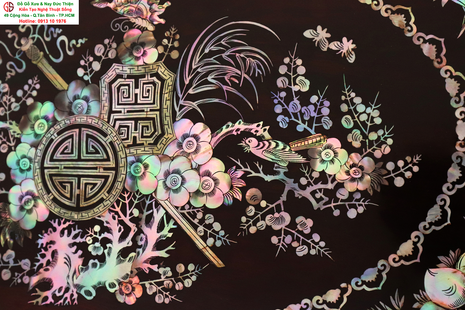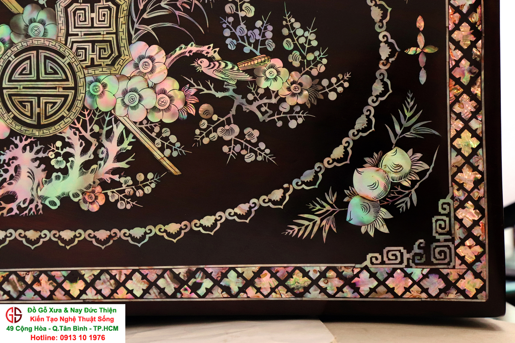+ Chất liệu: Gỗ gụ + khảm ốc xà cừ