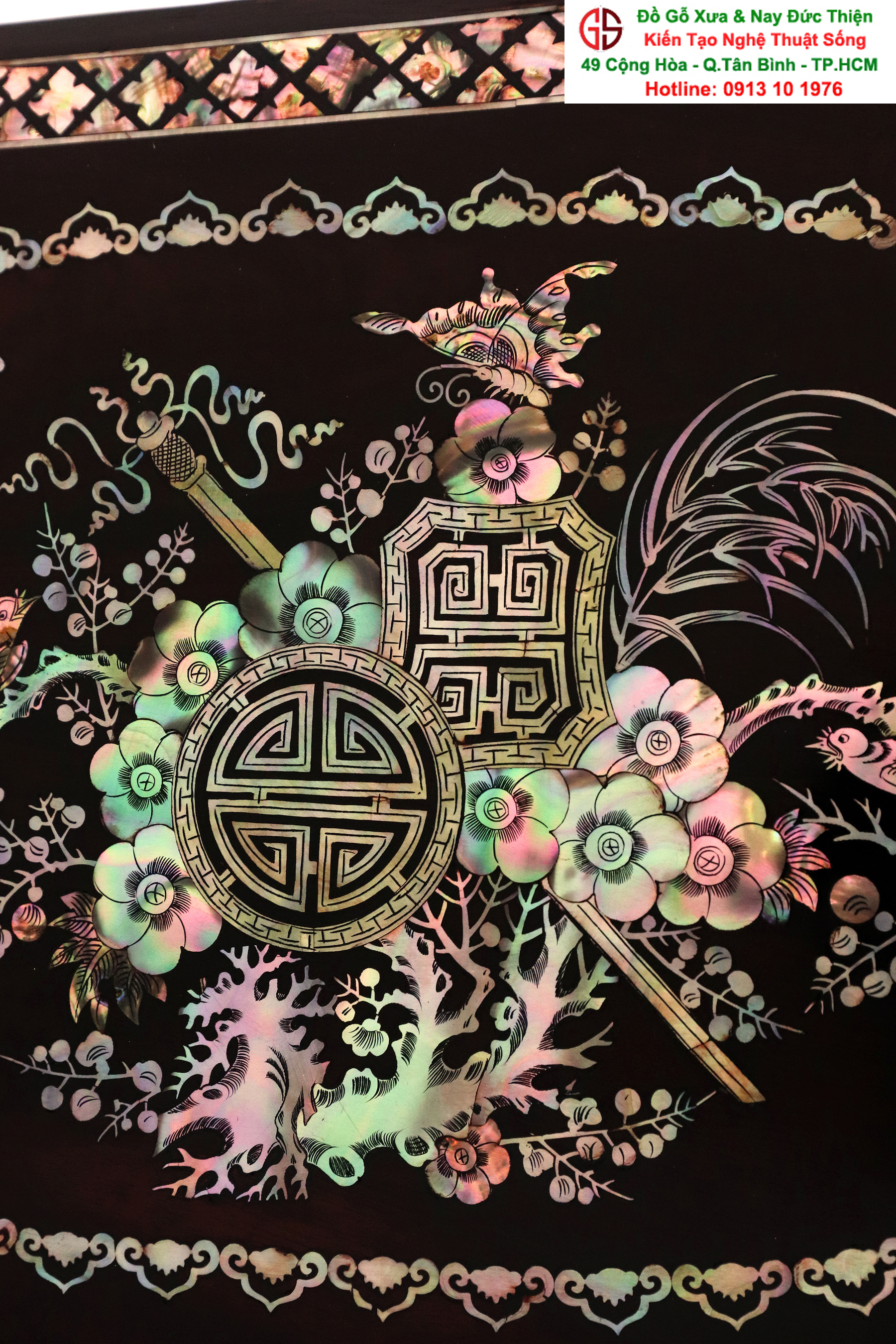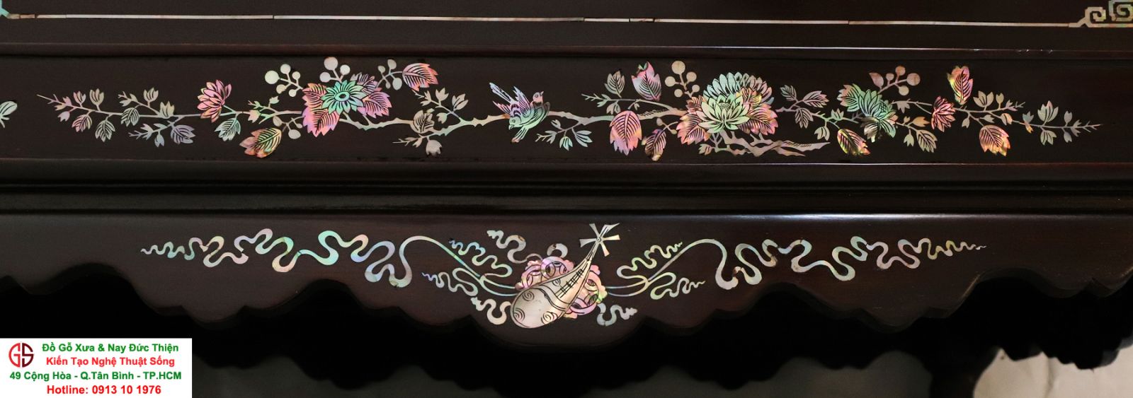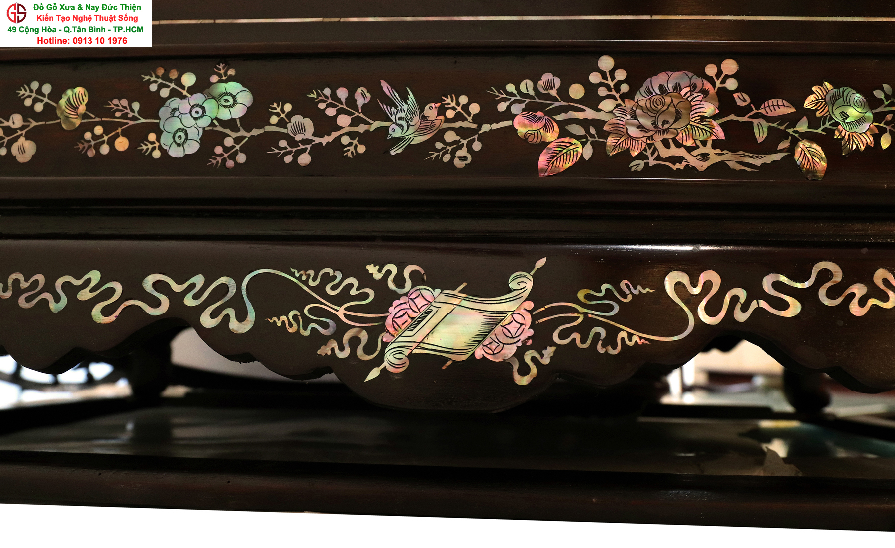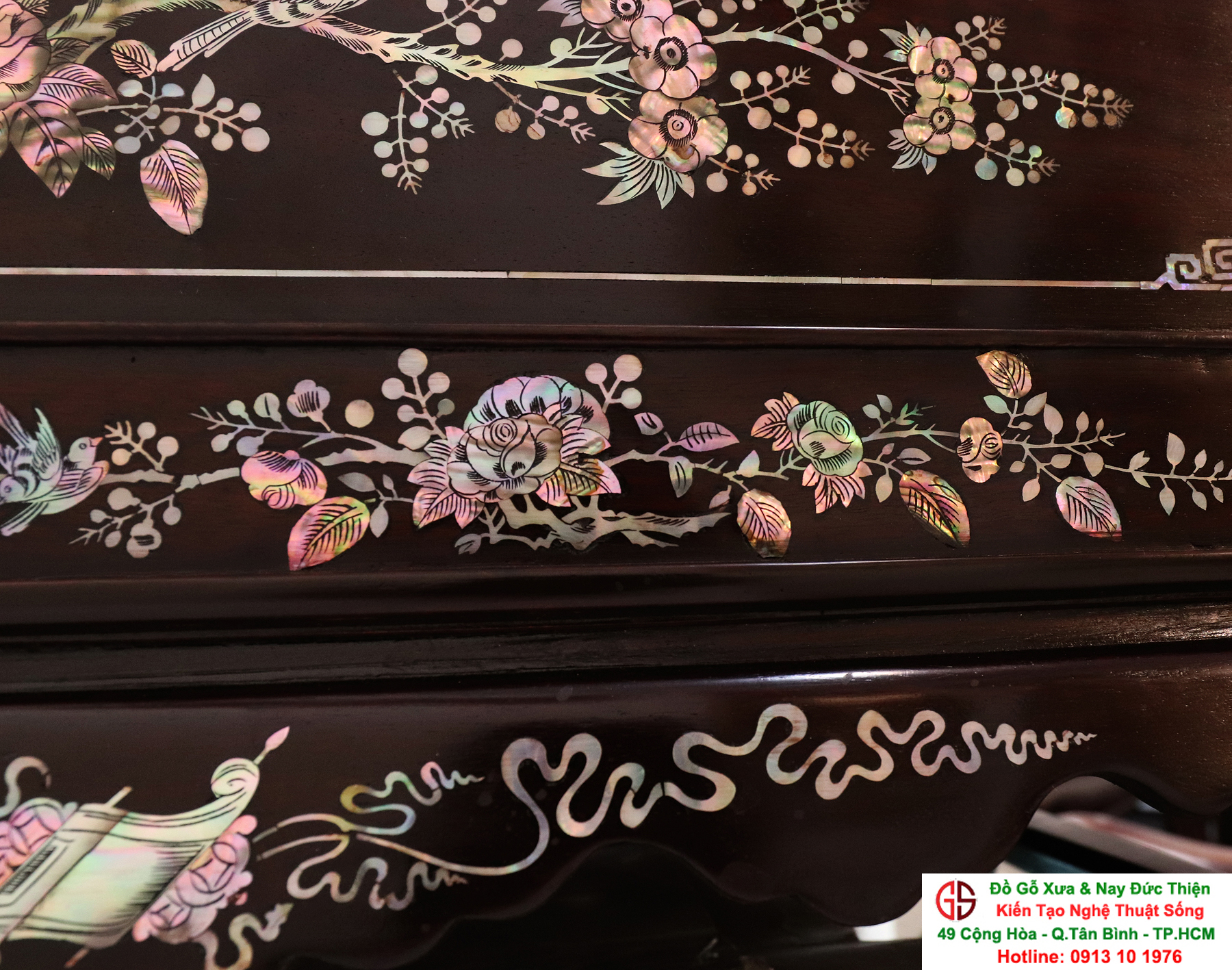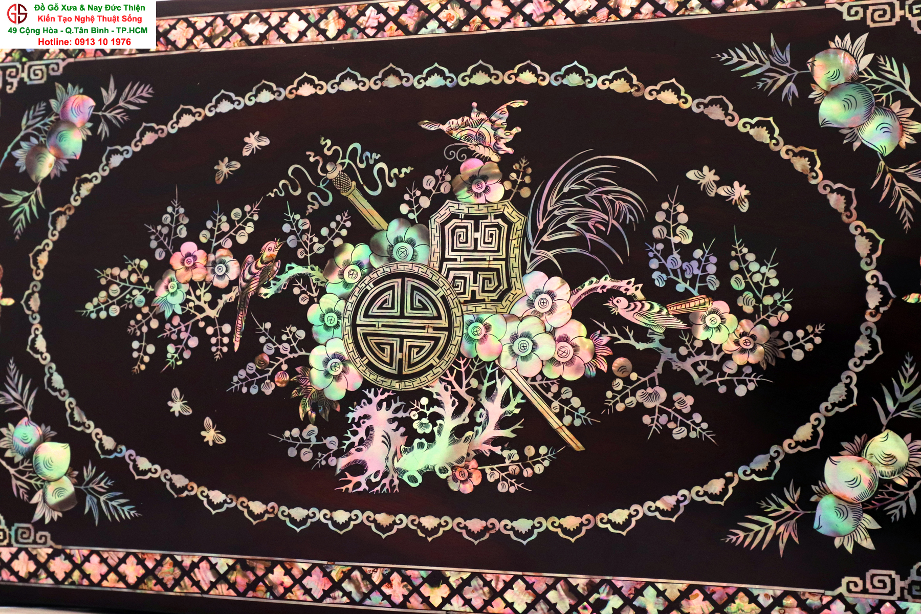 + Chất liệu: Gỗ gụ + khảm ốc xà cừ