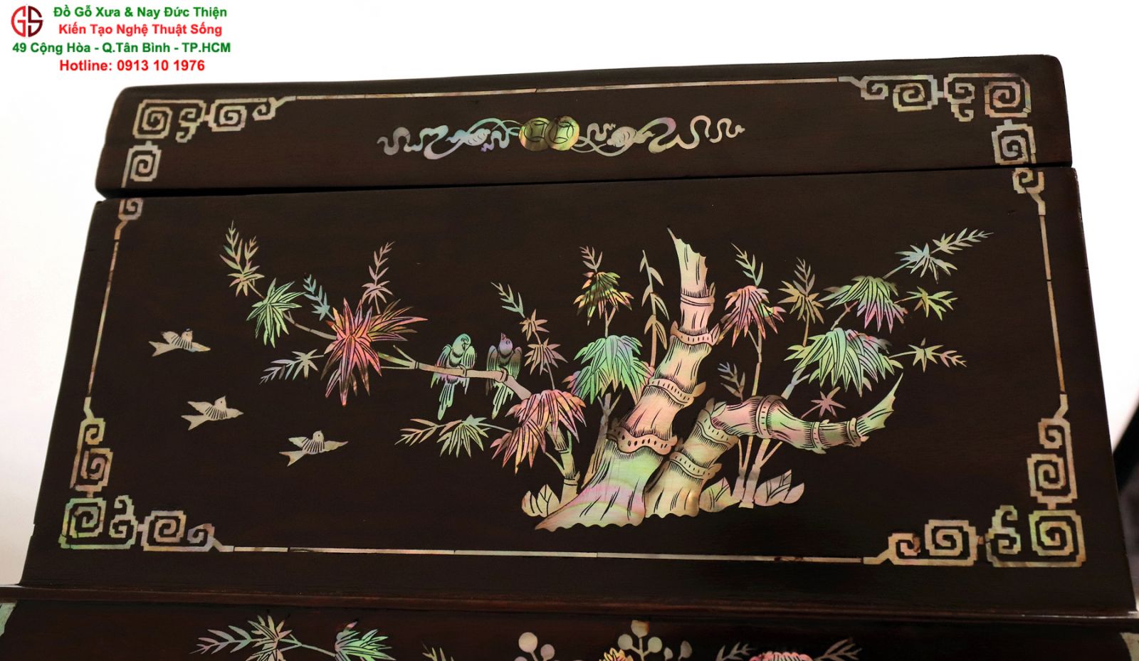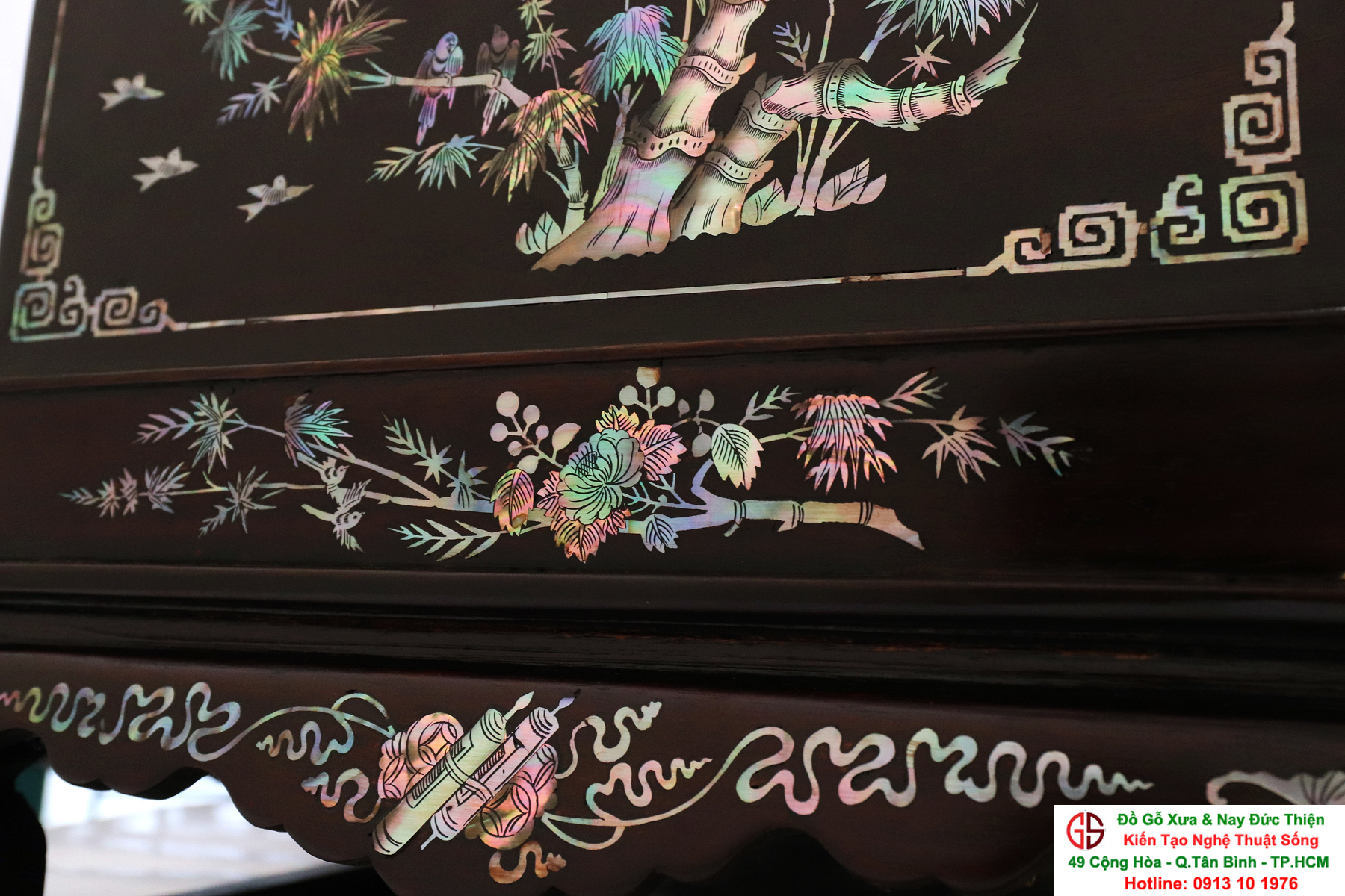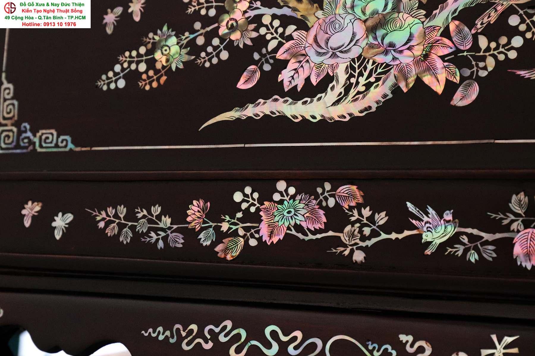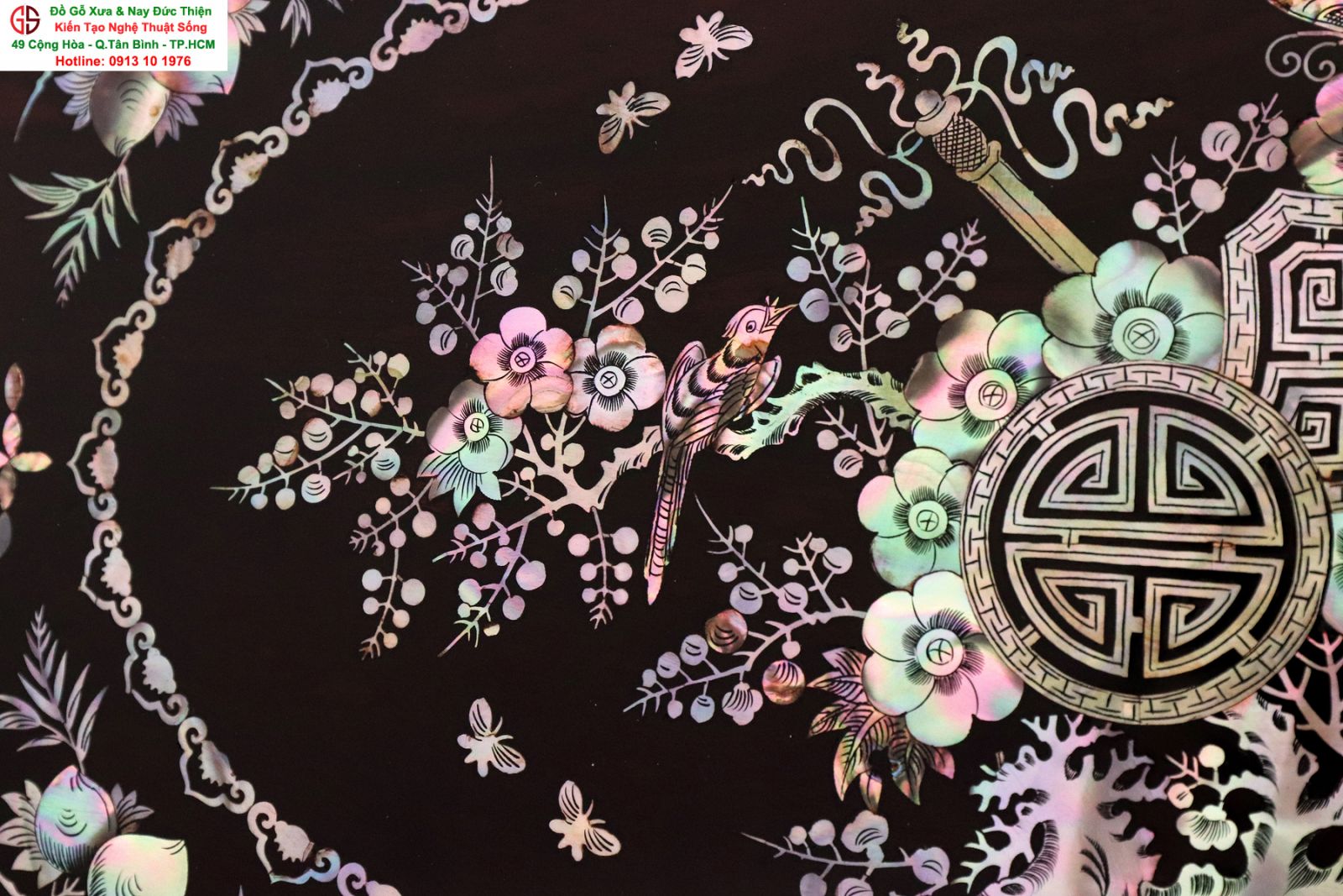 + Chất liệu: Gỗ gụ + khảm ốc xà cừ