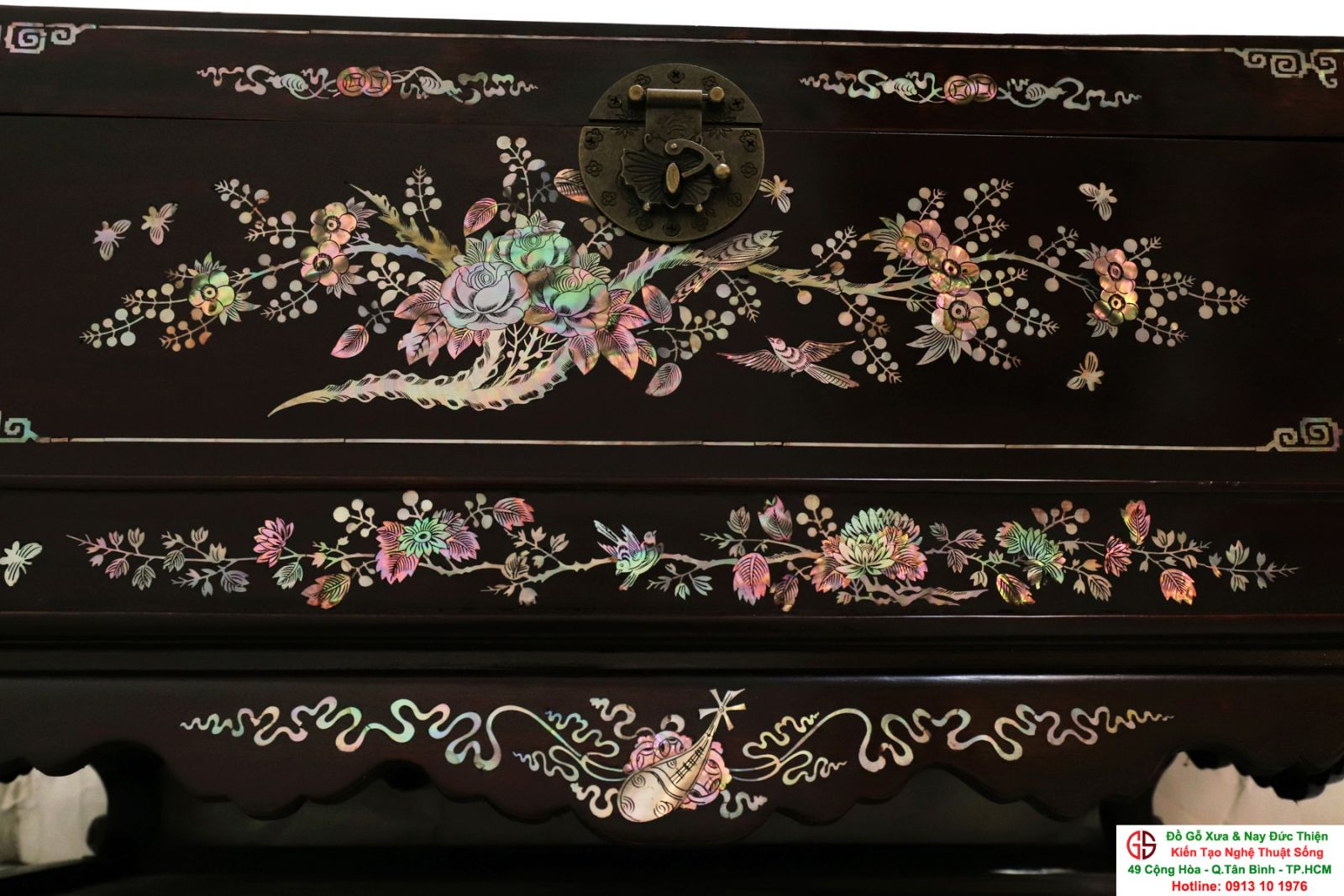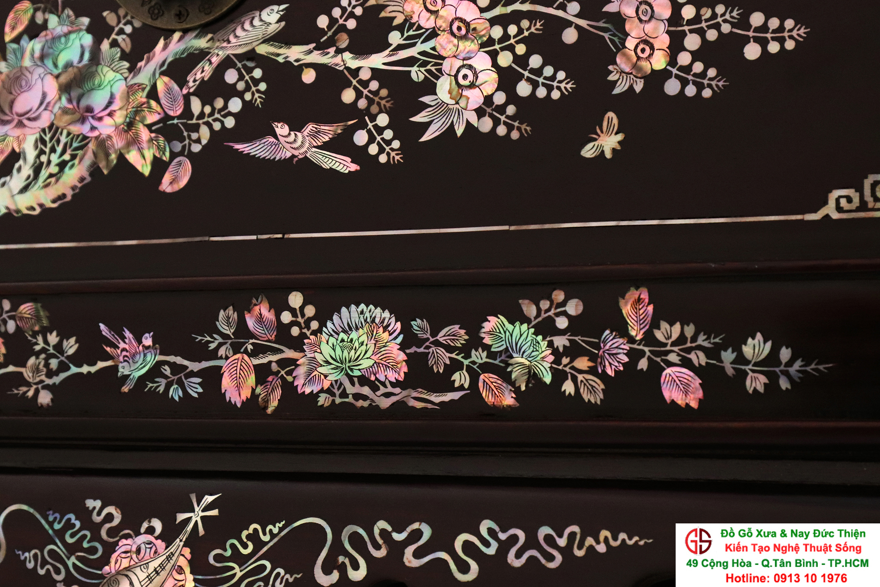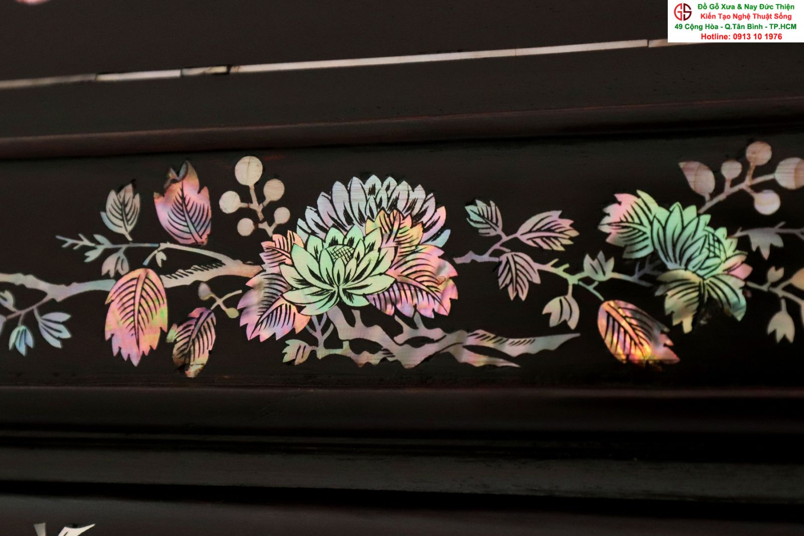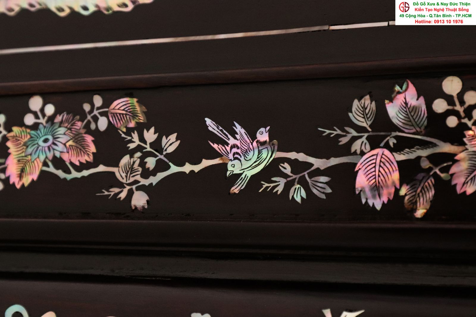 + Chất liệu: Gỗ gụ + khảm ốc xà cừ