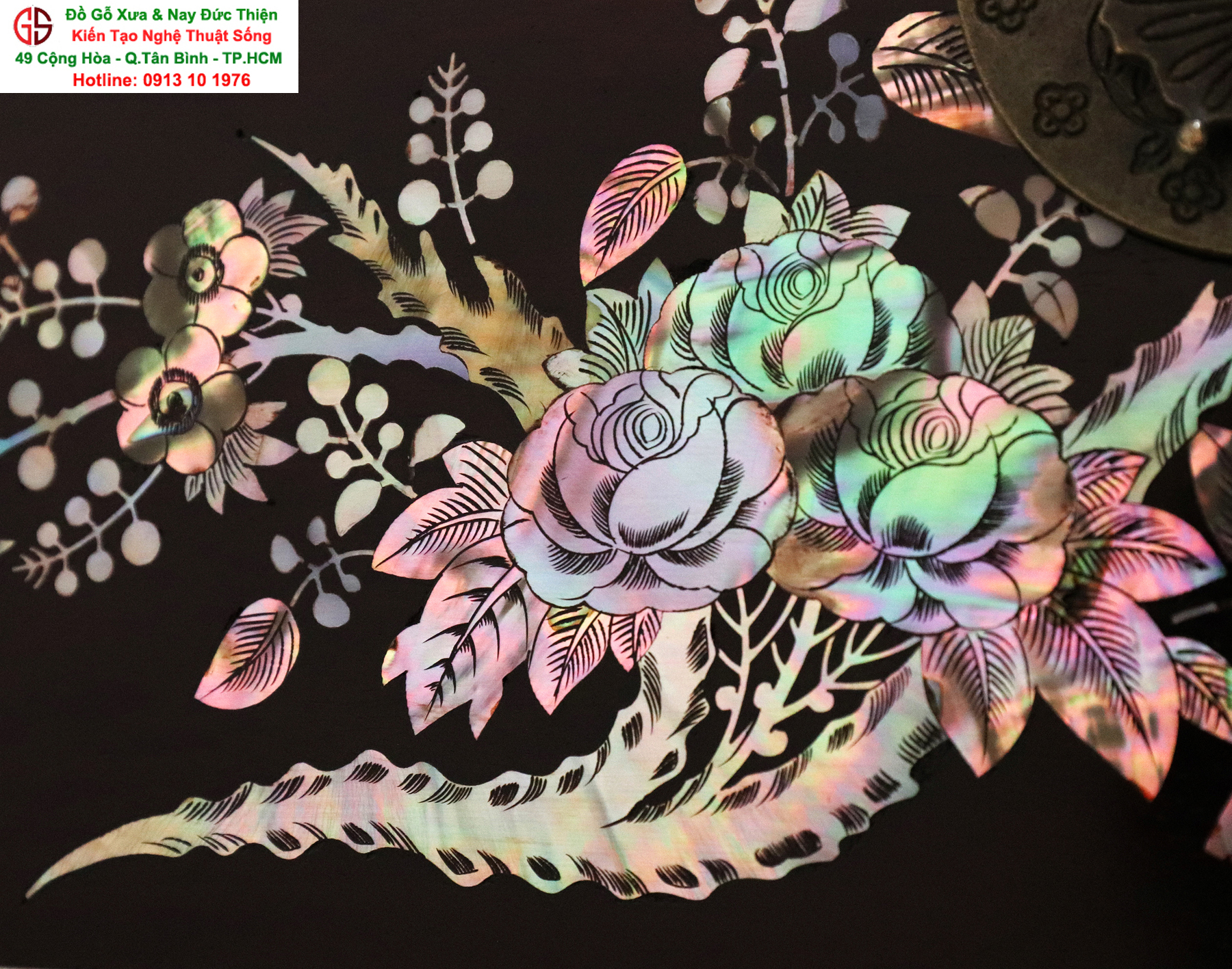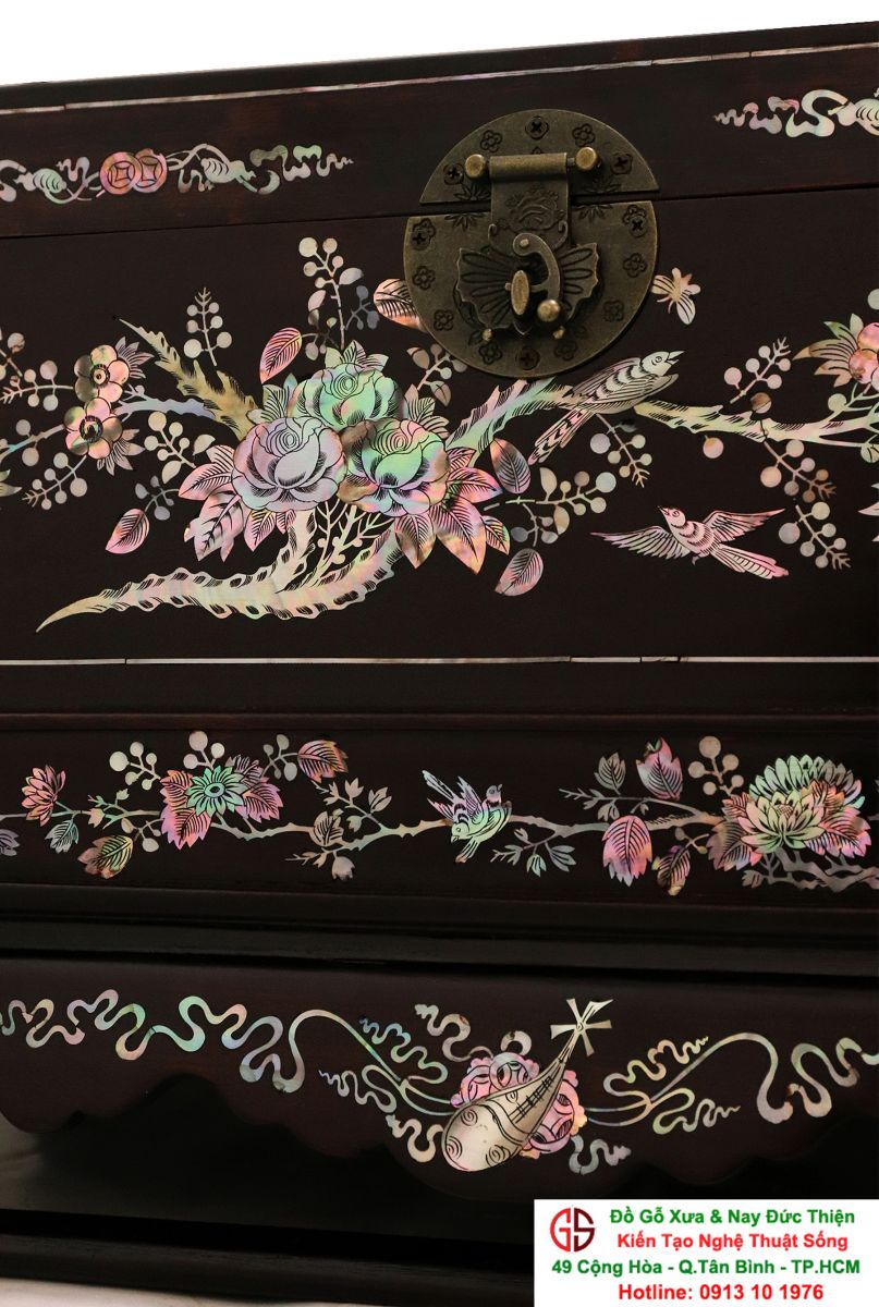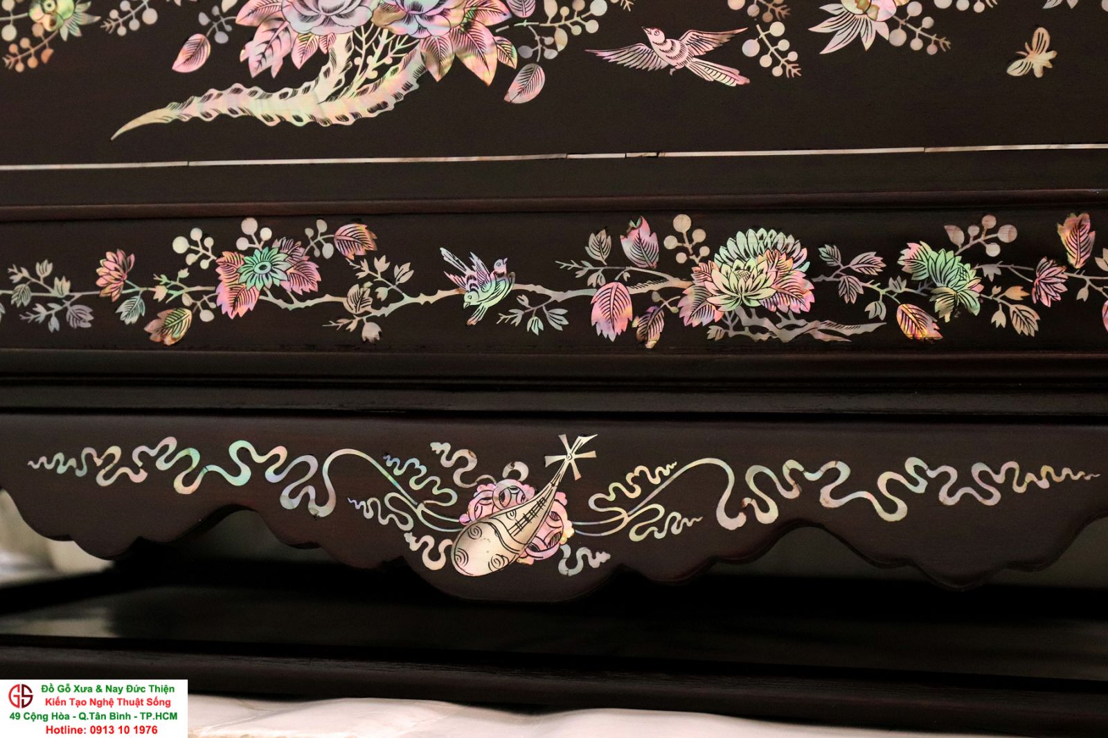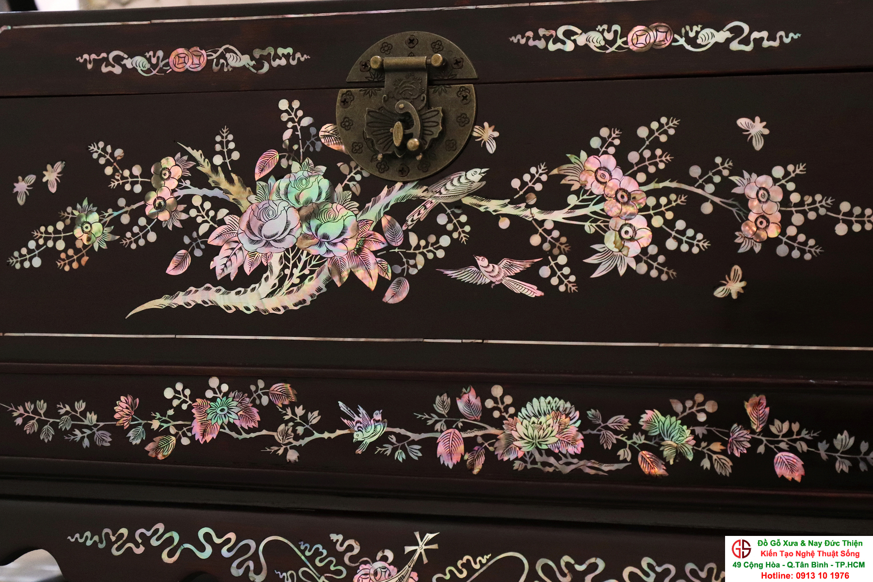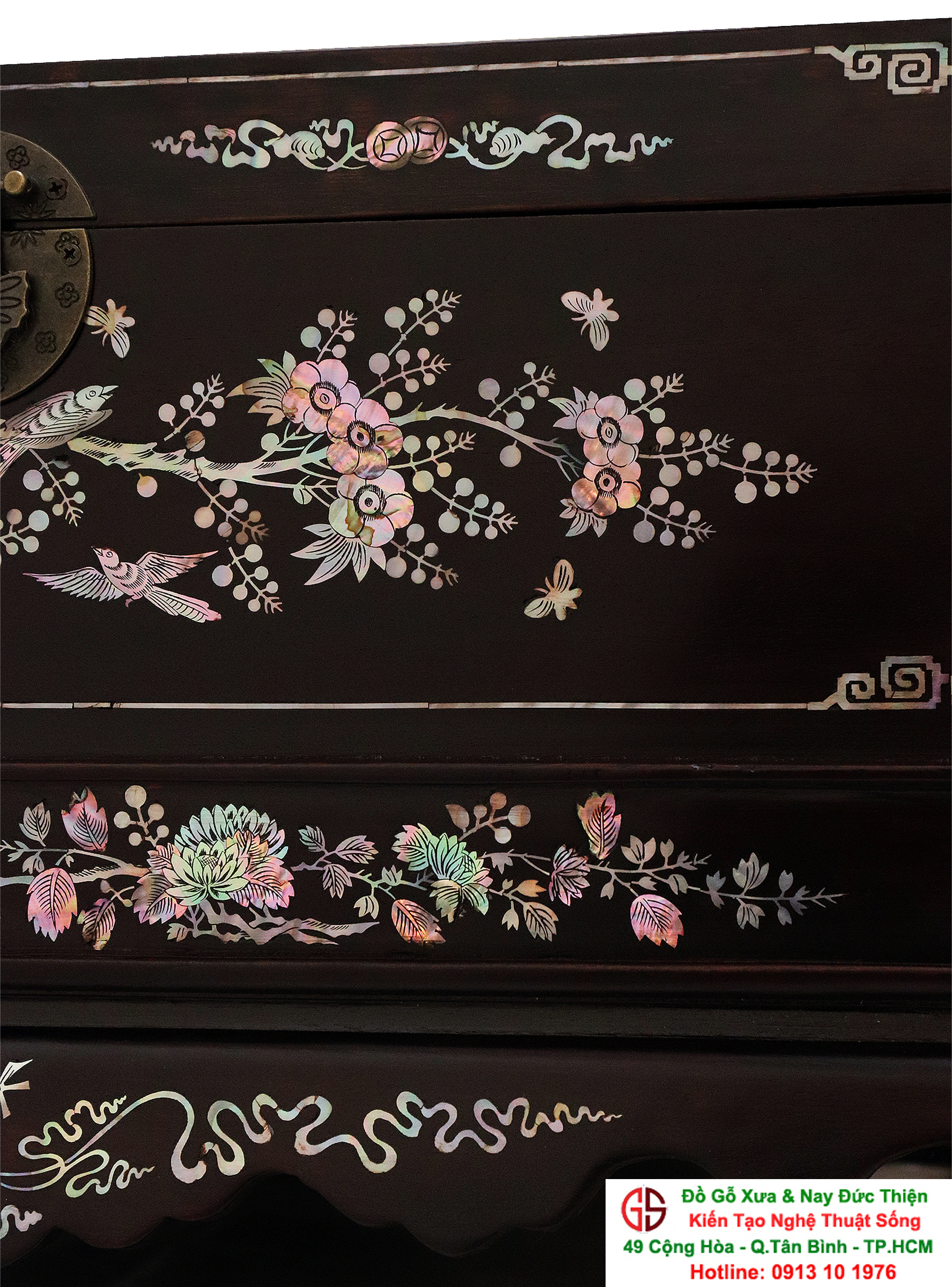 + Chất liệu: Gỗ gụ + khảm ốc xà cừ