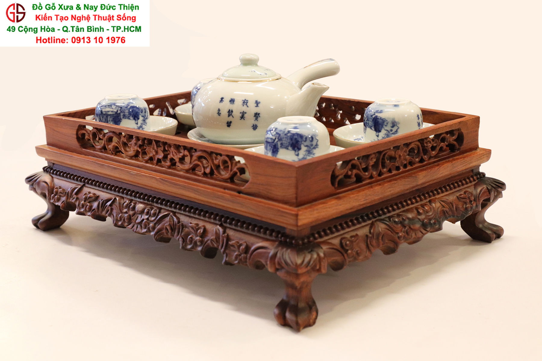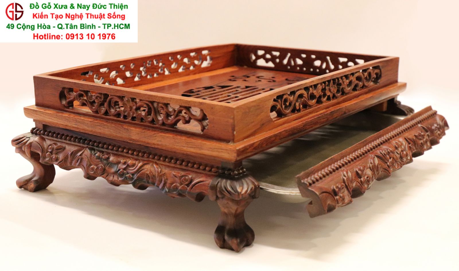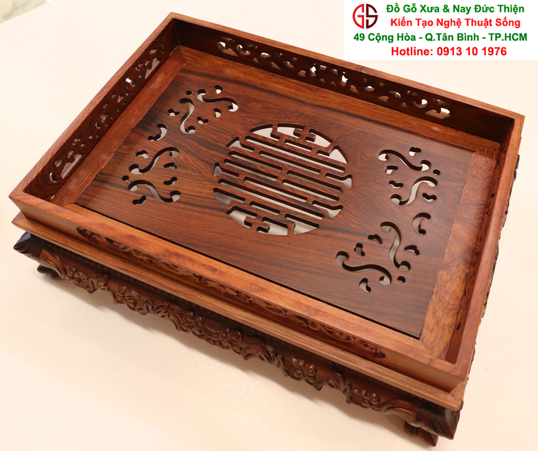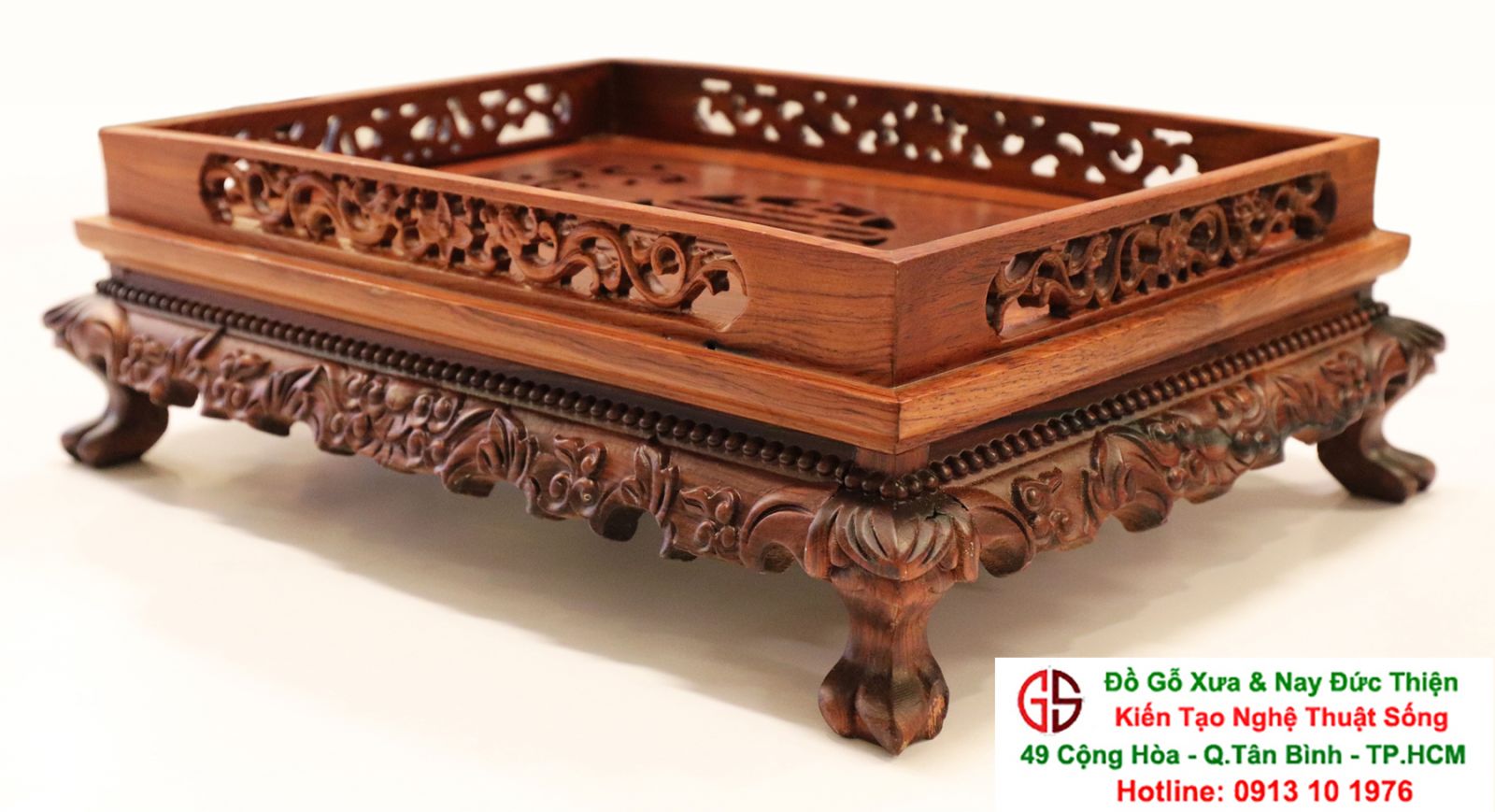 Khay Trà Gỗ Cẩm Chạm Khắc Đẹp Size Nhỏ