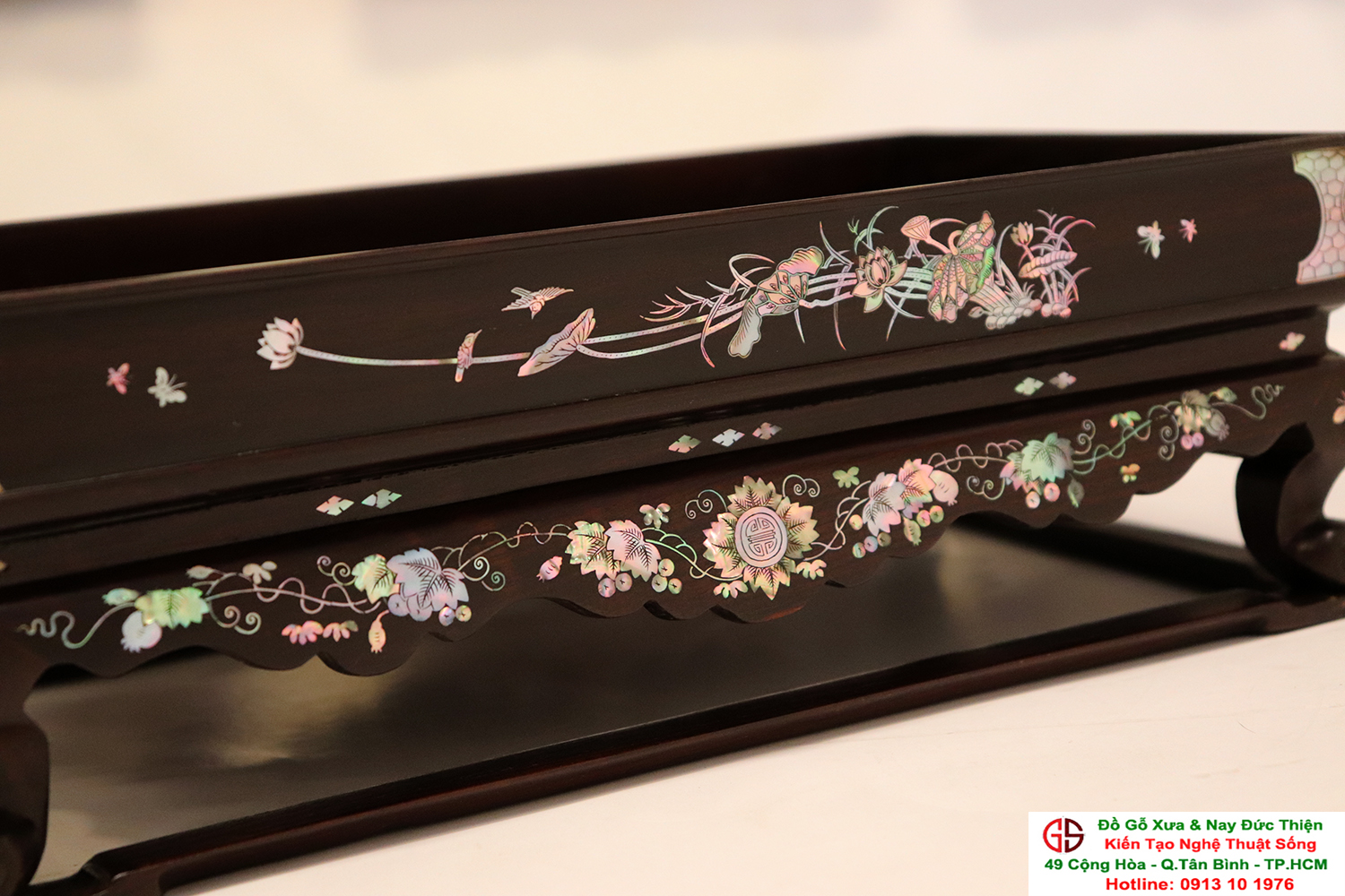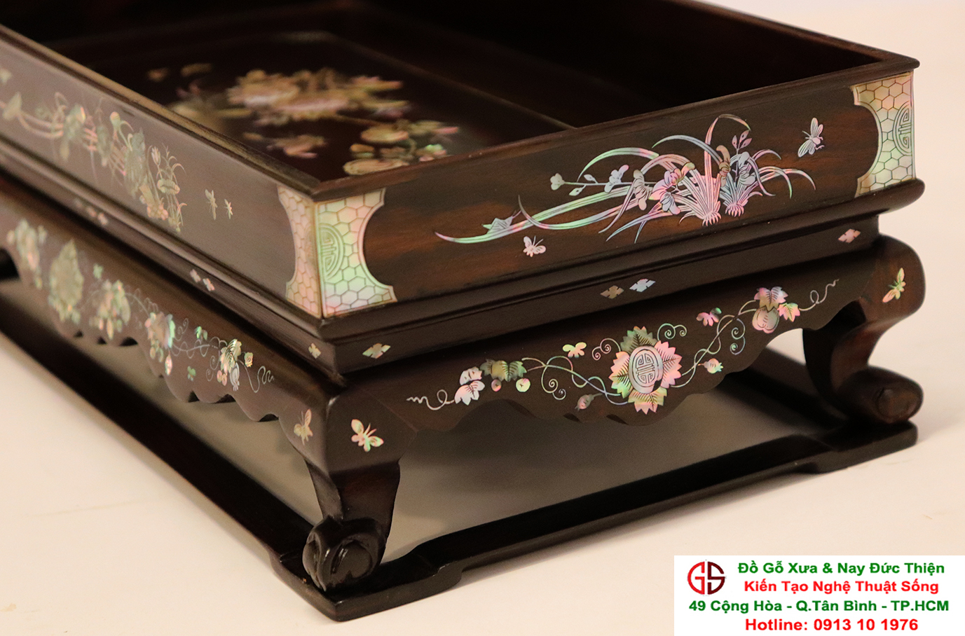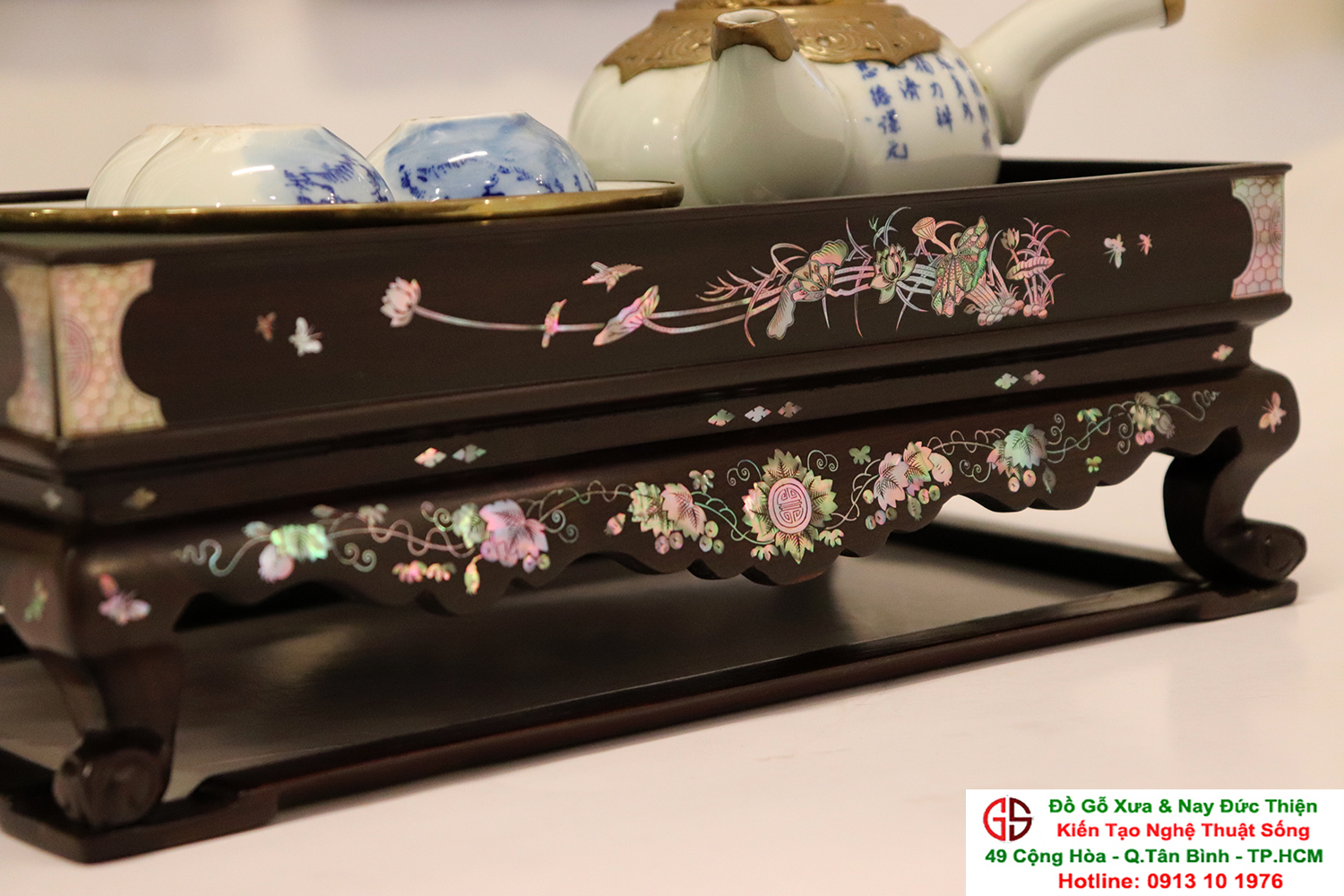 Không chỉ có giới sưu tầm đồ xưa cũ mà gần đây những người có đam mê trà đạo cũng săn tìm cho mình những chiếc khay trà đẹp và độc đáo. Hiểu được nhu cầu của khách hàng, chăm chút và tỉ mỉ từ những điều nhỏ nhất với mong muốn đem đến cho khách hàng một sản phẩm hoàn mỹ nhất, Đồ Gỗ Xưa Và Nay Đức Thiện xin ra mắt mẫu khay trà bằng gỗ trắc khảm ốc đẹp.