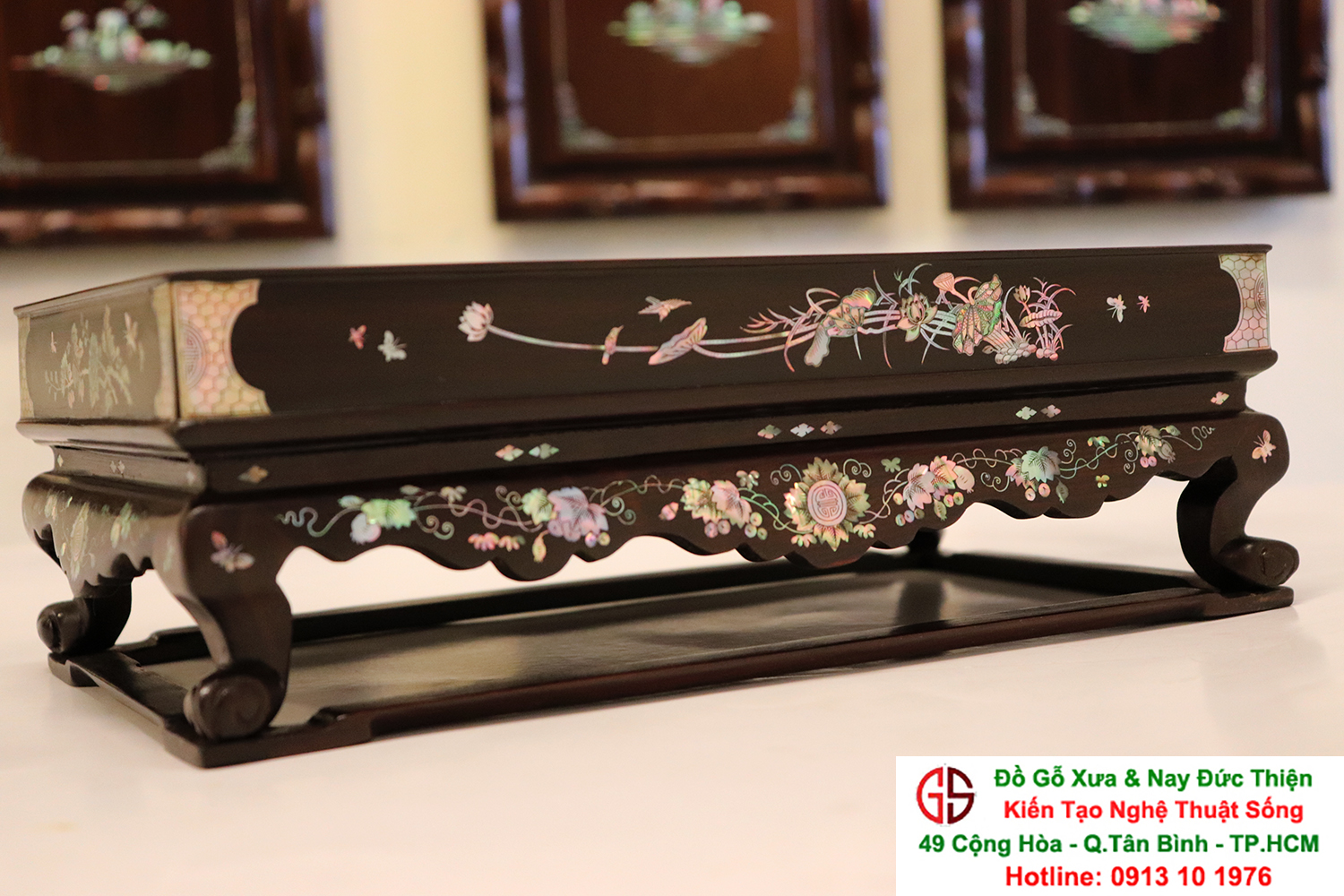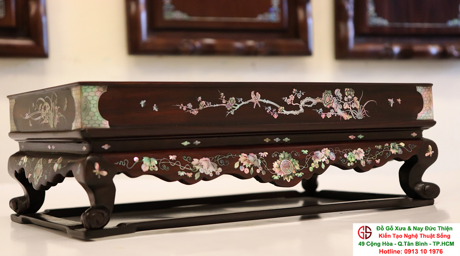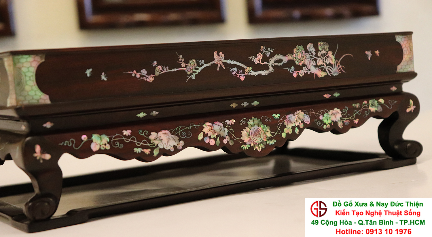 Chất liệu: Gỗ trắc khảm Ốc - Sản phẩm bán được bảo hành về chủng loại gỗ và ốc.