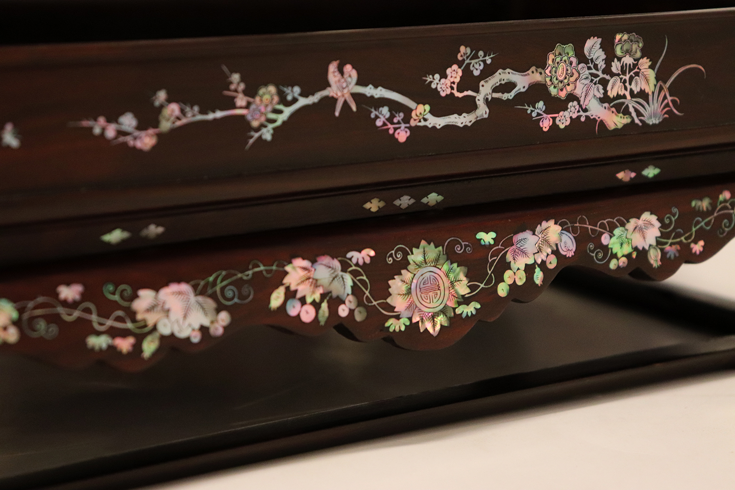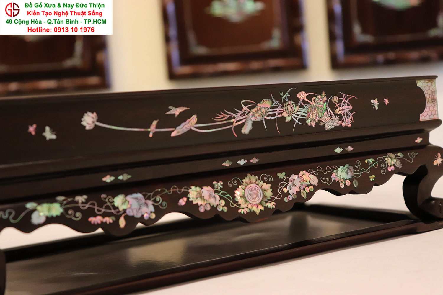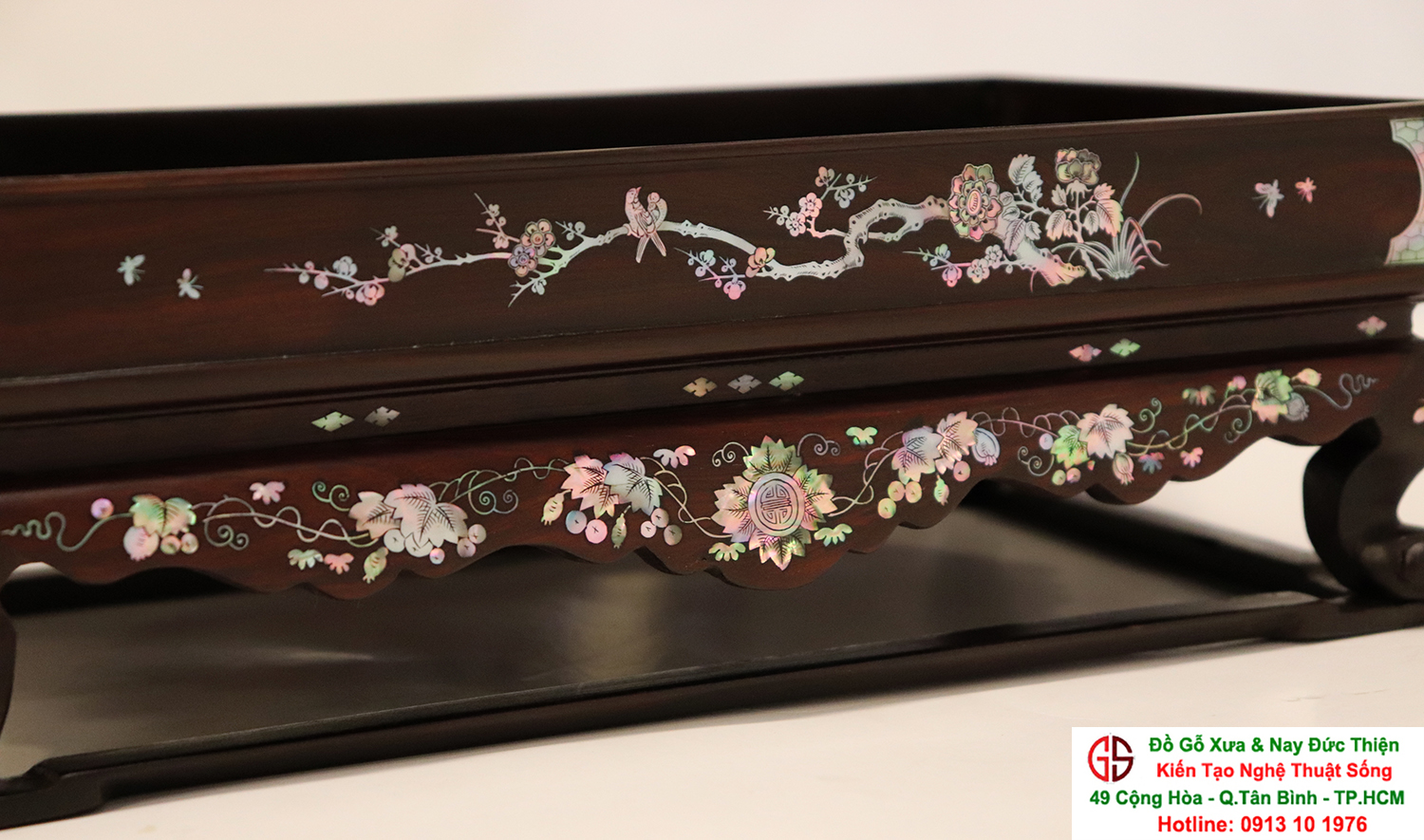 Chất liệu: Gỗ trắc khảm Ốc - Sản phẩm bán được bảo hành về chủng loại gỗ và ốc.