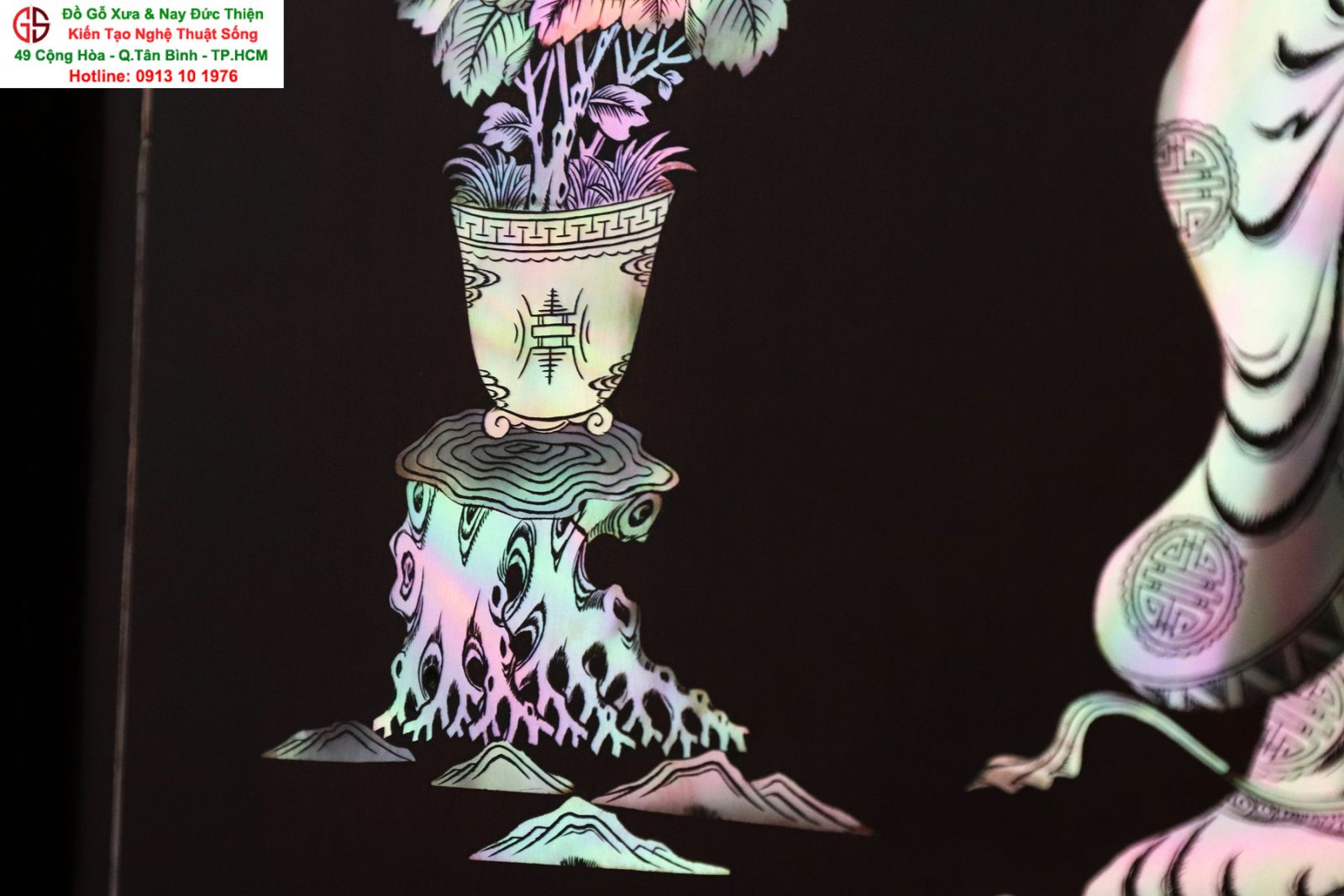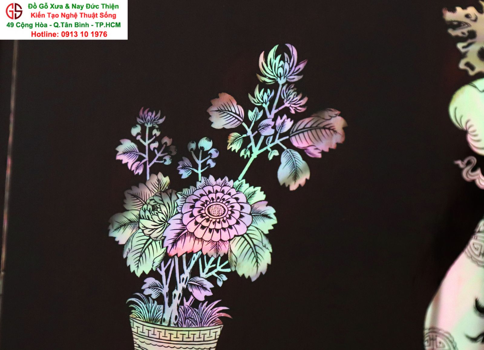 + Chất liệu: gỗ gụ mật + cẩn ốc xà cừ