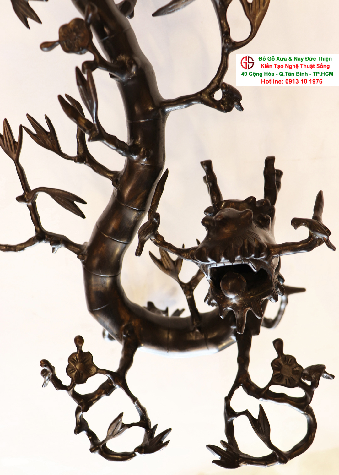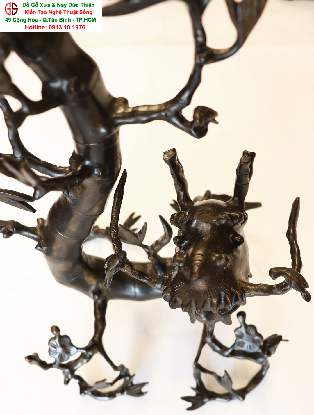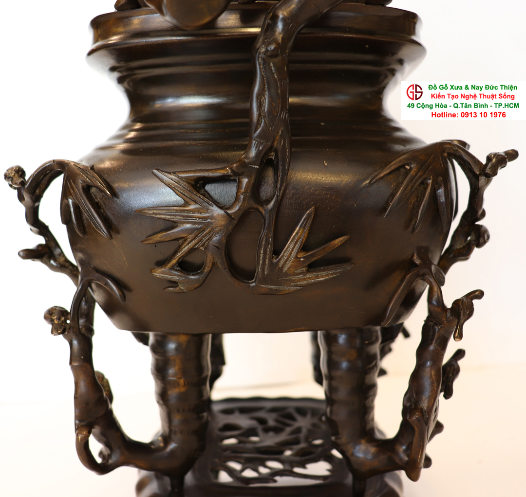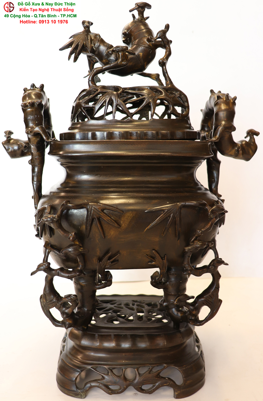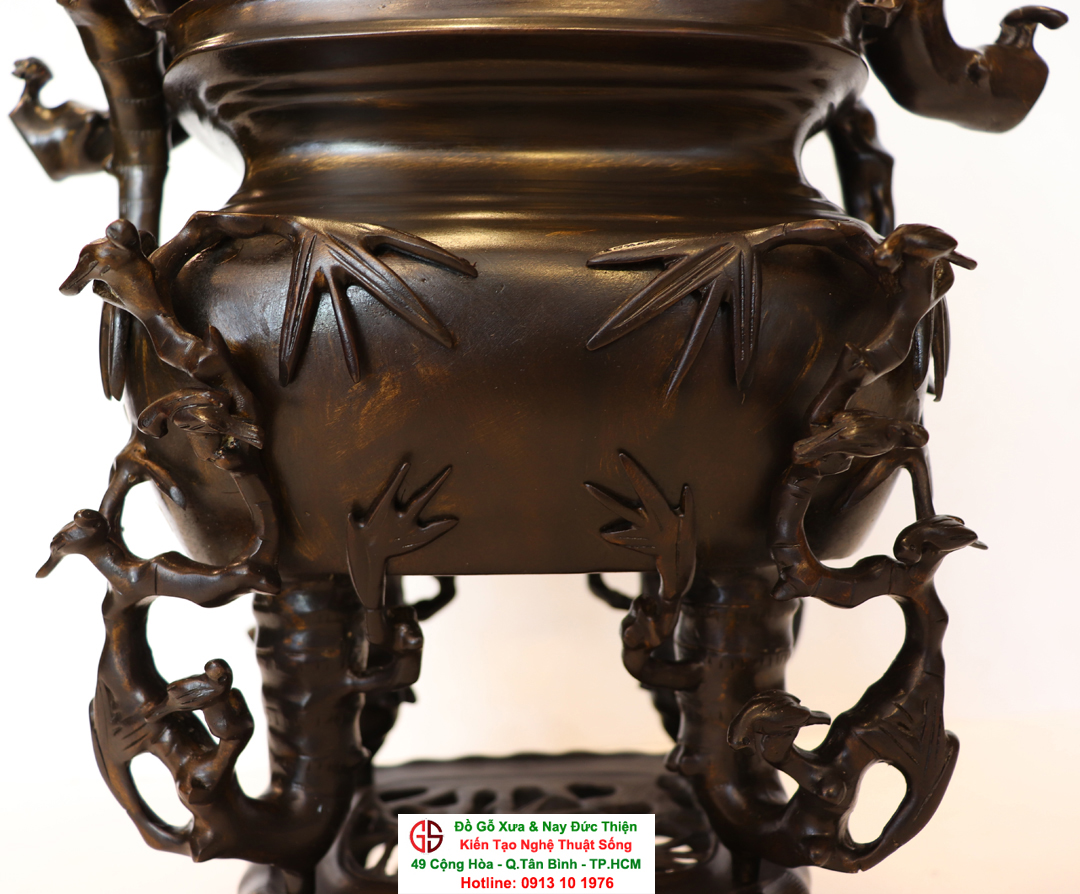 Bộ lư đồng đẹp xếp vào loại xưa nay hiếm, bộ lư đồng trúc hóa rồng ( lư trúc hóa long ) được đúc thủ công tay bởi nghệ nhân Huế theo kiểu xưa