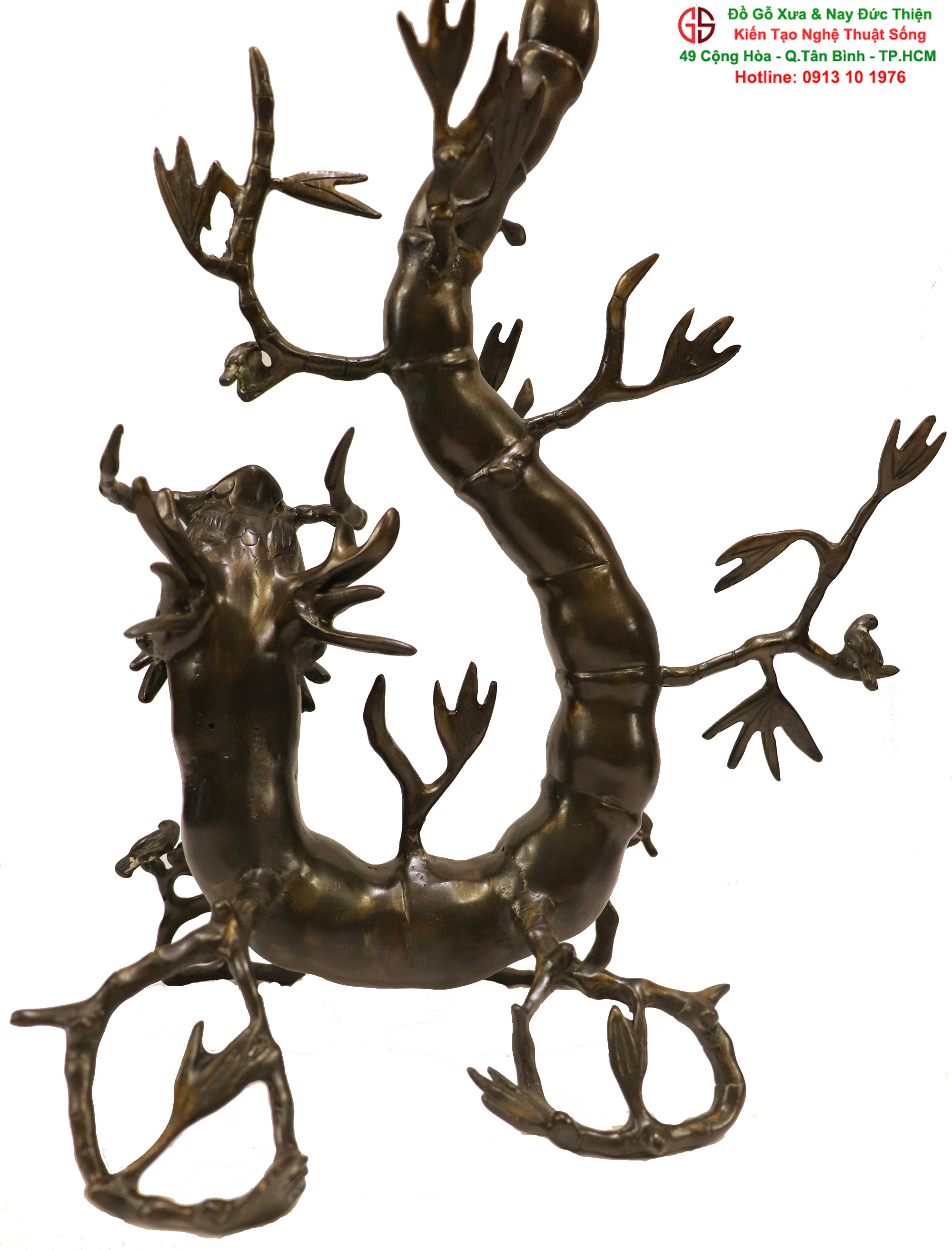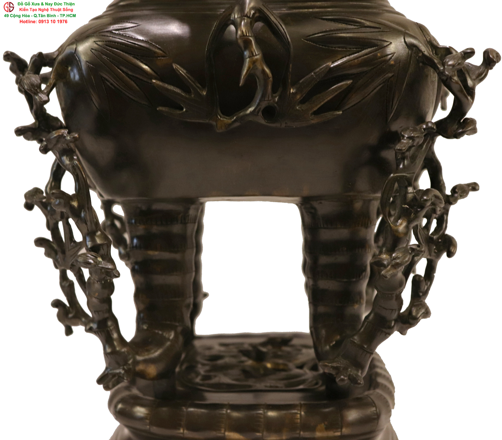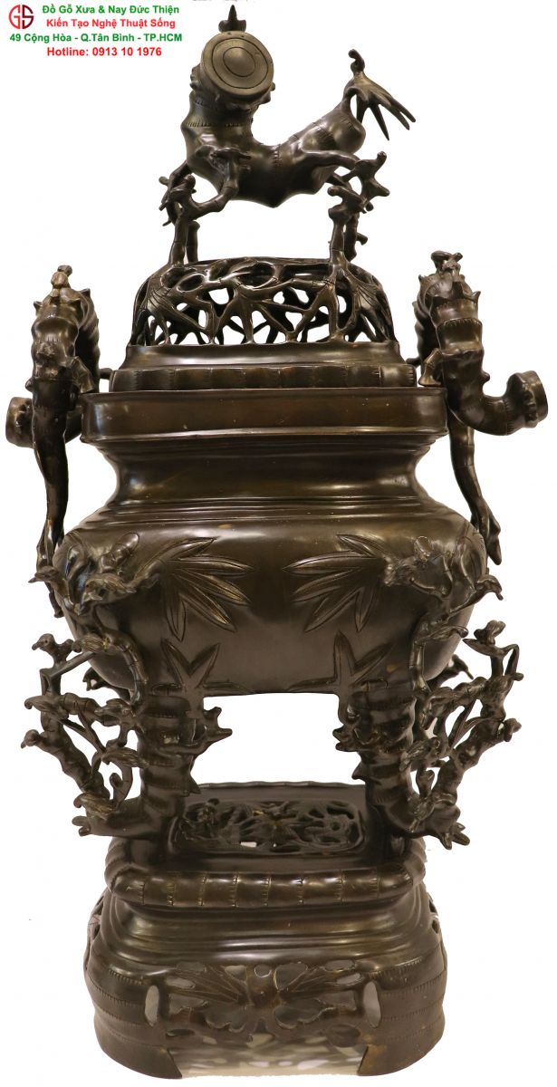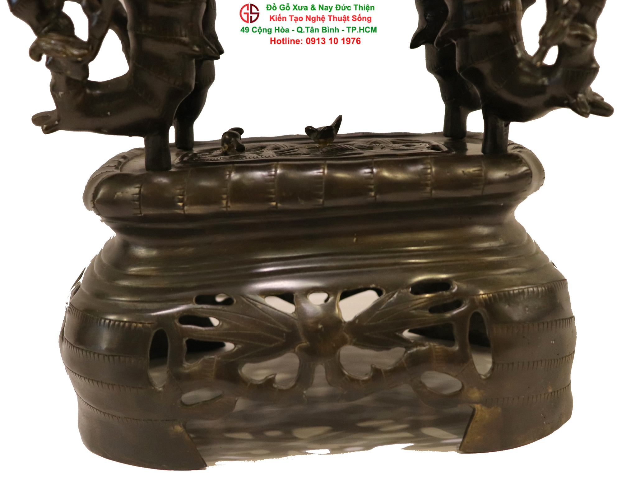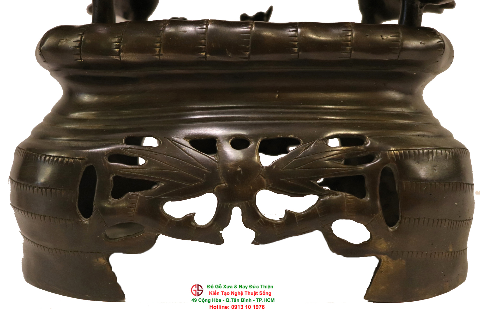 Bộ lư đồng đẹp xếp vào loại xưa nay hiếm, bộ lư đồng trúc hóa rồng ( lư trúc hóa long ) được đúc thủ công tay bởi nghệ nhân Huế theo kiểu xưa