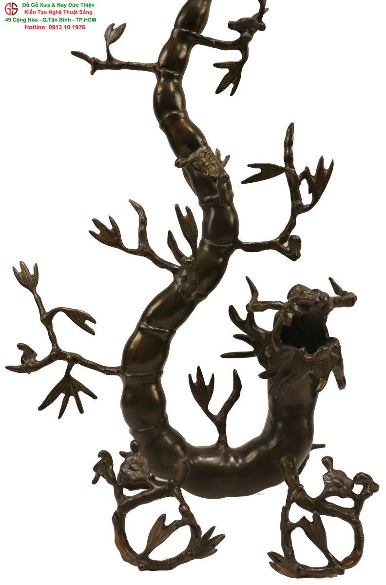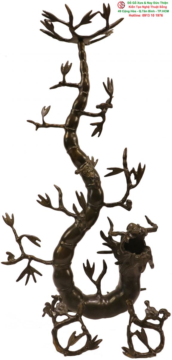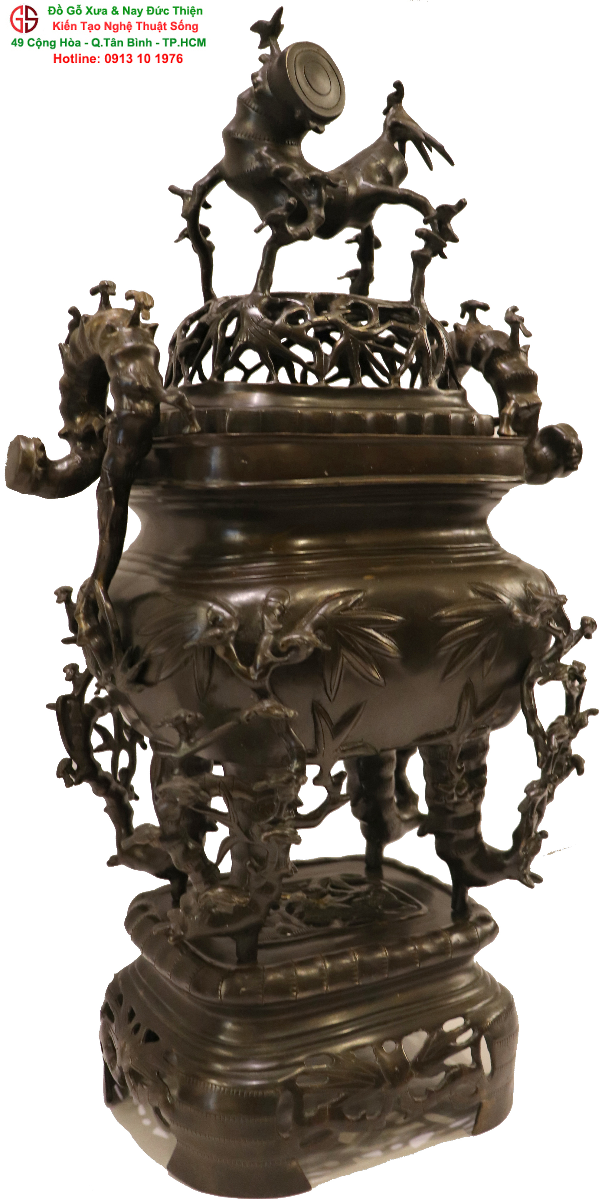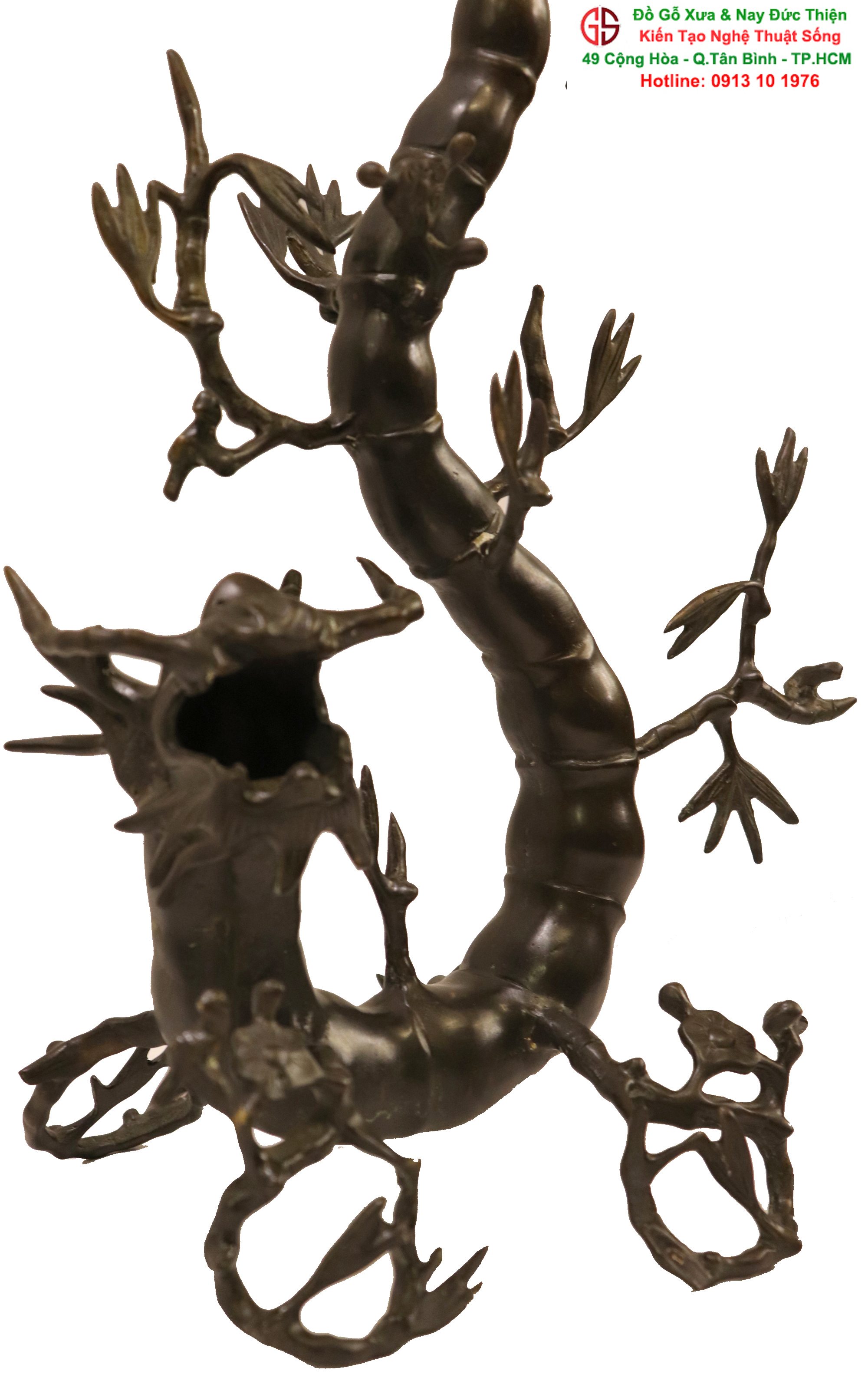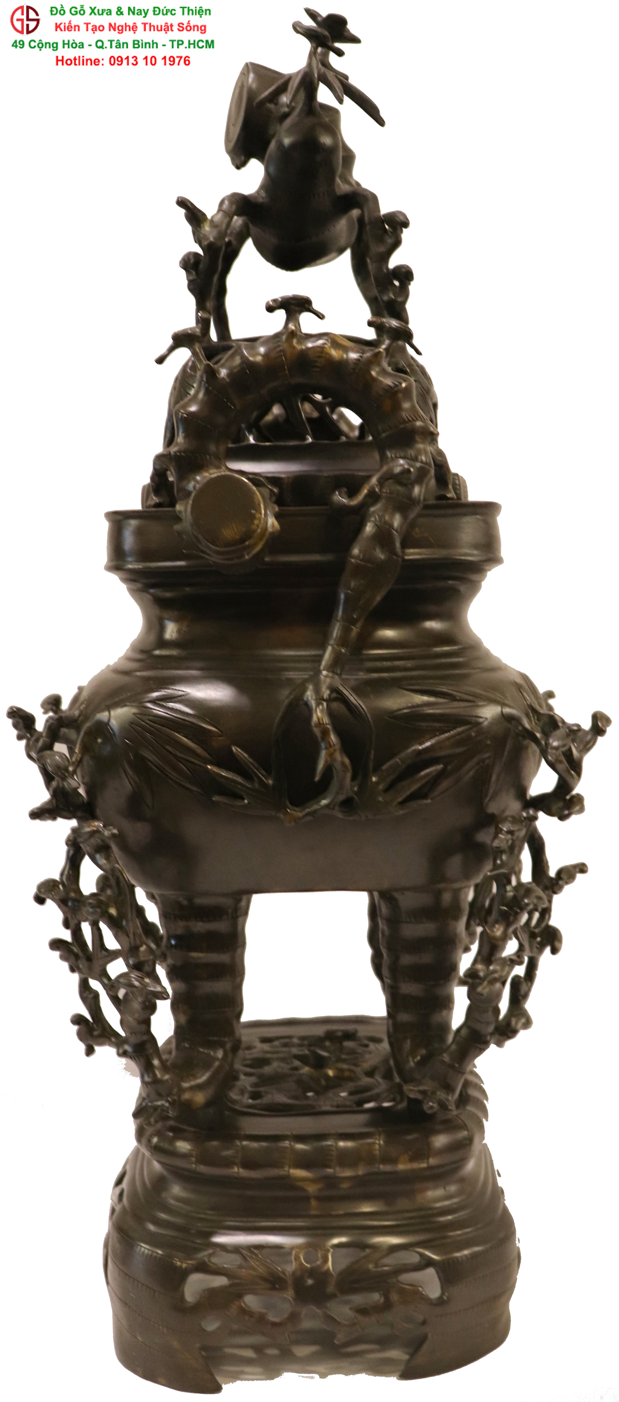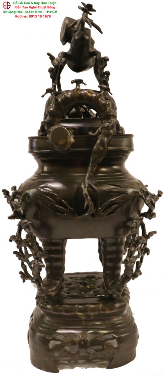Bộ lư đồng đẹp xếp vào loại xưa nay hiếm, bộ lư đồng trúc hóa rồng ( lư trúc hóa long ) được đúc thủ công tay bởi nghệ nhân Huế theo kiểu xưa
