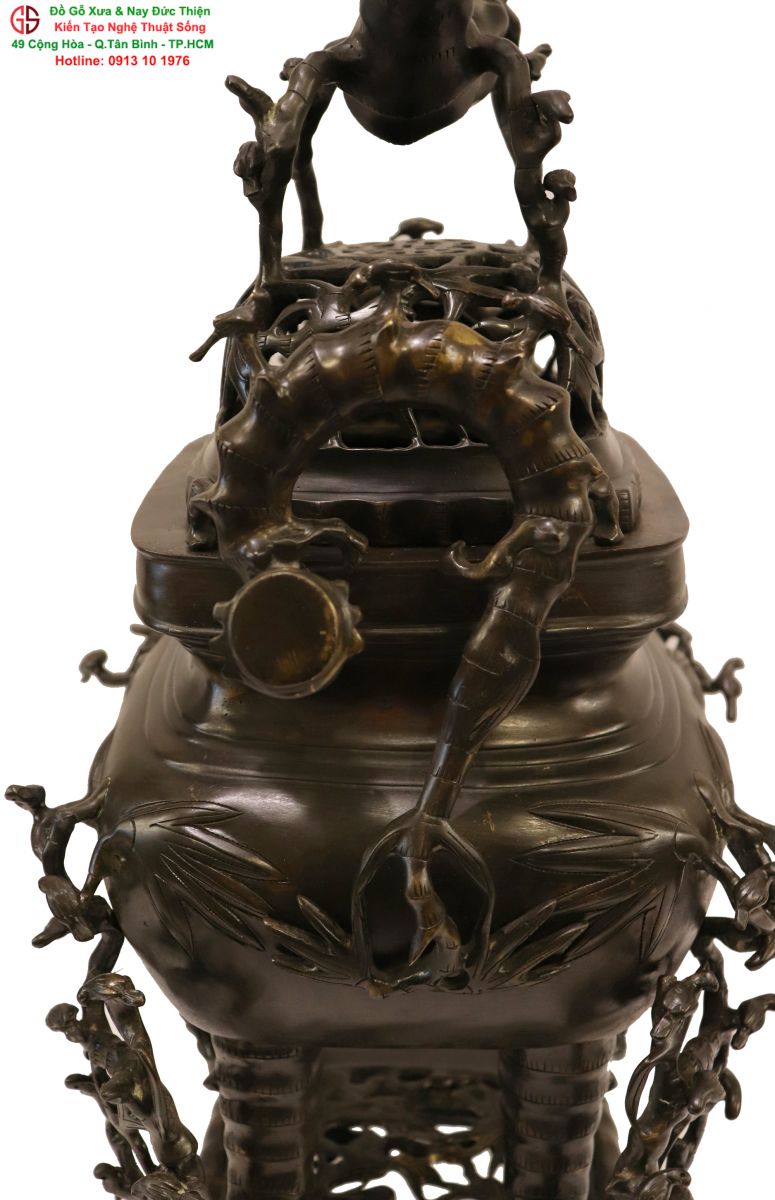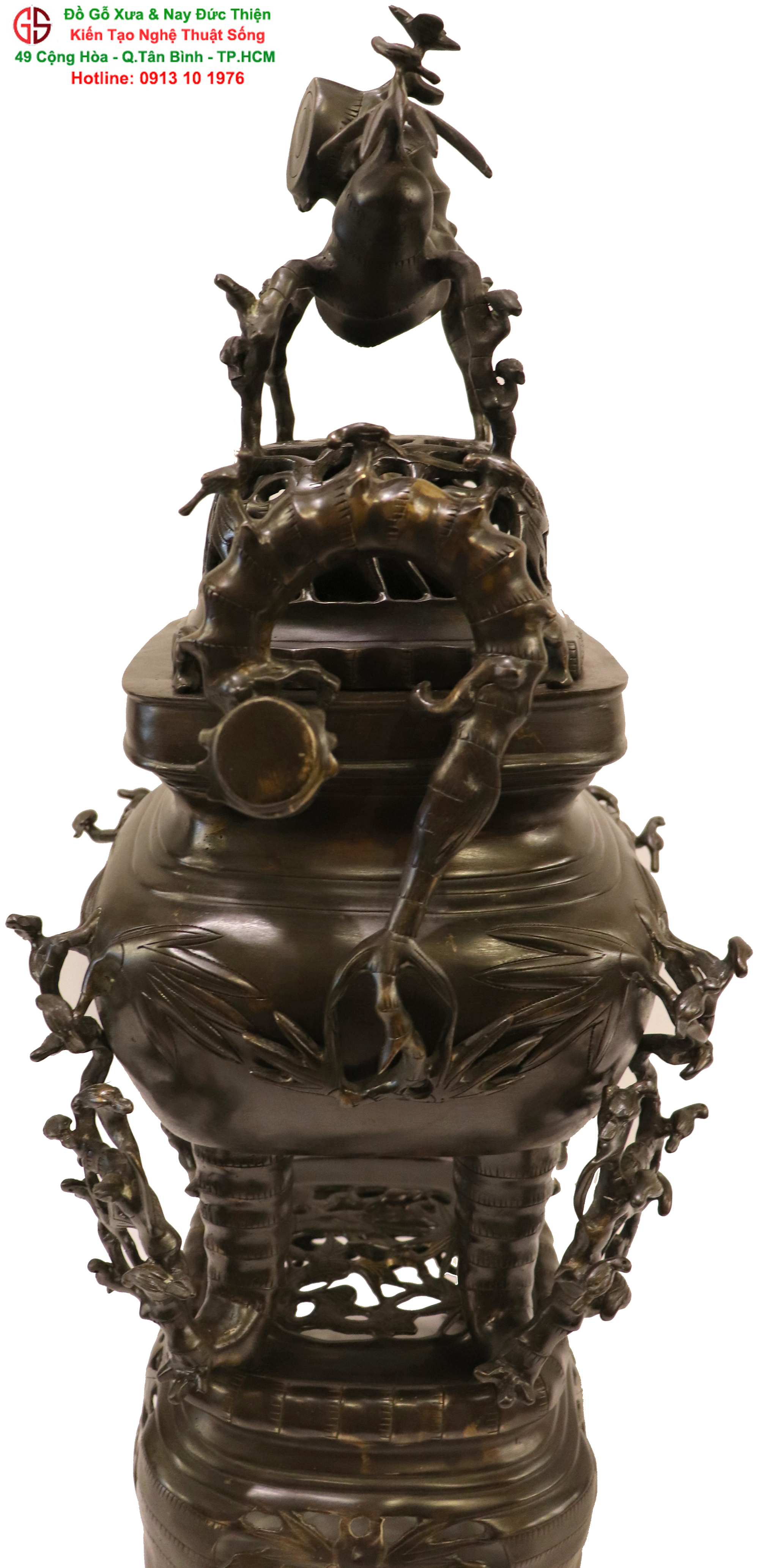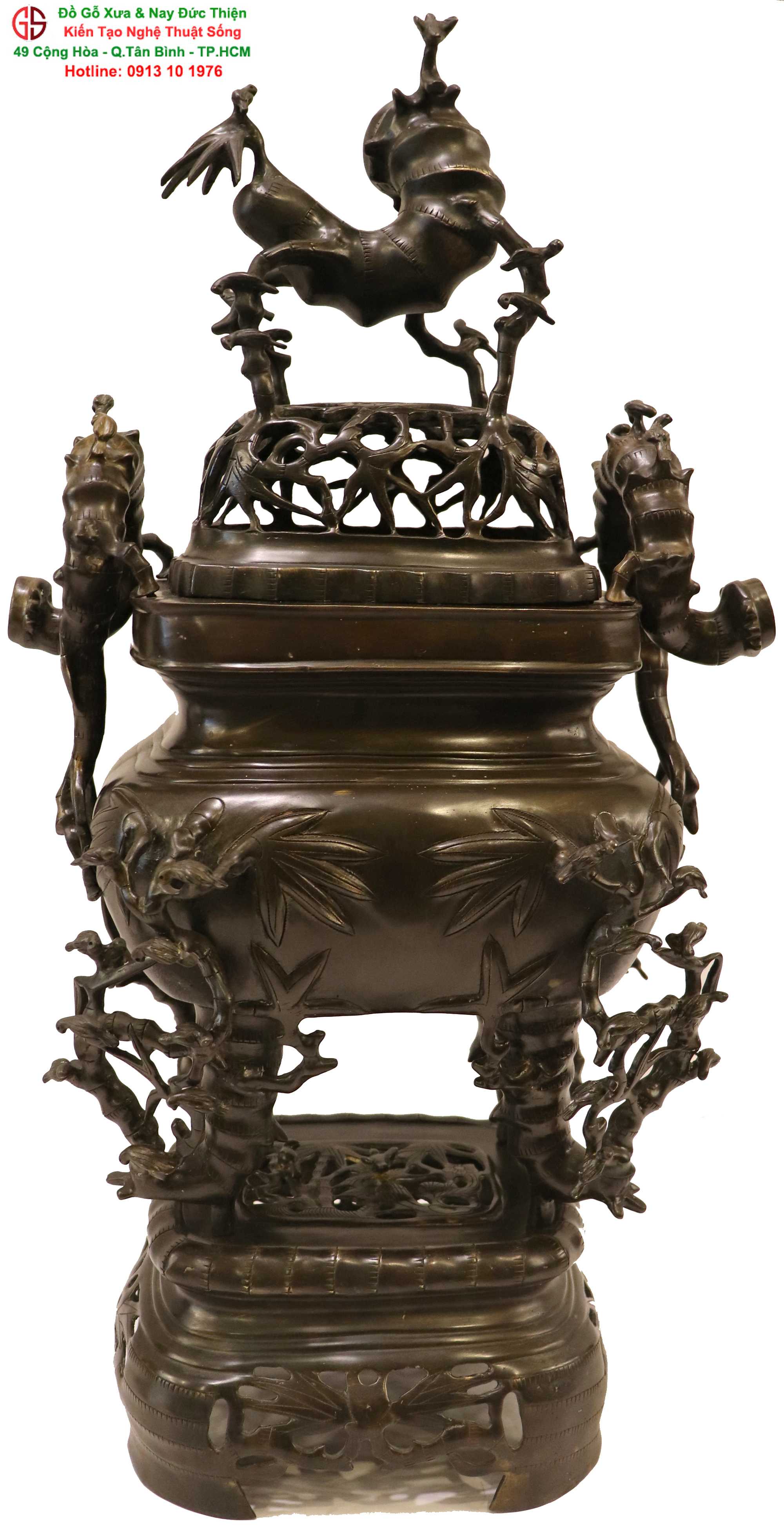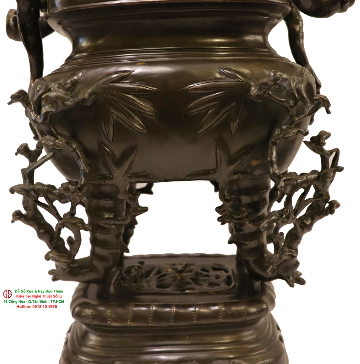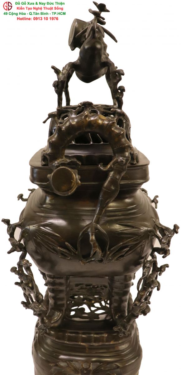 Bộ lư đồng đẹp xếp vào loại xưa nay hiếm, bộ lư đồng trúc hóa rồng ( lư trúc hóa long ) được đúc thủ công tay bởi nghệ nhân Huế theo kiểu xưa